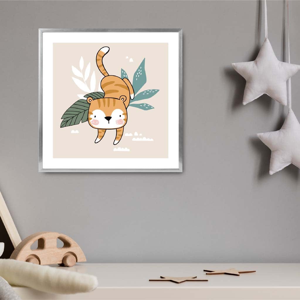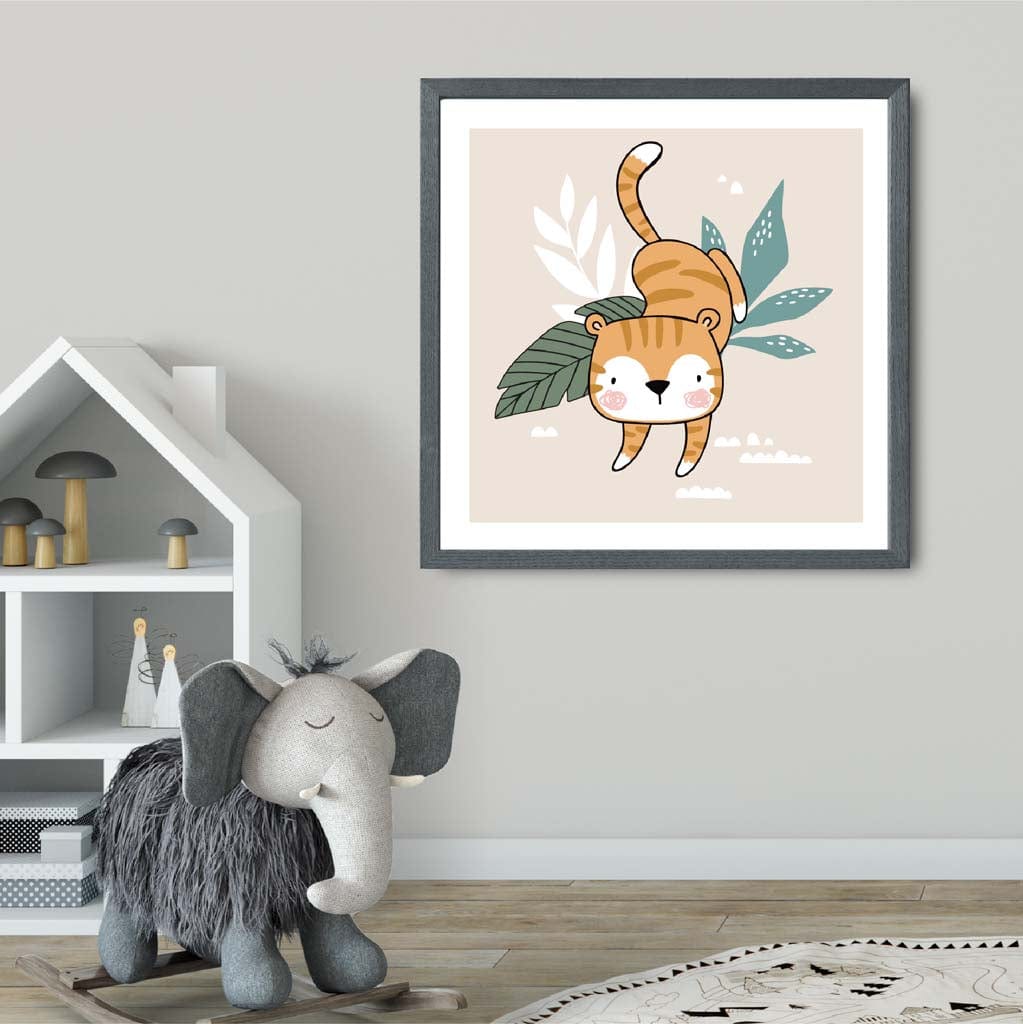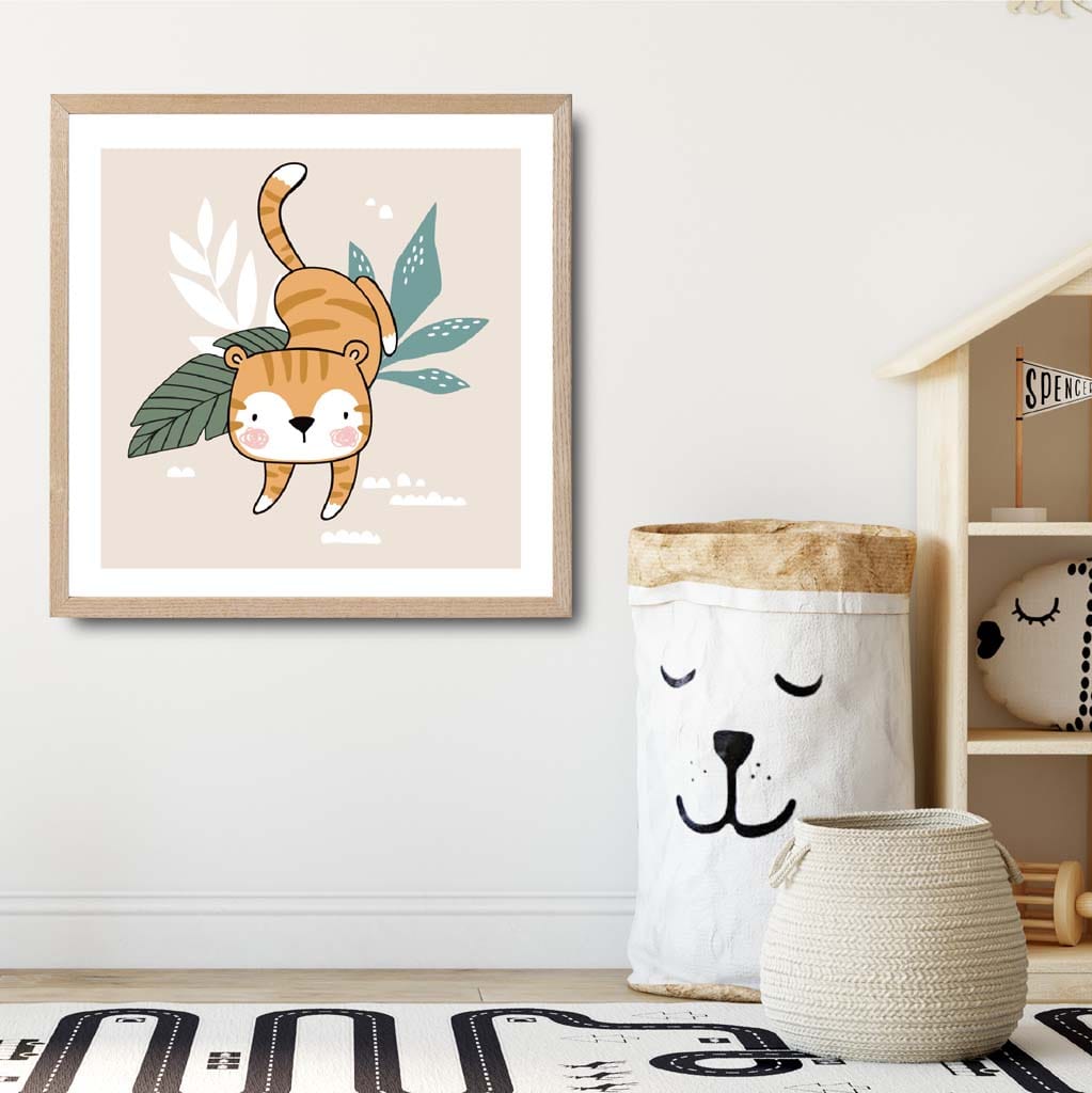 Cute Tiger FRAMED Print on Beige Jungle Kids Wall Art