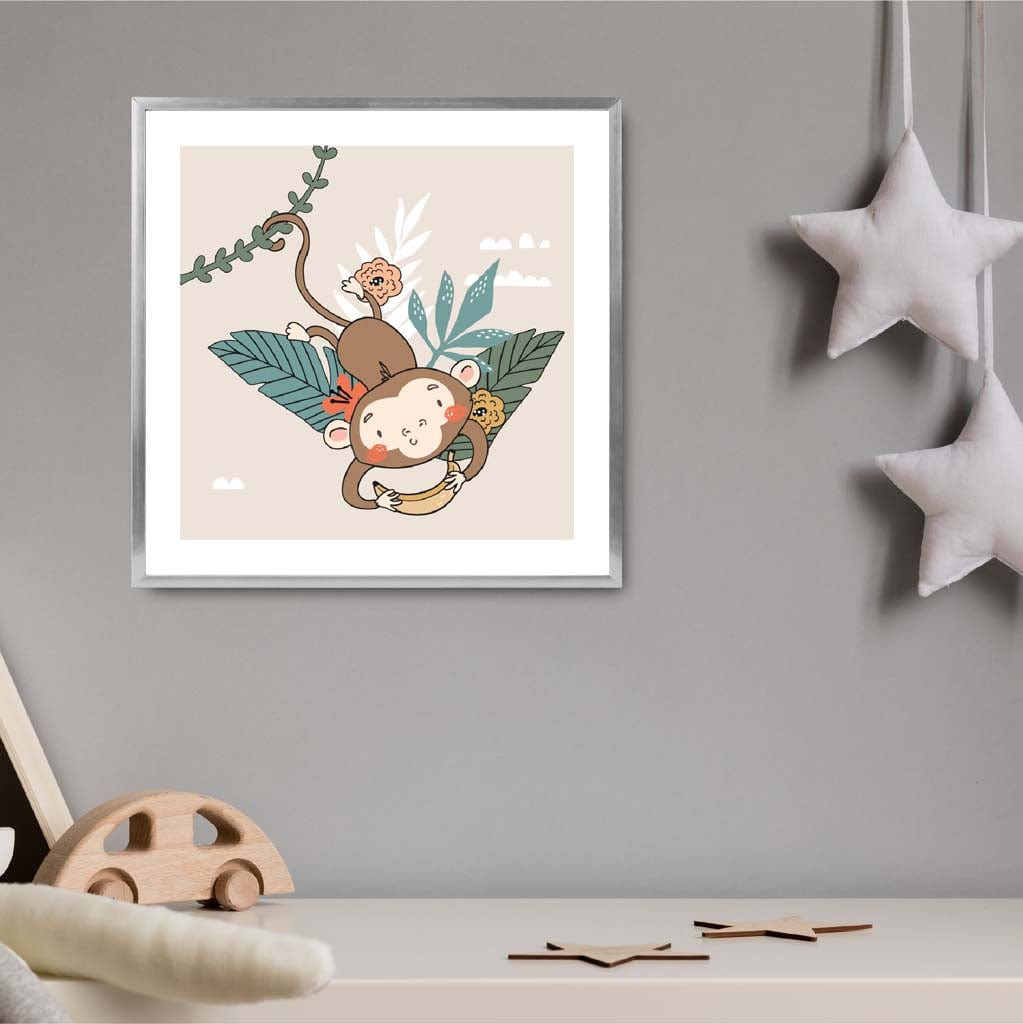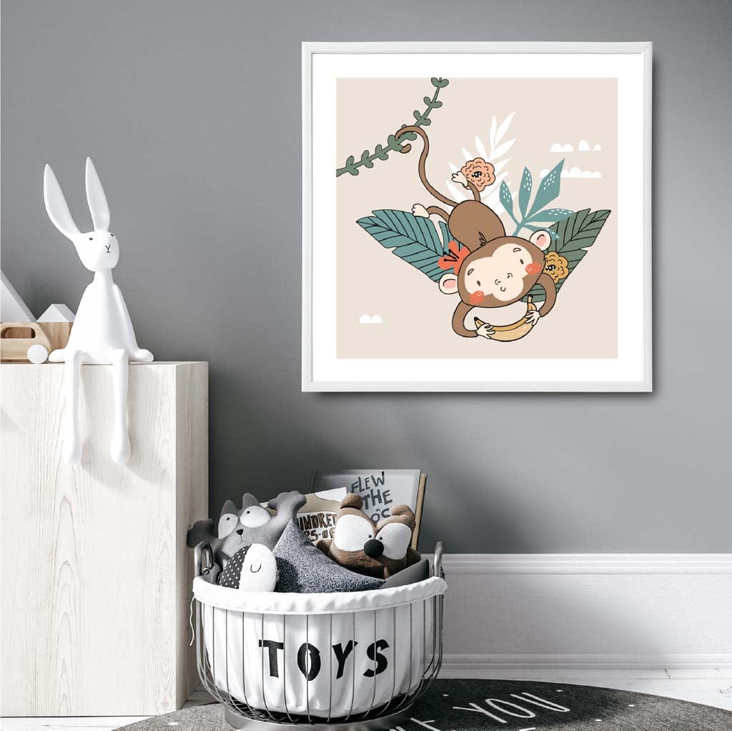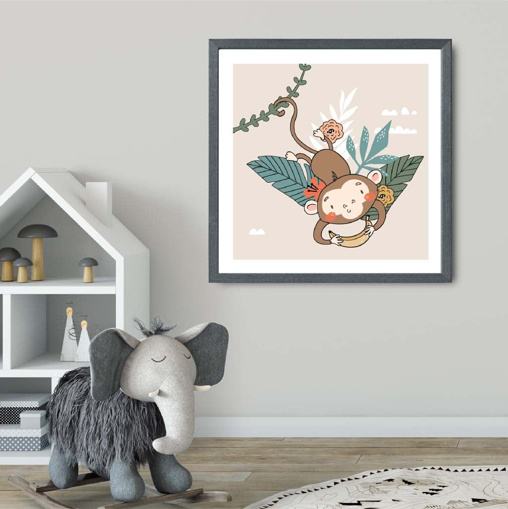 Cute Monkey FRAMED Print on Beige Jungle Kids Wall Art