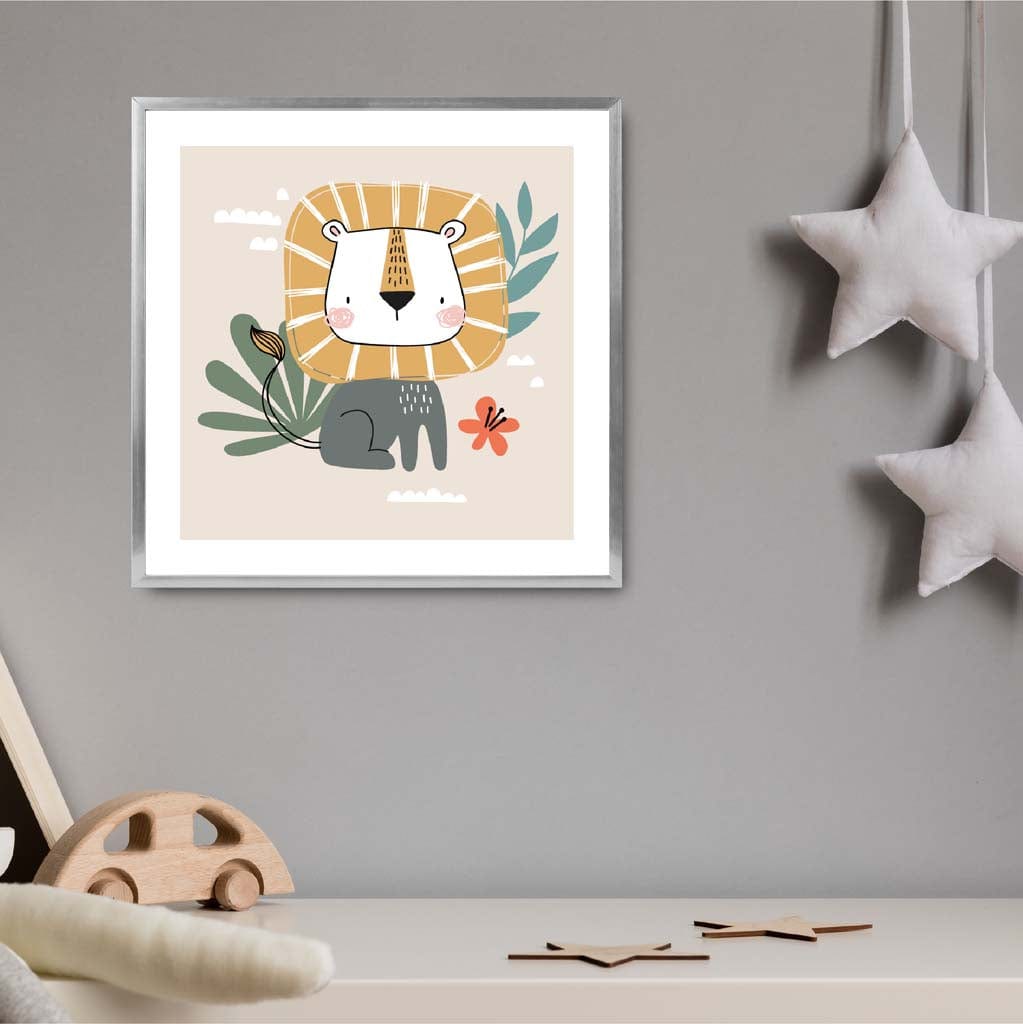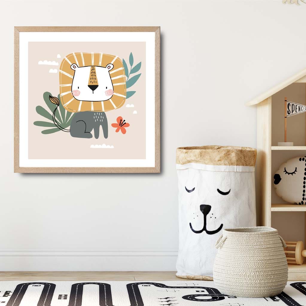 Cute Lion FRAMED Print on Beige Jungle Kids Wall Art