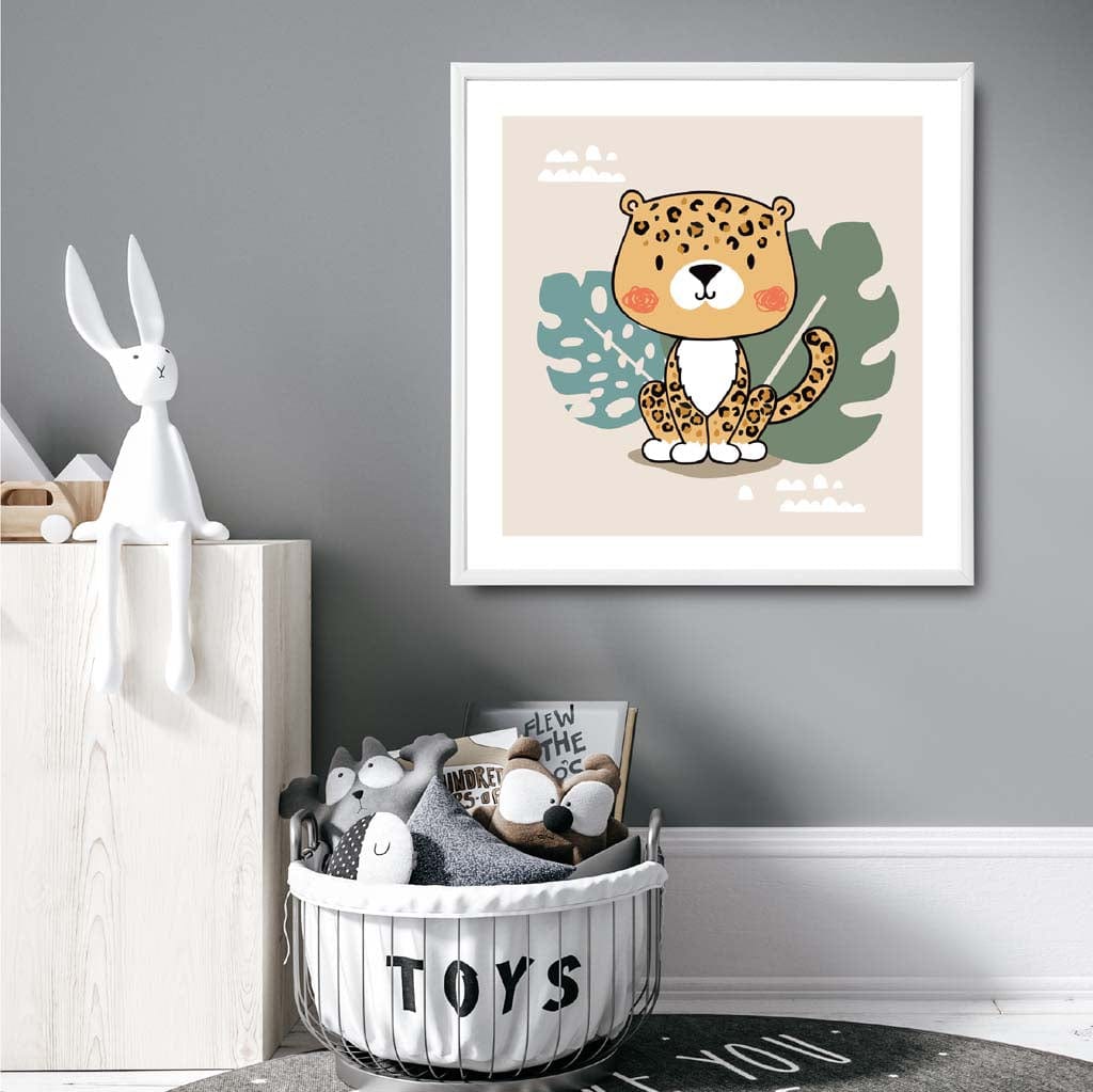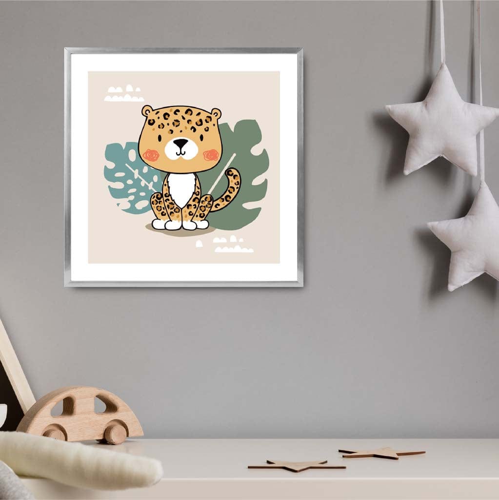 Cute Leopard FRAMED Print on Beige Jungle Kids Wall Art