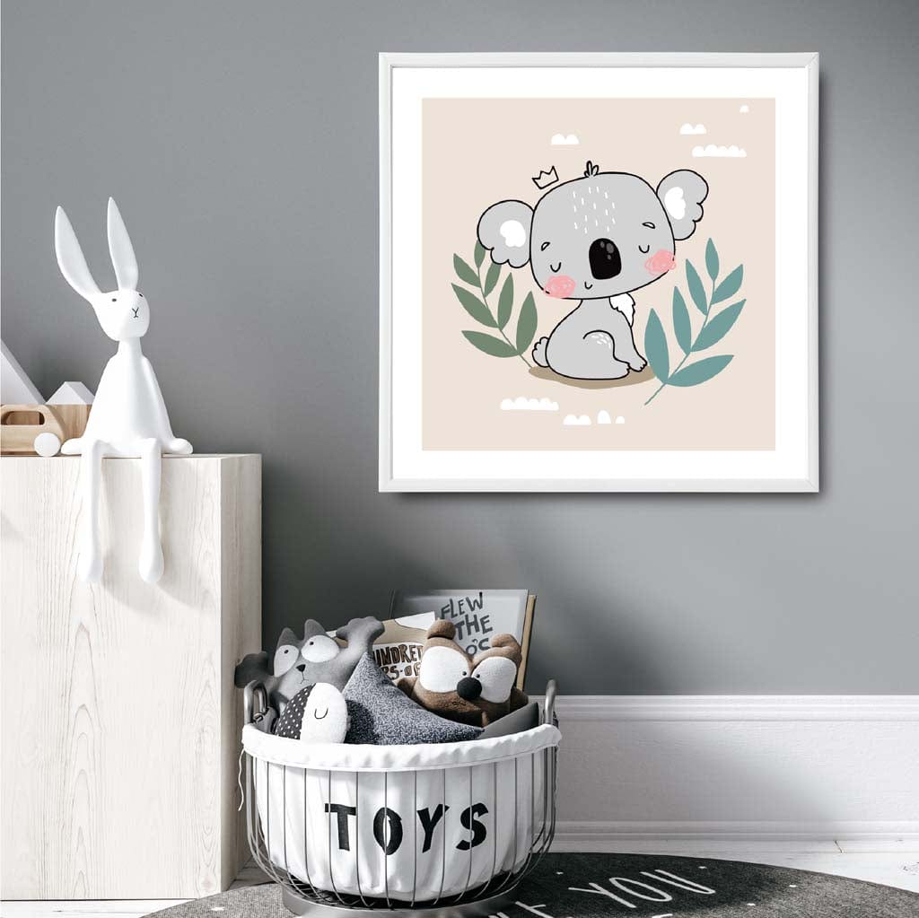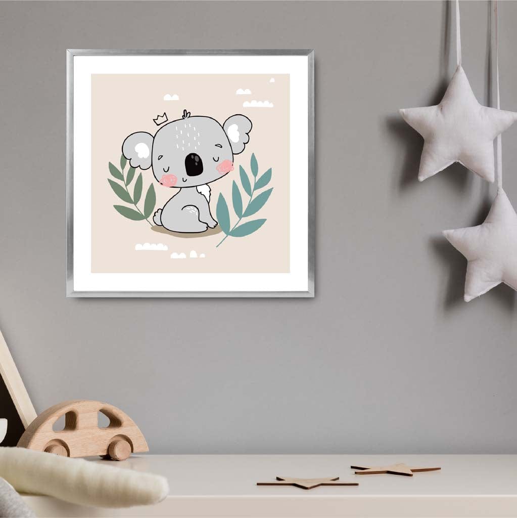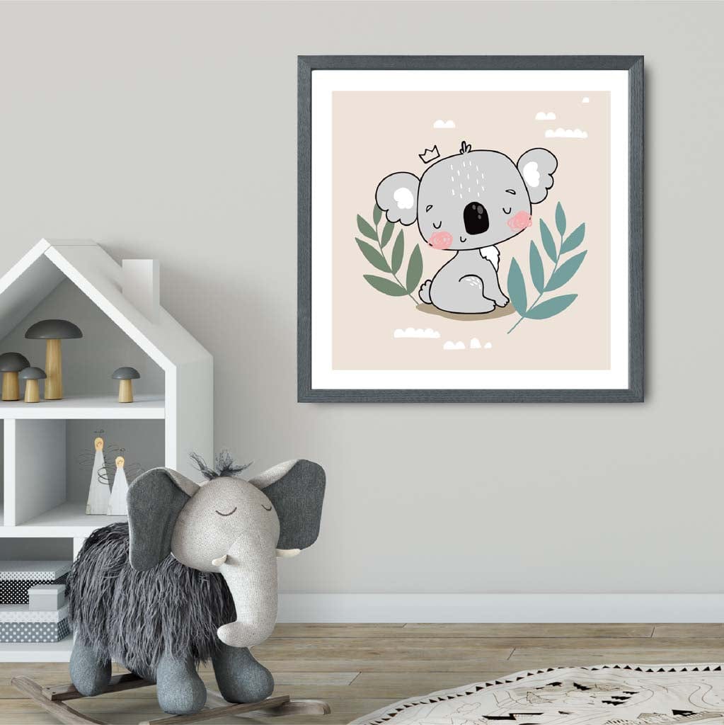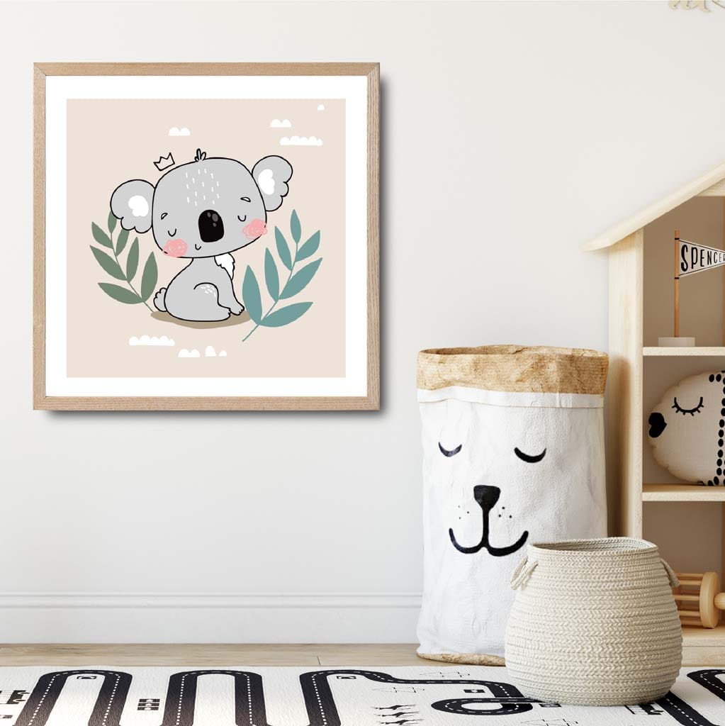 Cute Koala FRAMED Print on Beige Jungle Kids Wall Art