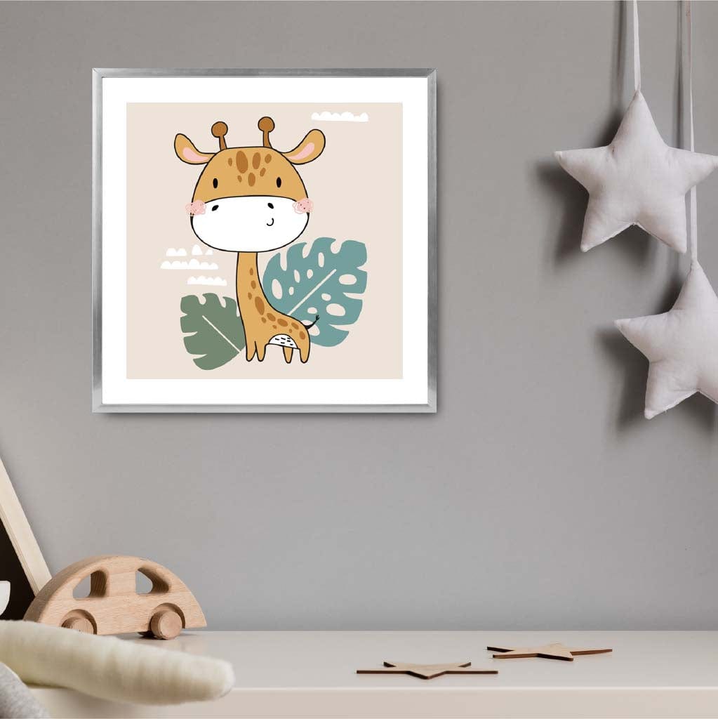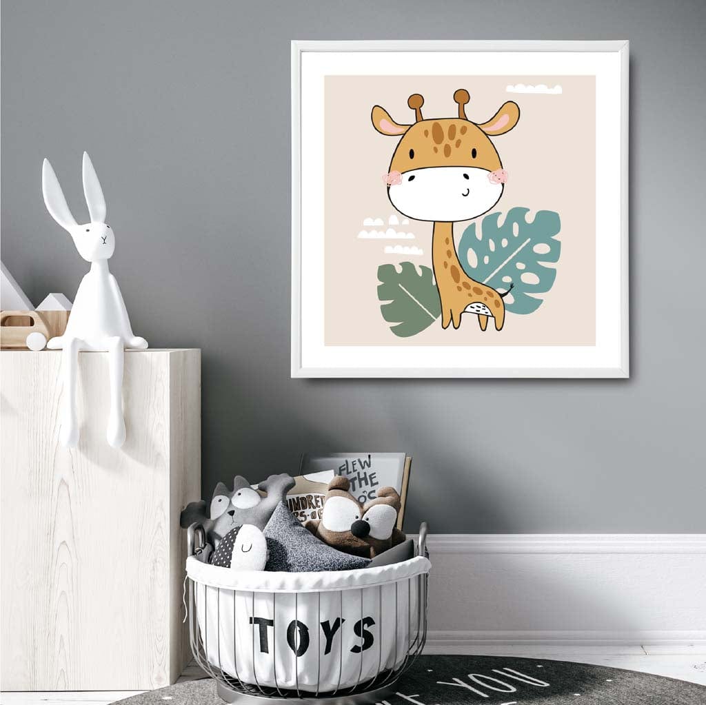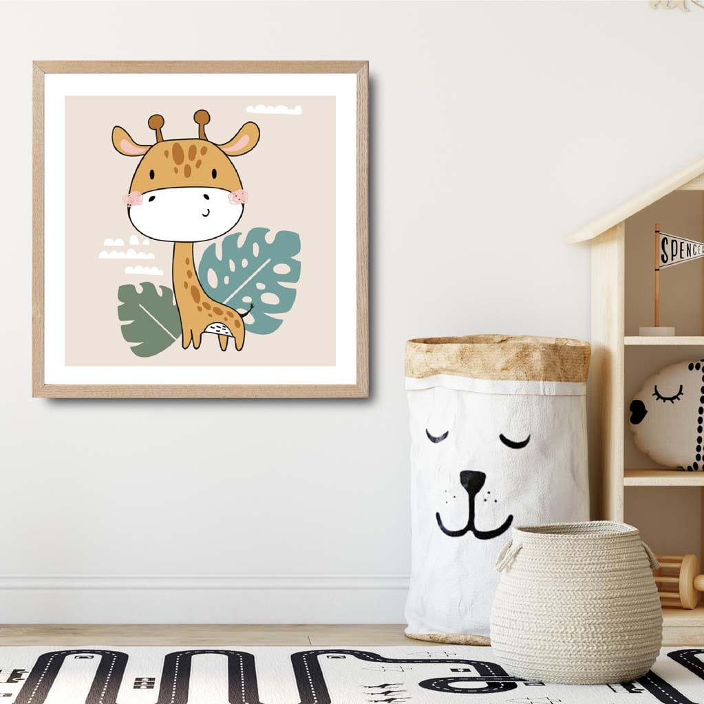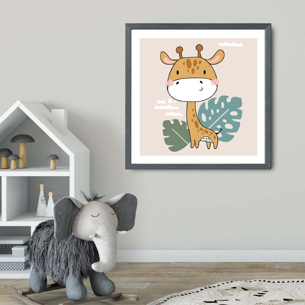 Cute Giraffe FRAMED Print on Beige Jungle Kids Wall Art