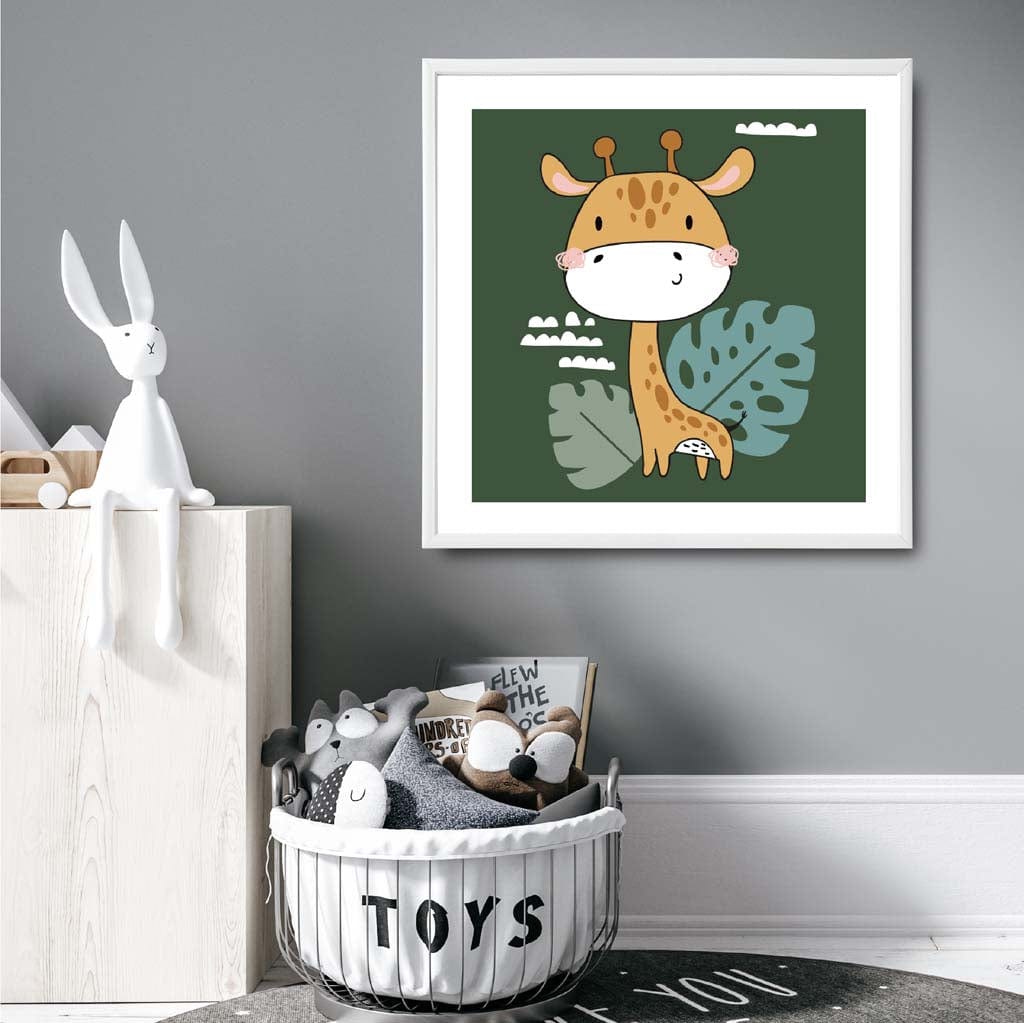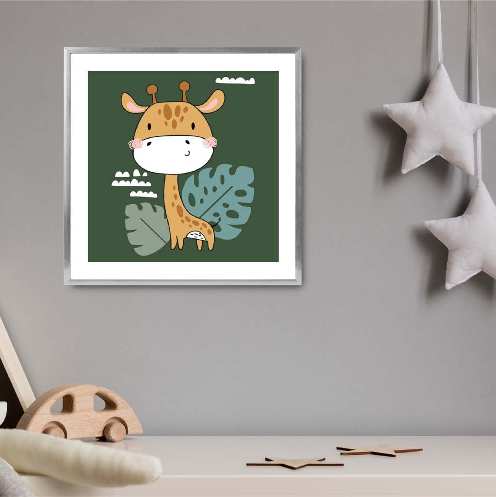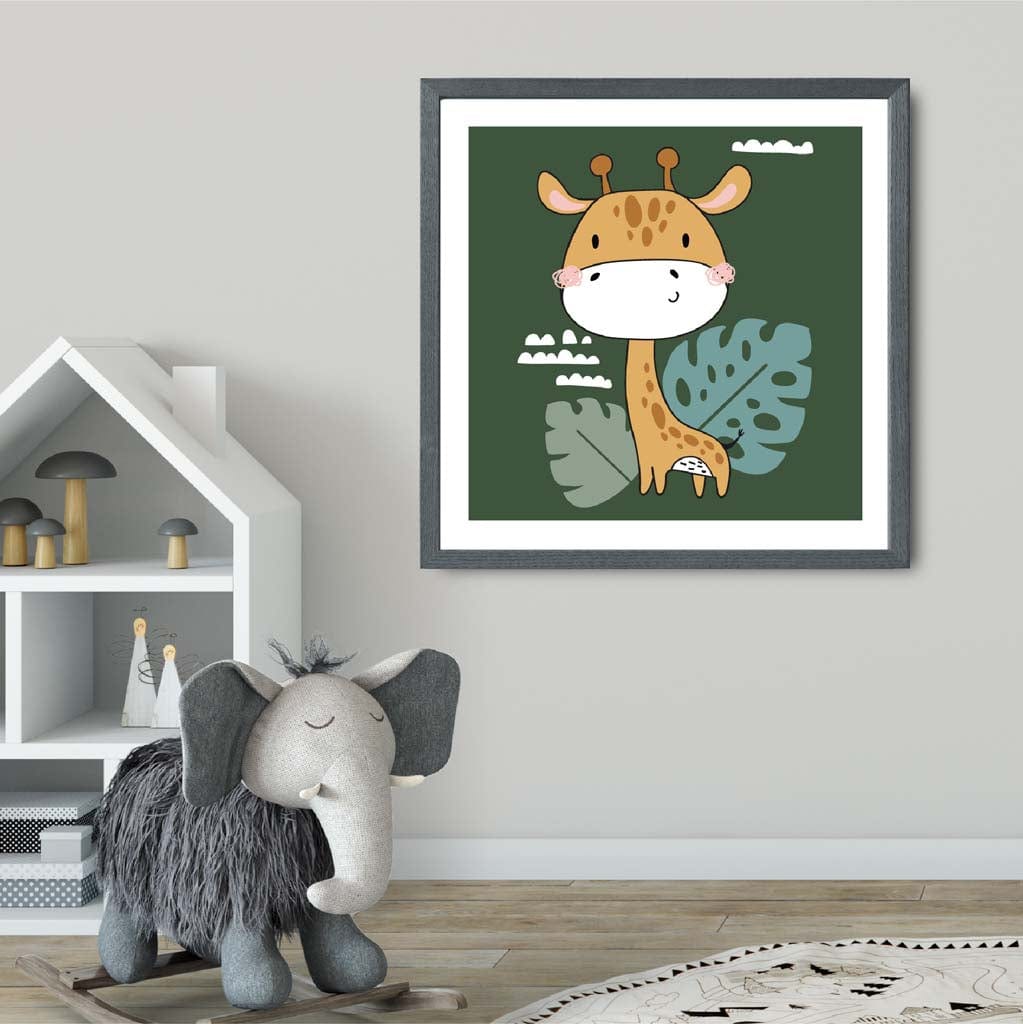 Cute Giraffe FRAMED Print on Dark Green Jungle Kids Wall Art