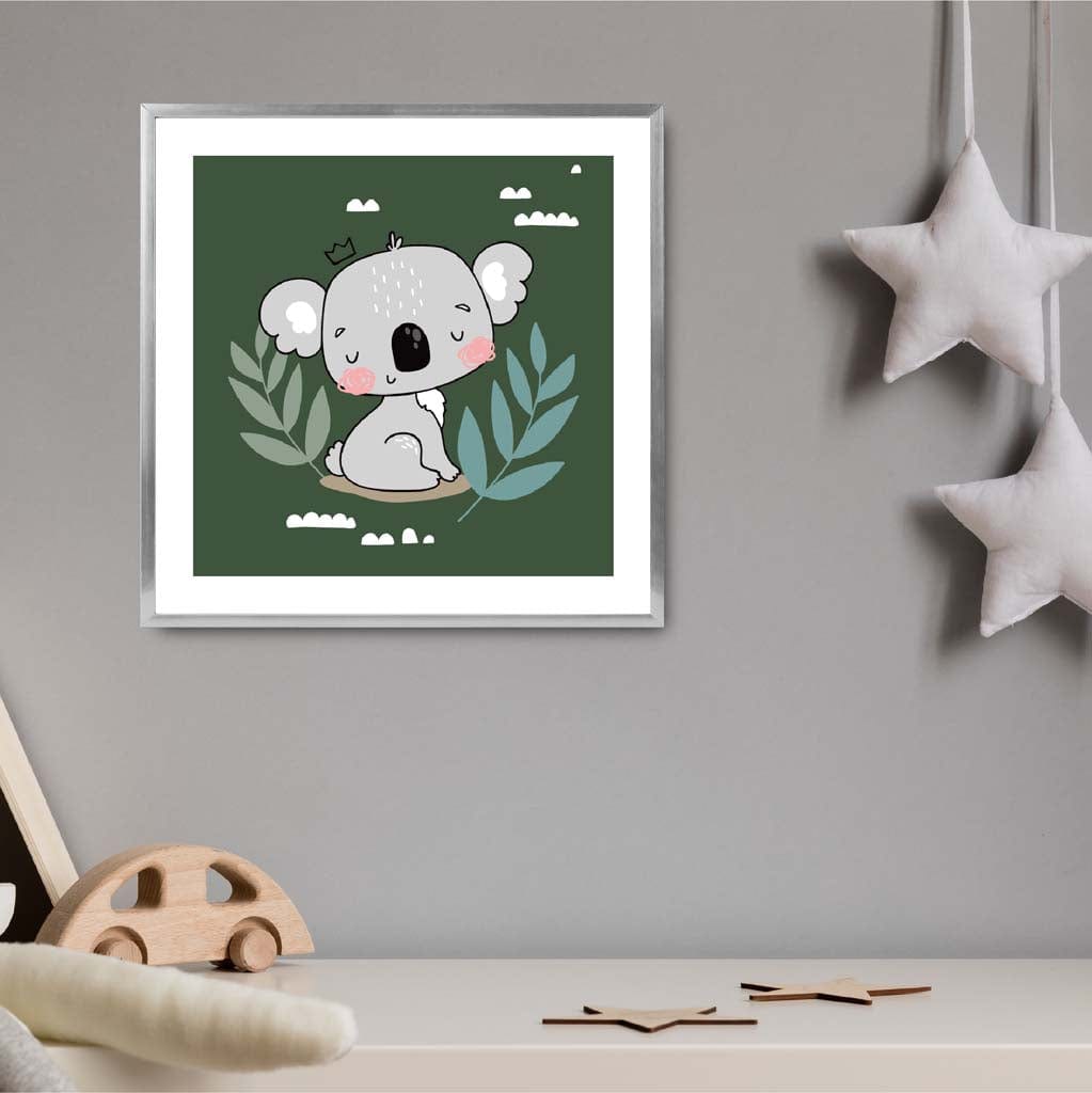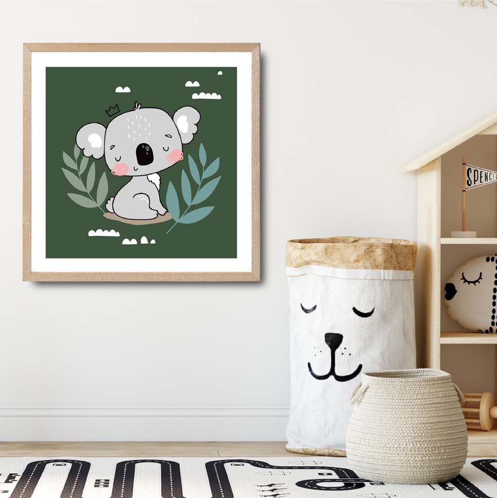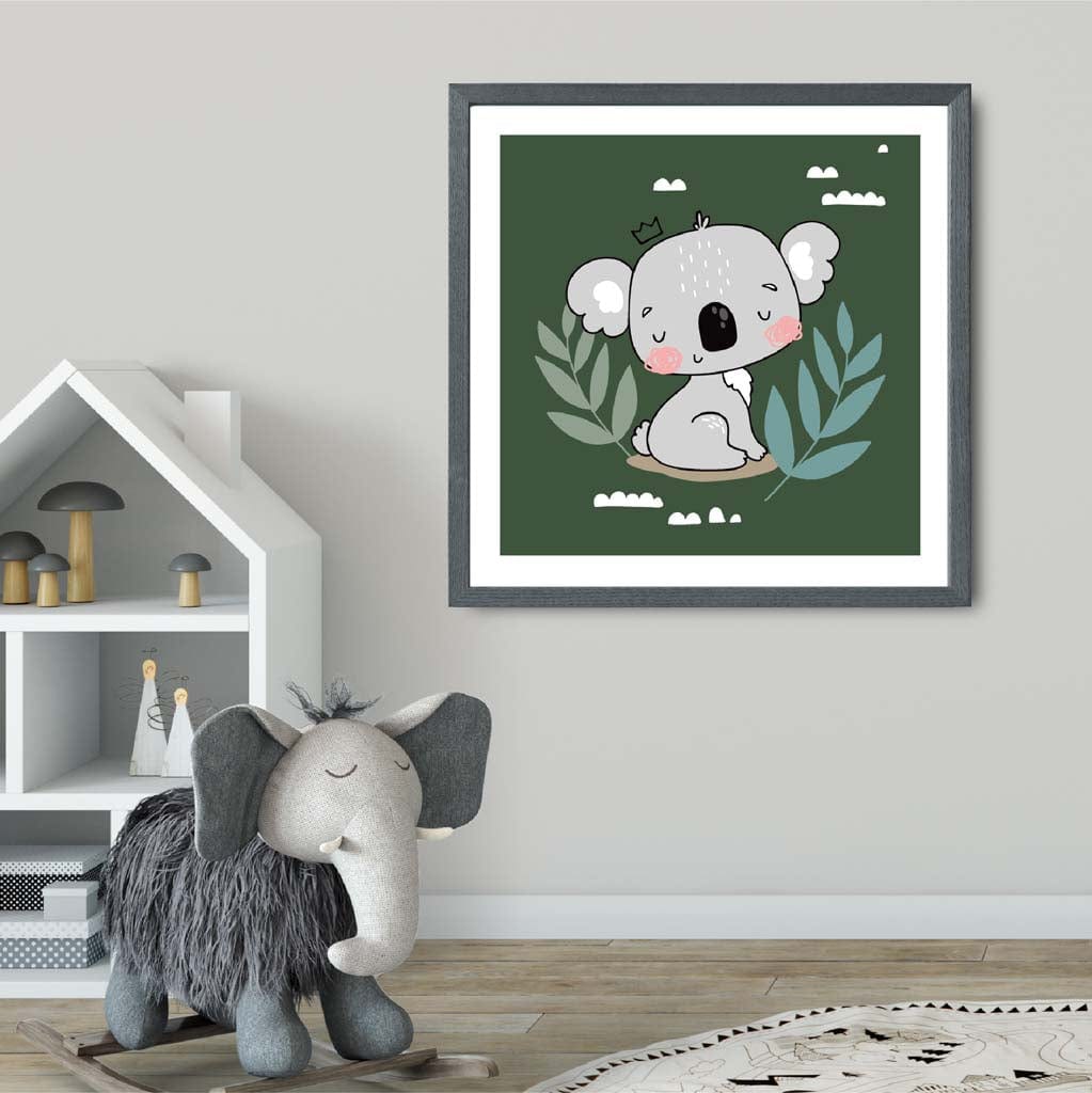Cute Koala FRAMED Print on Dark Green Jungle Kids Wall Art