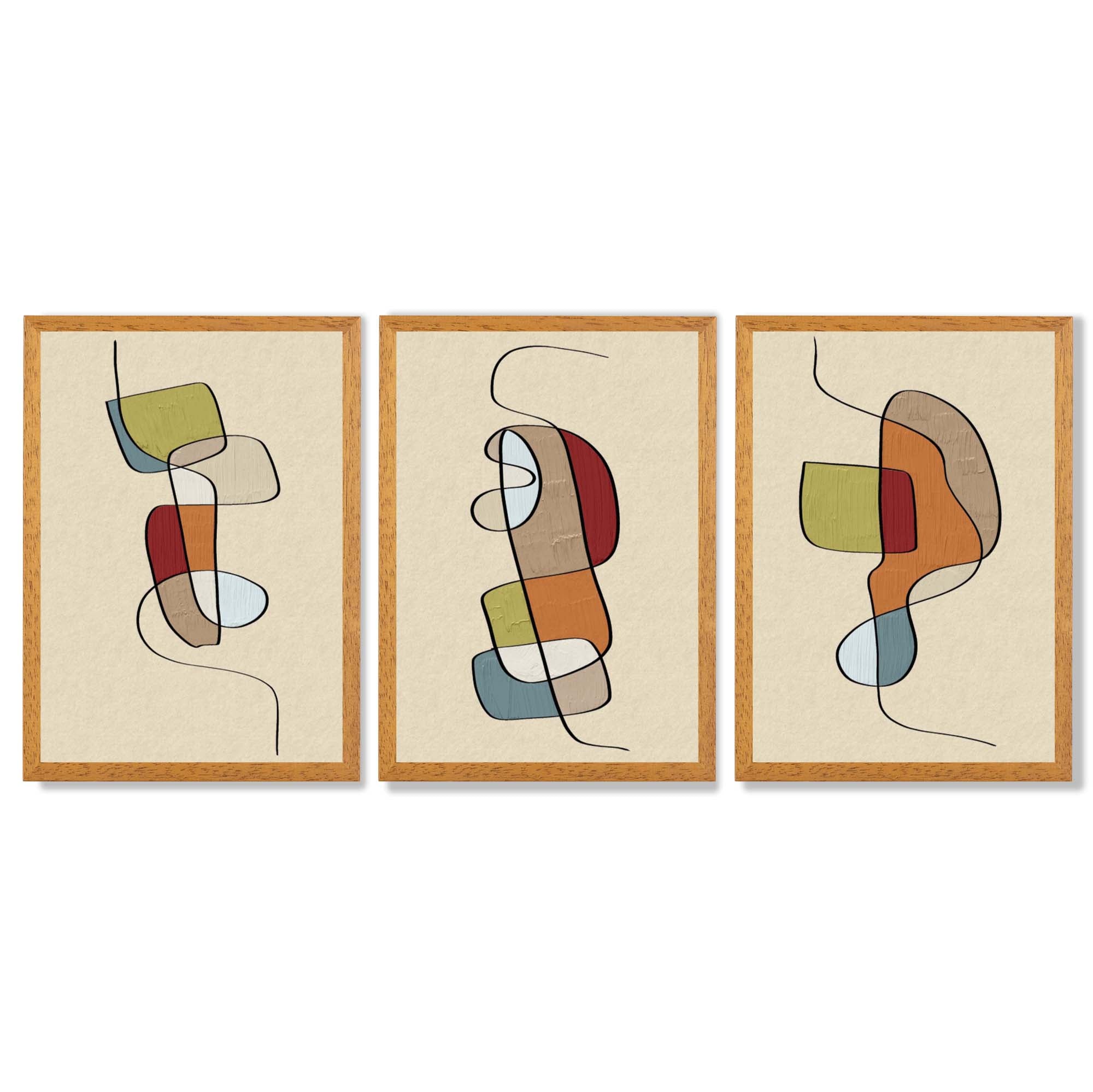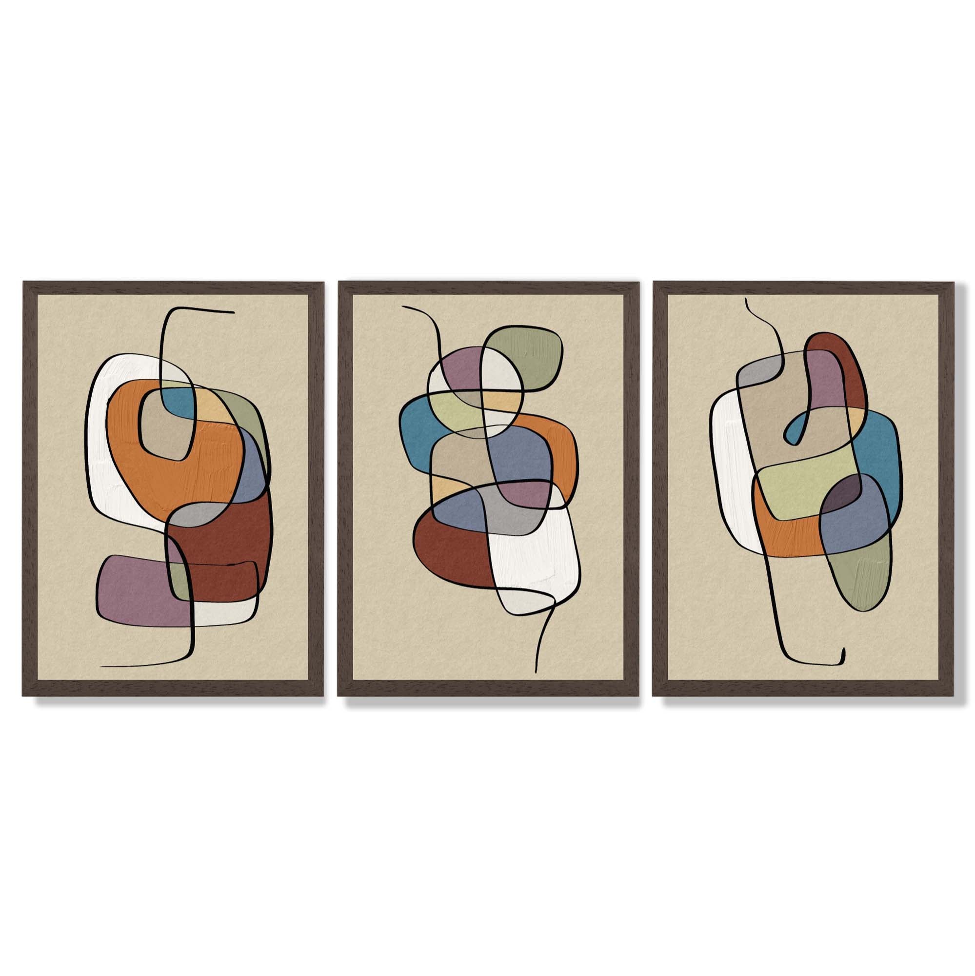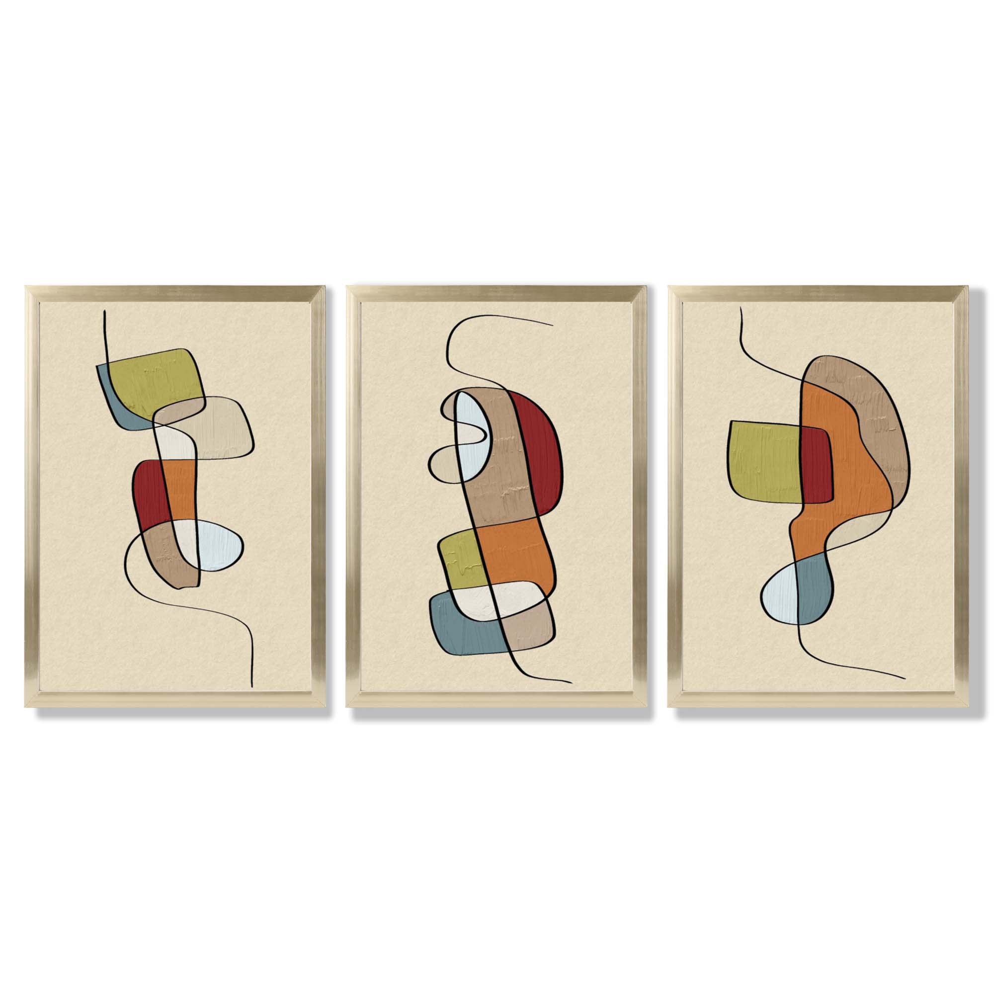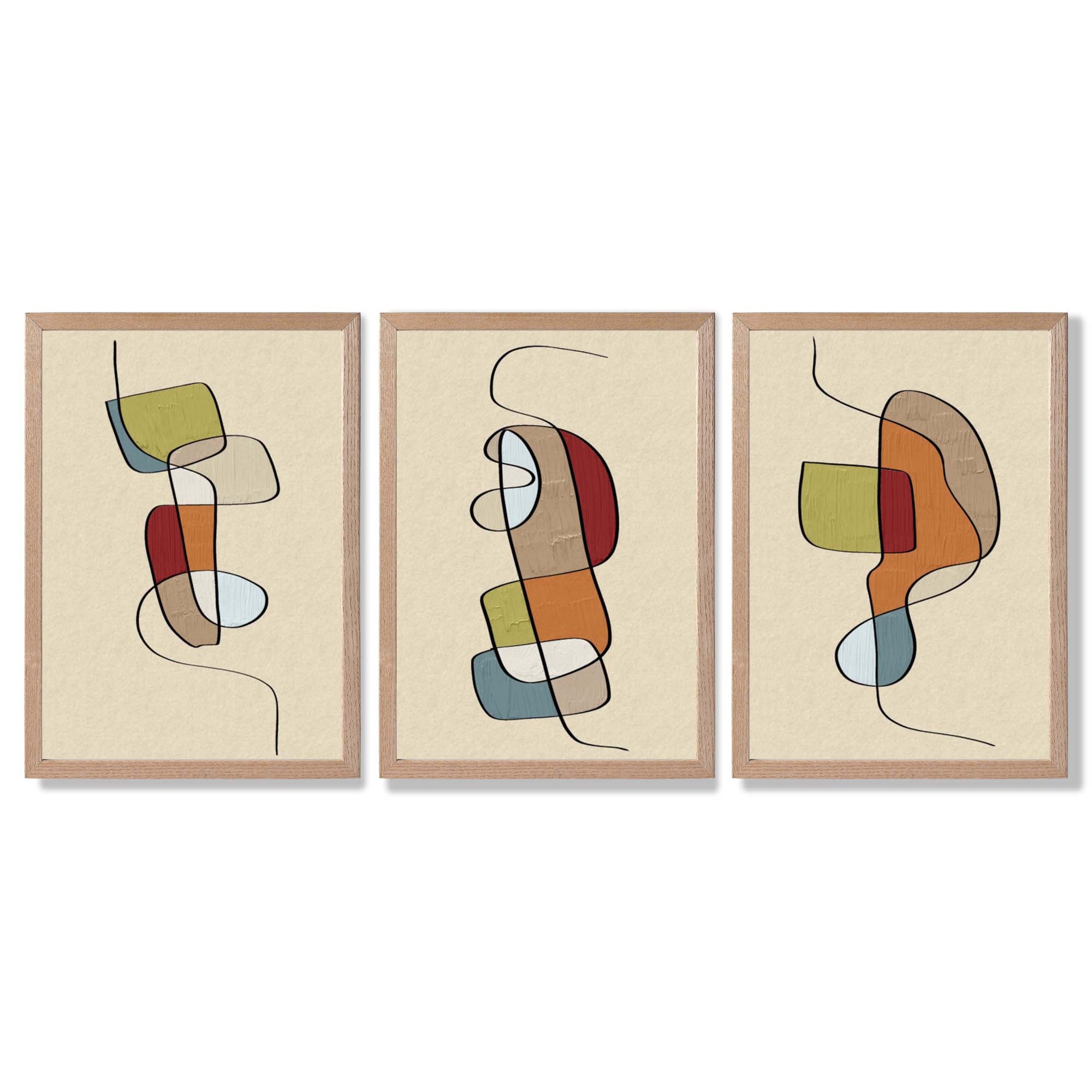 Set of 3 Abstract Beige and Orange Energy Framed Art Prints