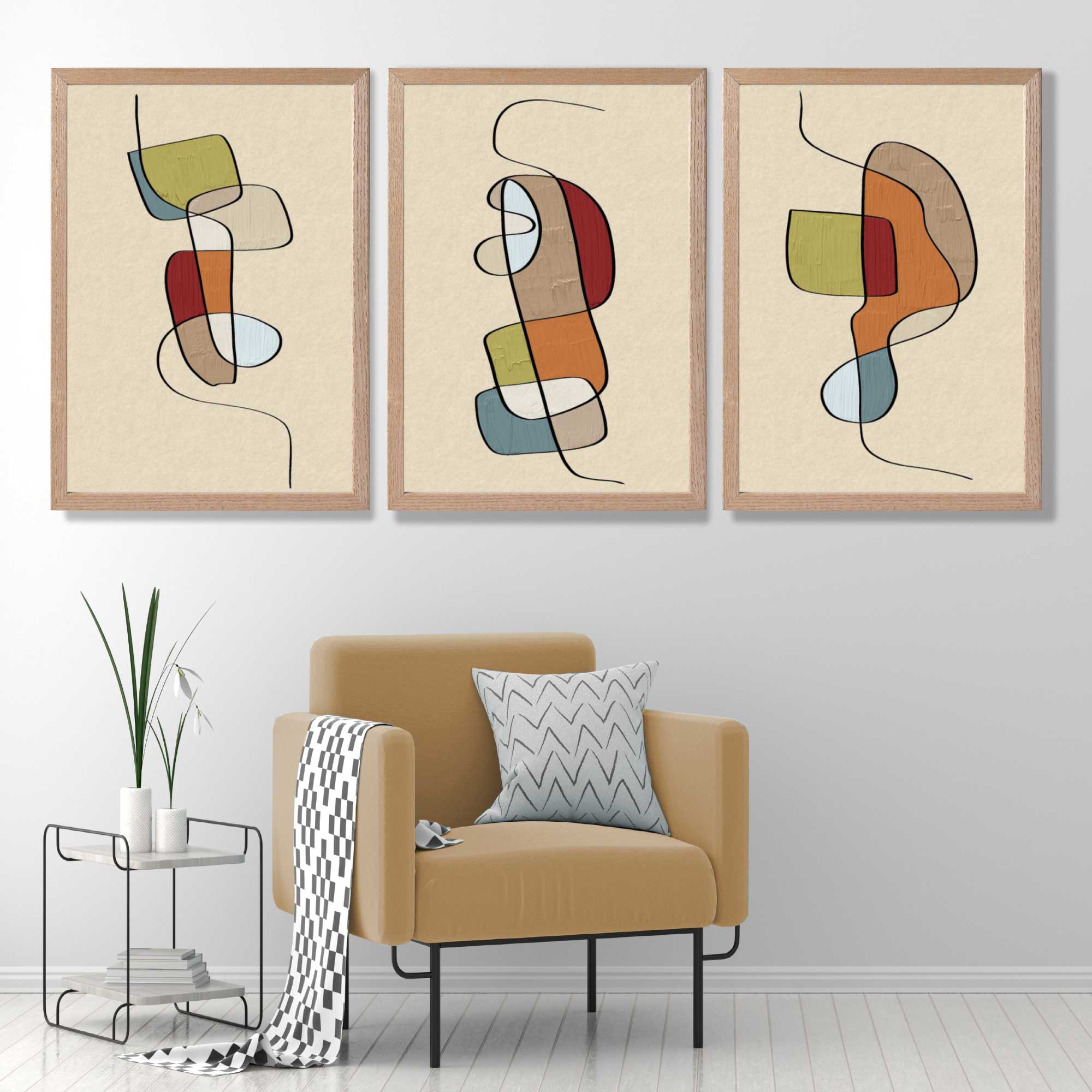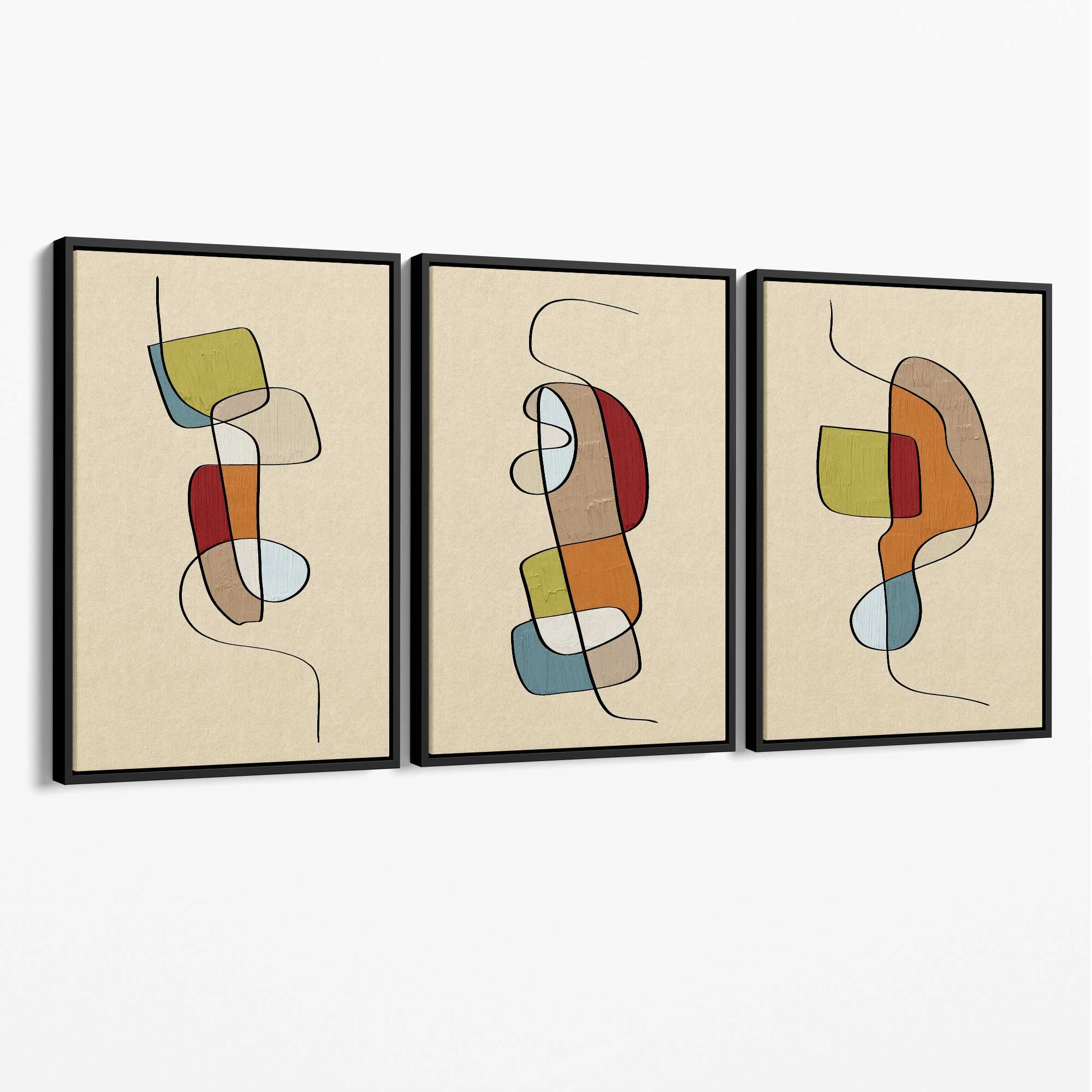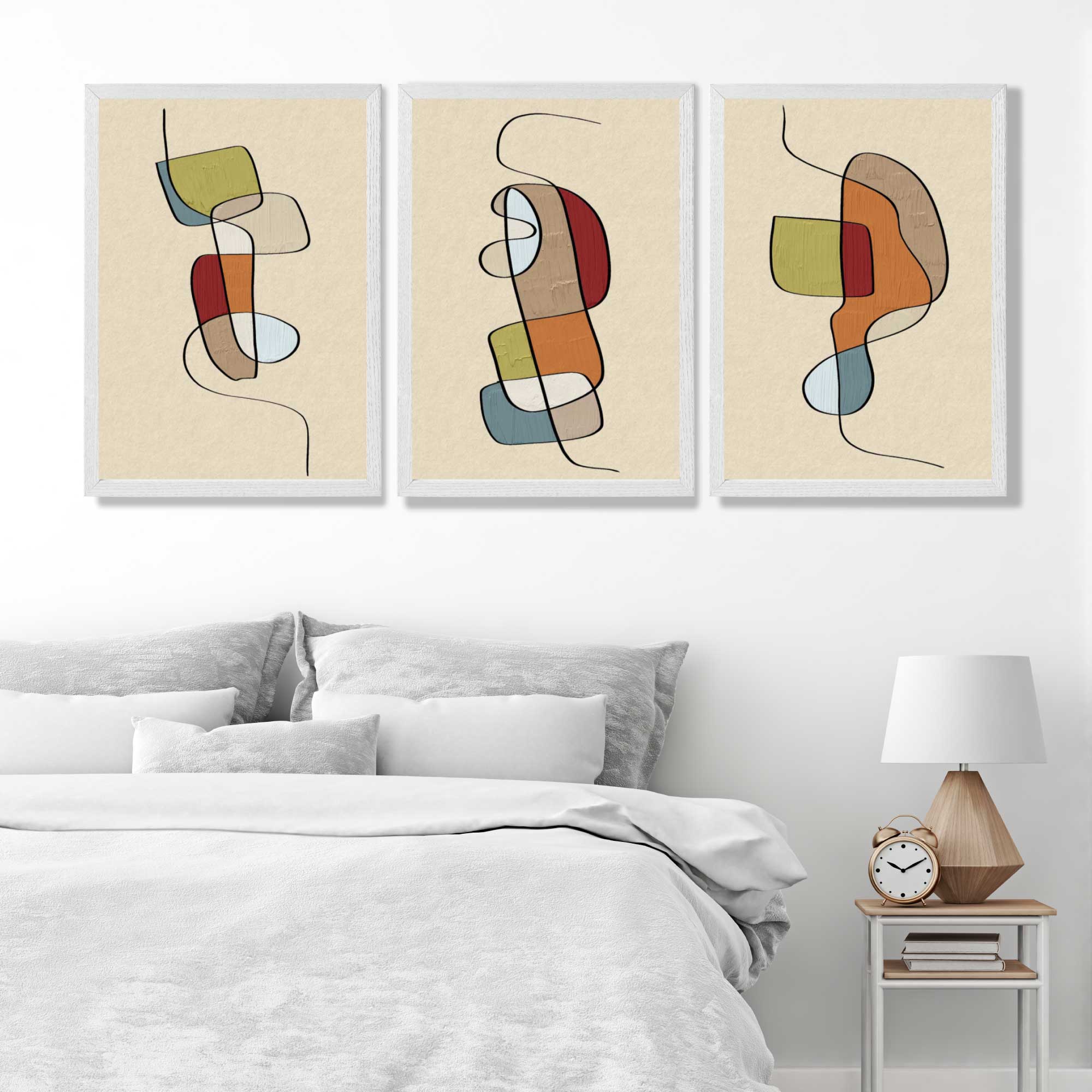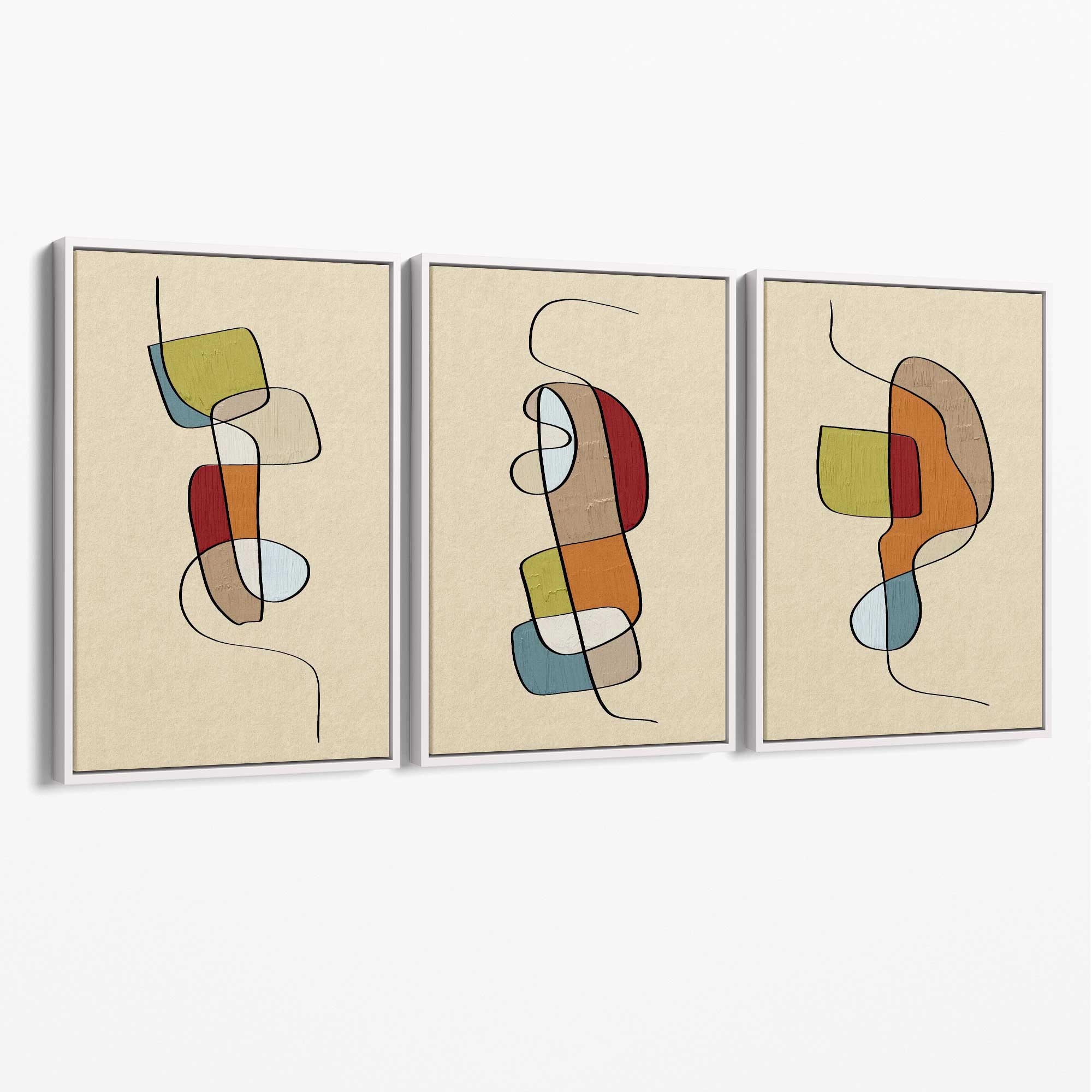 Set of 3 Abstract Beige and Orange Energy Framed Art Prints