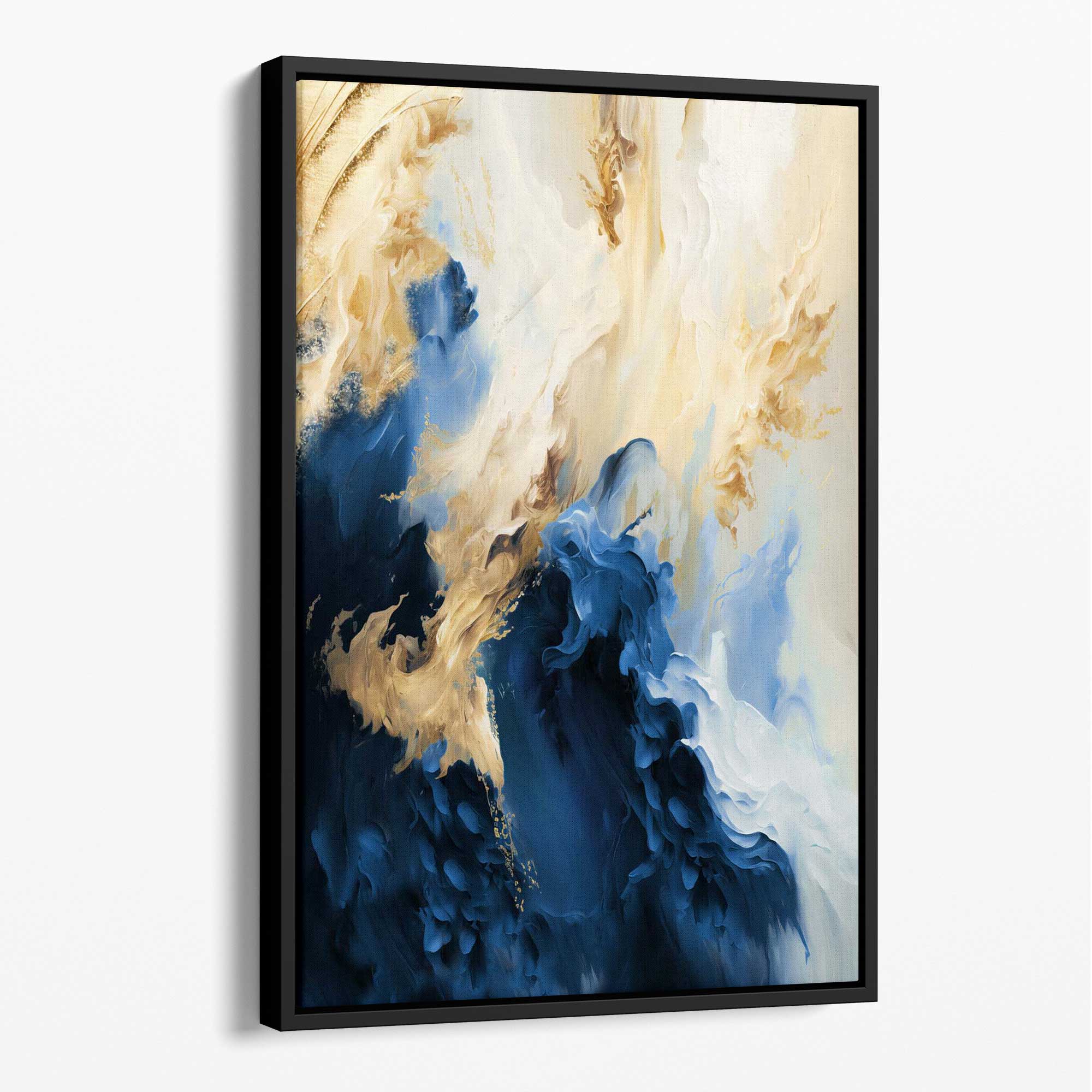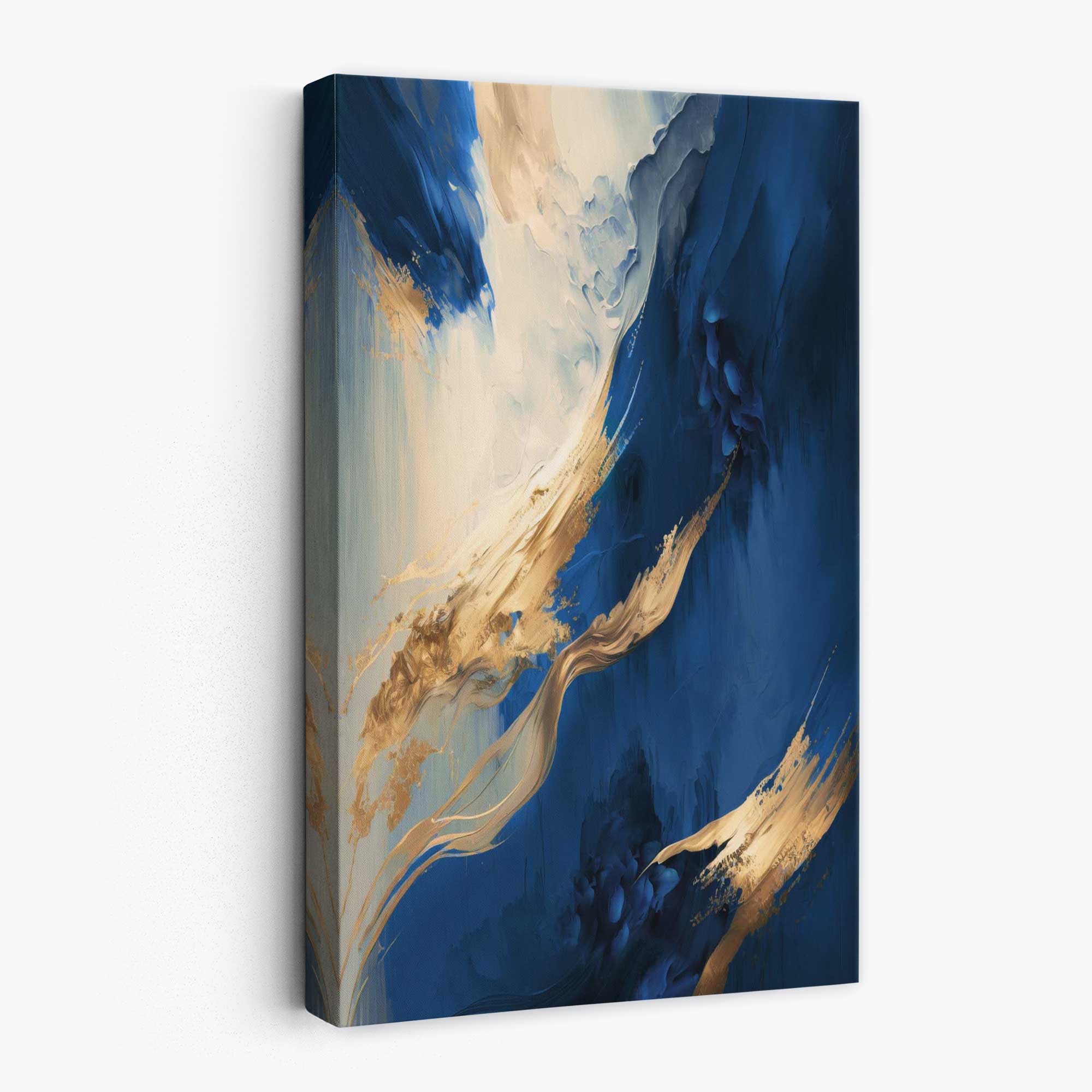 Abstract Blue and Gold Canvas Wall Art Paint Strokes No 3