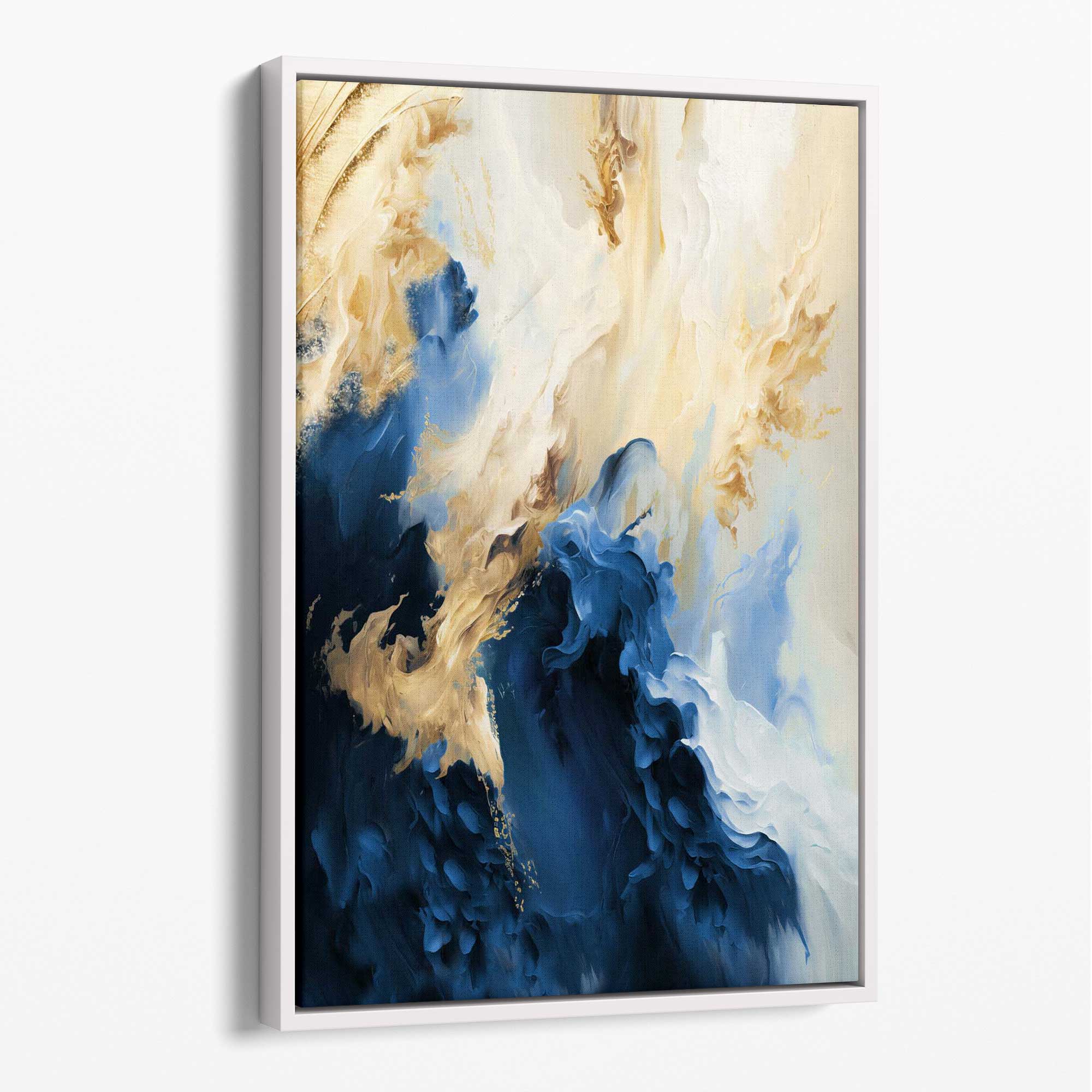 Part of the Abstract Oil Collection, this Canvas Wall Art showcases one of three complementary Impressionist Oil paintings in shades of Blue, Ivory, and Gold Colour (not foil).