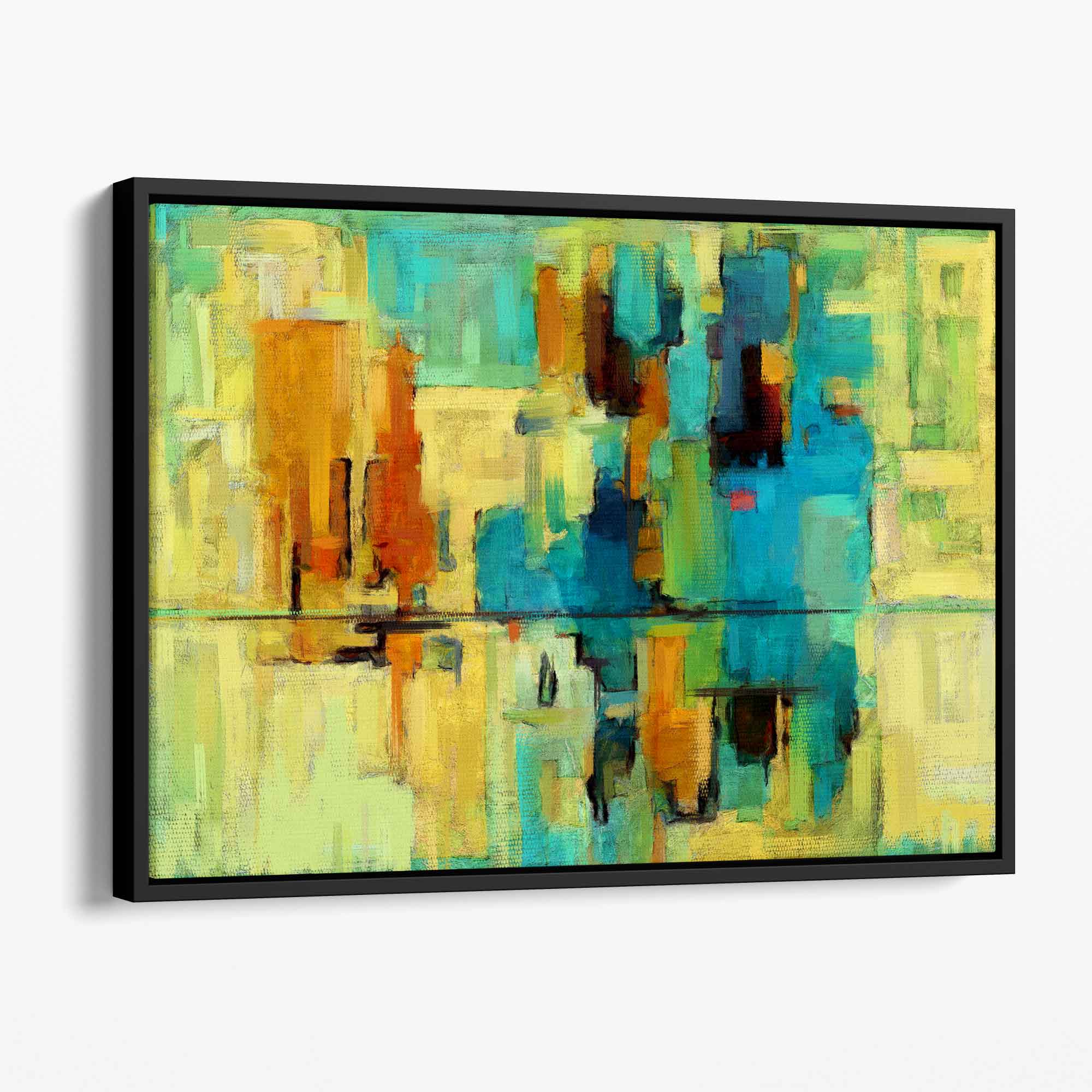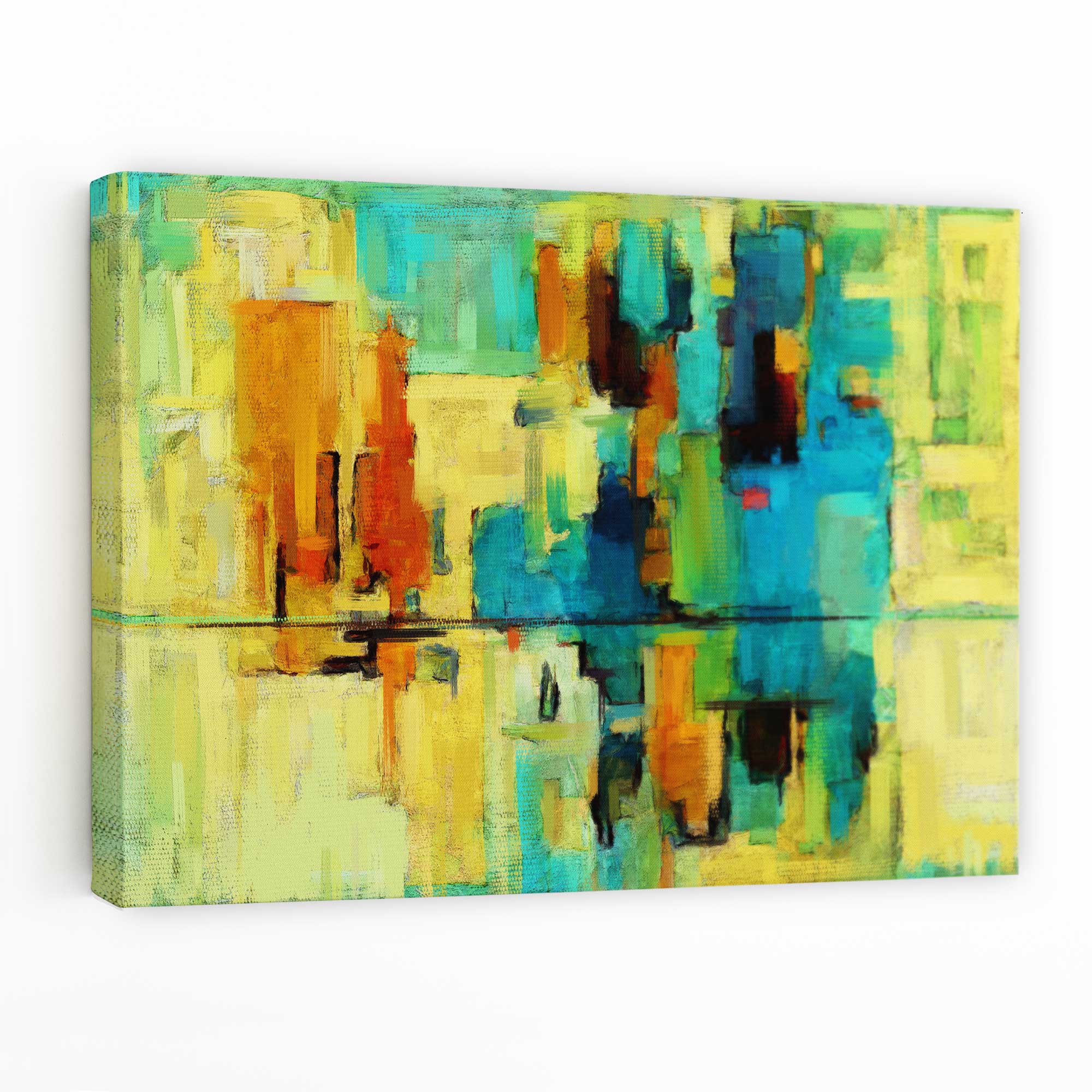 Abstract Canvas Wall Art Print In Bright Green and Blue