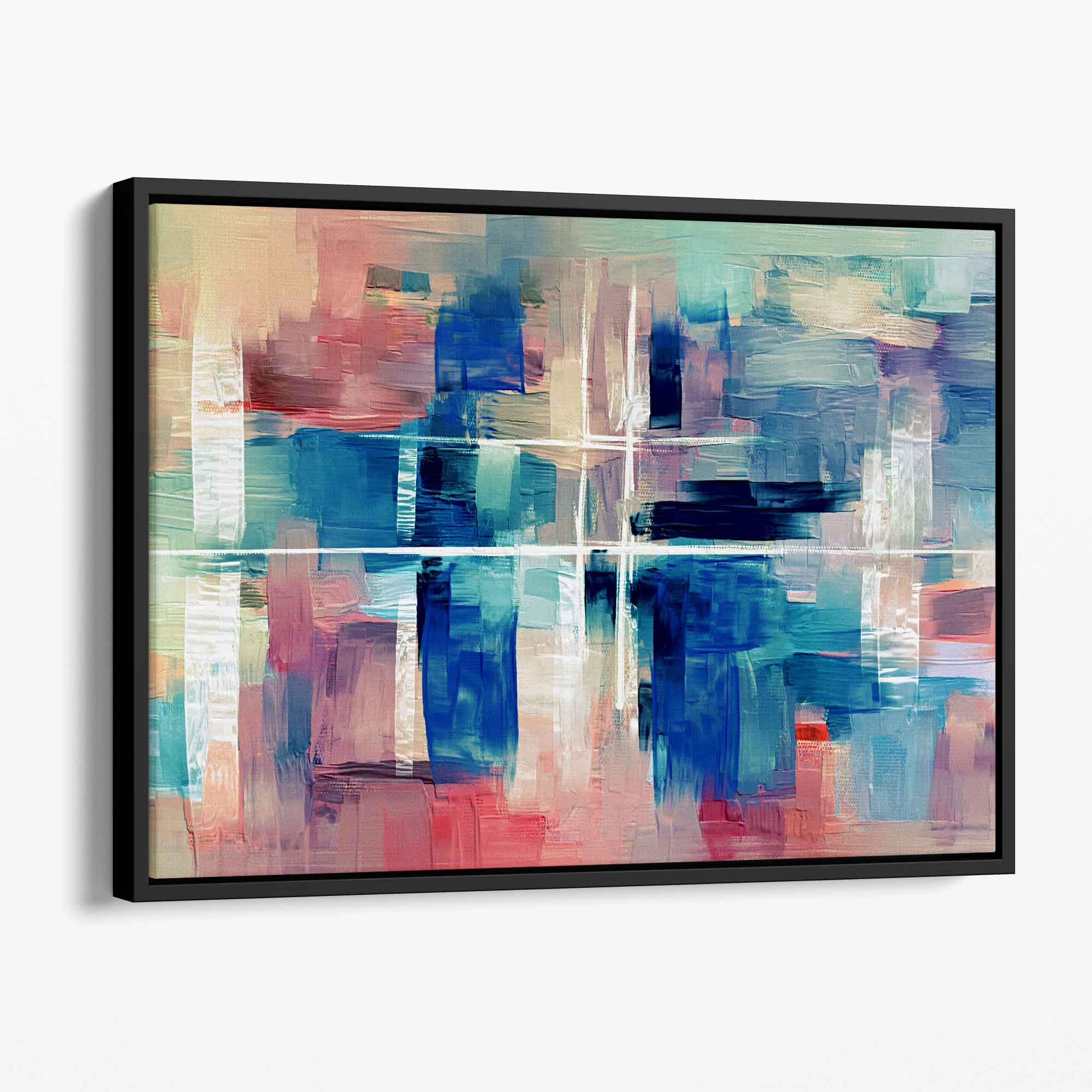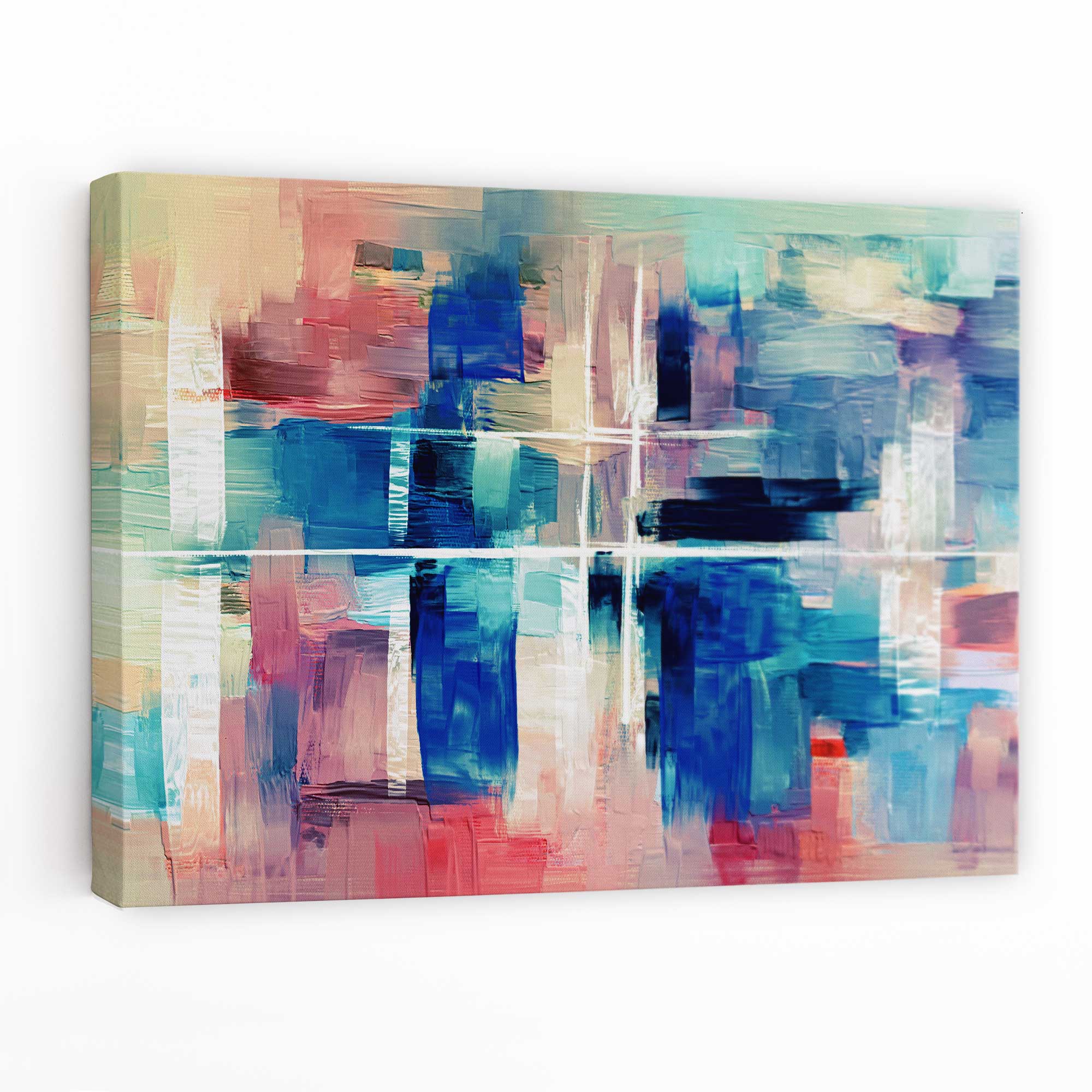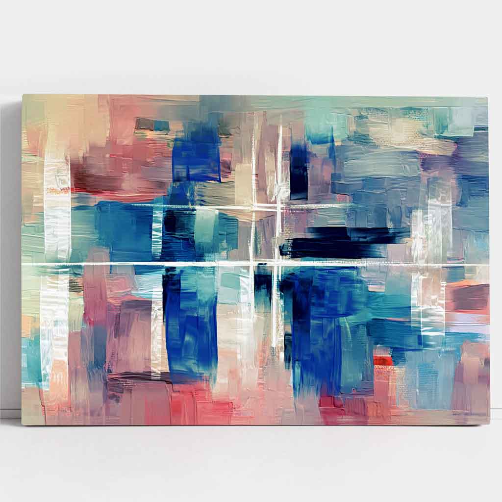 Abstract Canvas Wall Art Print - Paint Strokes In Blue and Pink