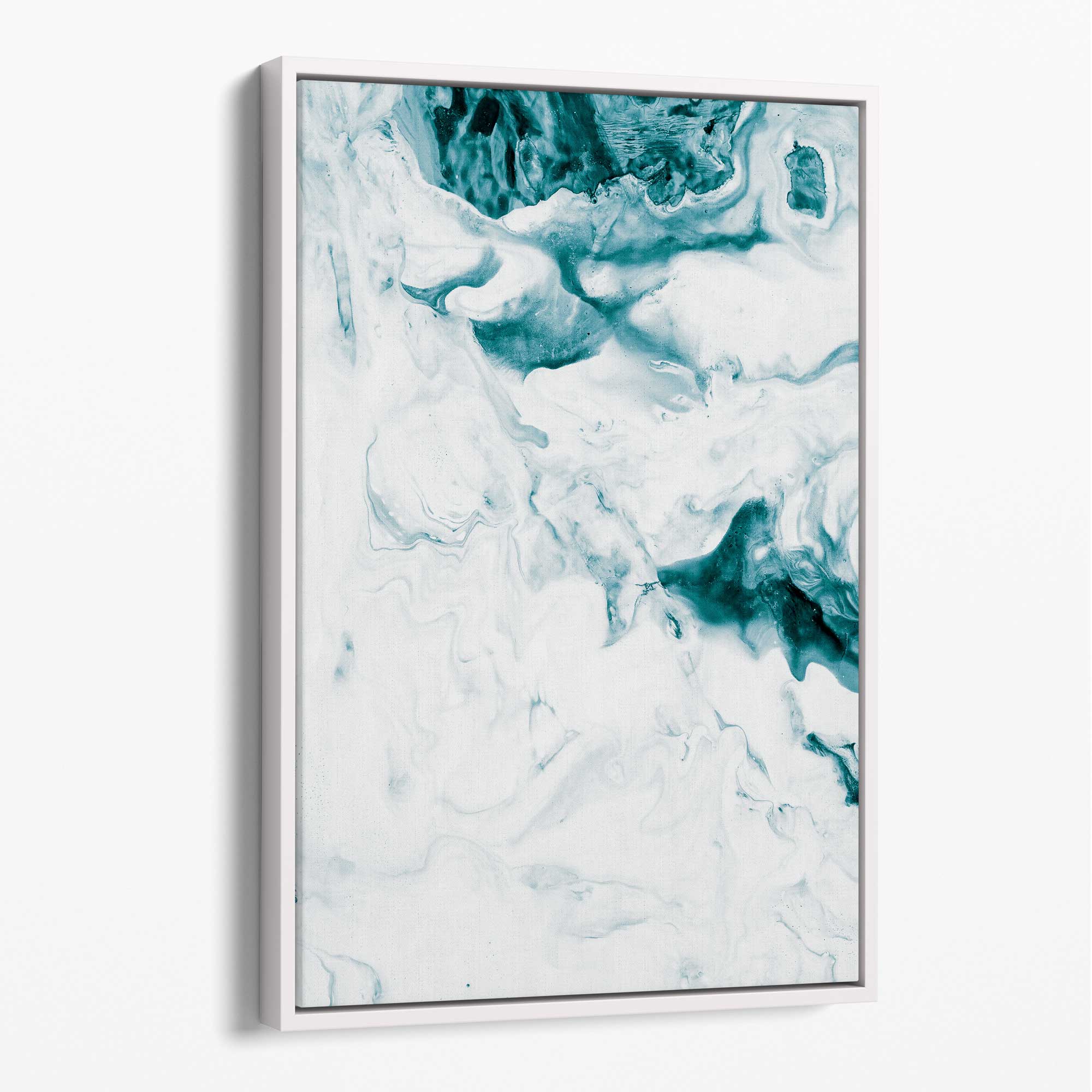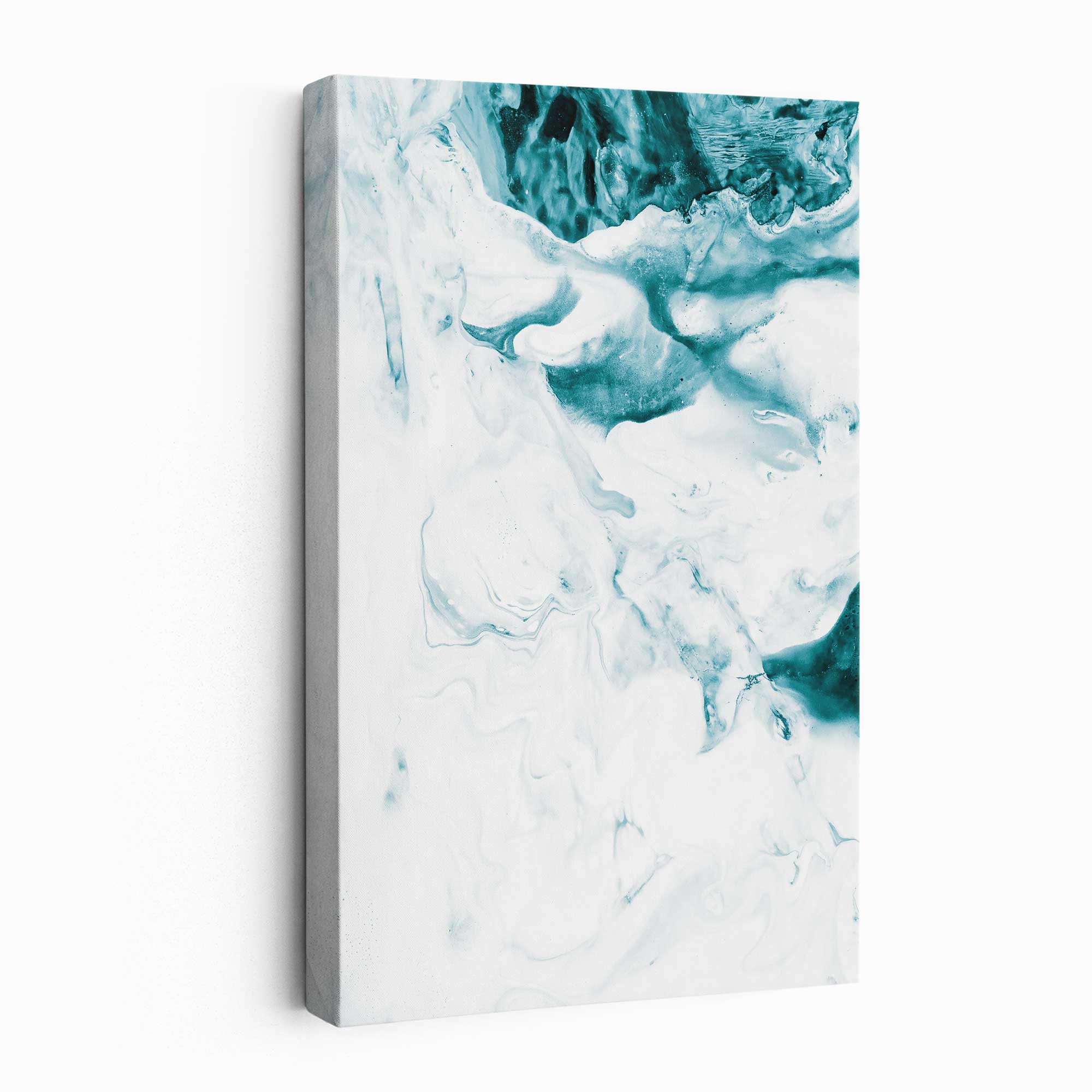 Abstract Teal and White Canvas Wall Art Paint Strokes No 1