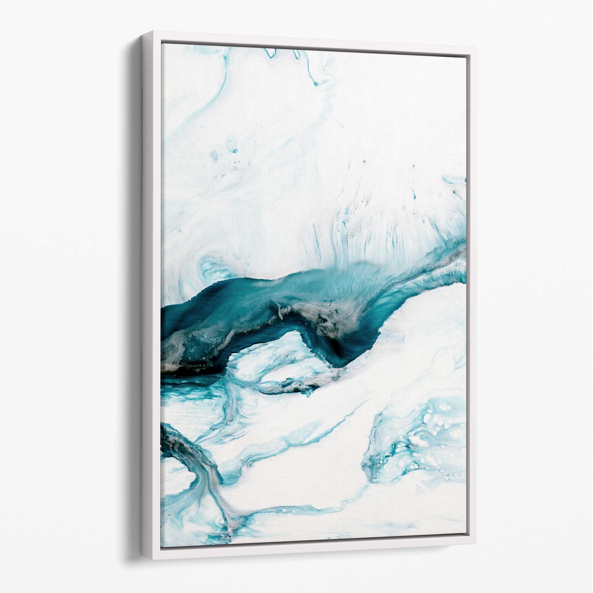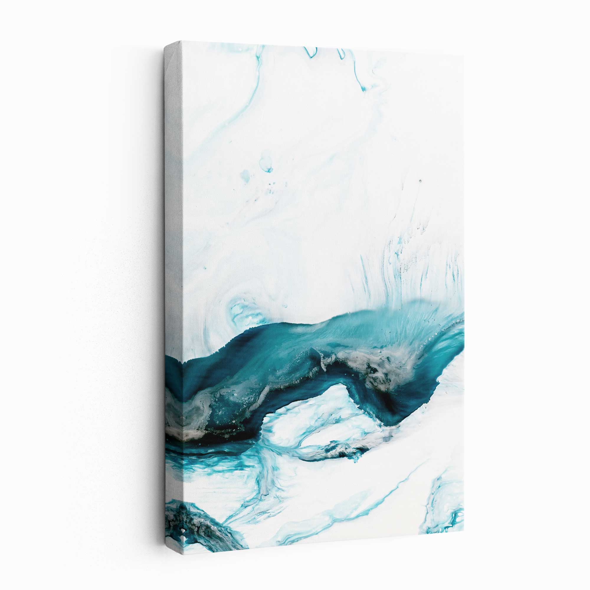 Part of our Abstract Fluid Collection, this Canvas Wall Art features the Second of three complimenting Prints from Impressionist paintings in shades of Teal Blue and White.