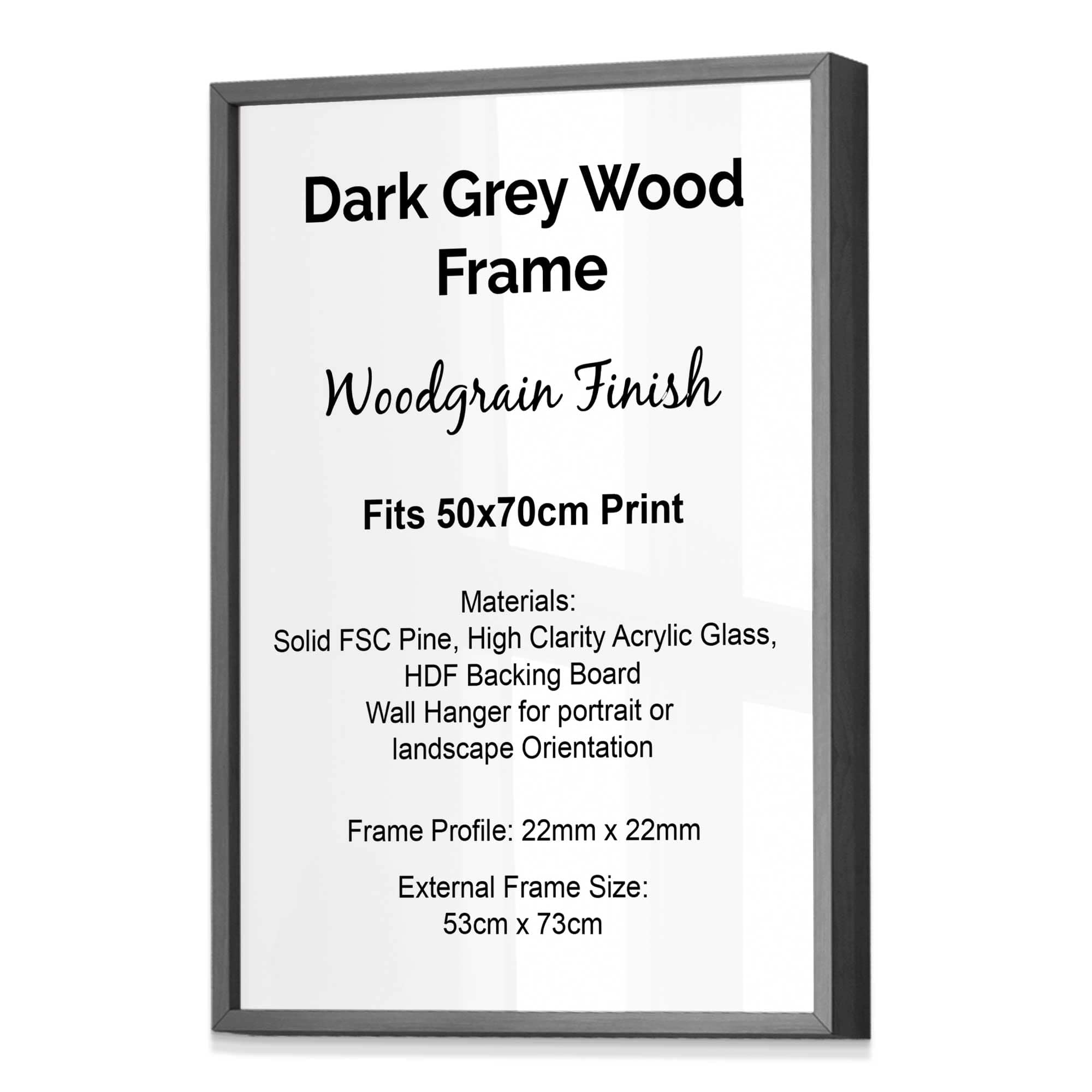 Artze Style Wood Frame fits 50x70cm Print, Available in Black, White, Dark Grey, Light Grey, Oak Effect, Metallic Gold and Brushed Silver.,