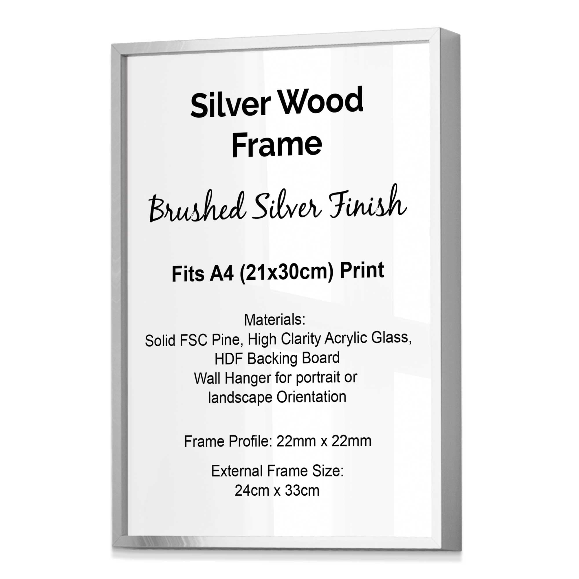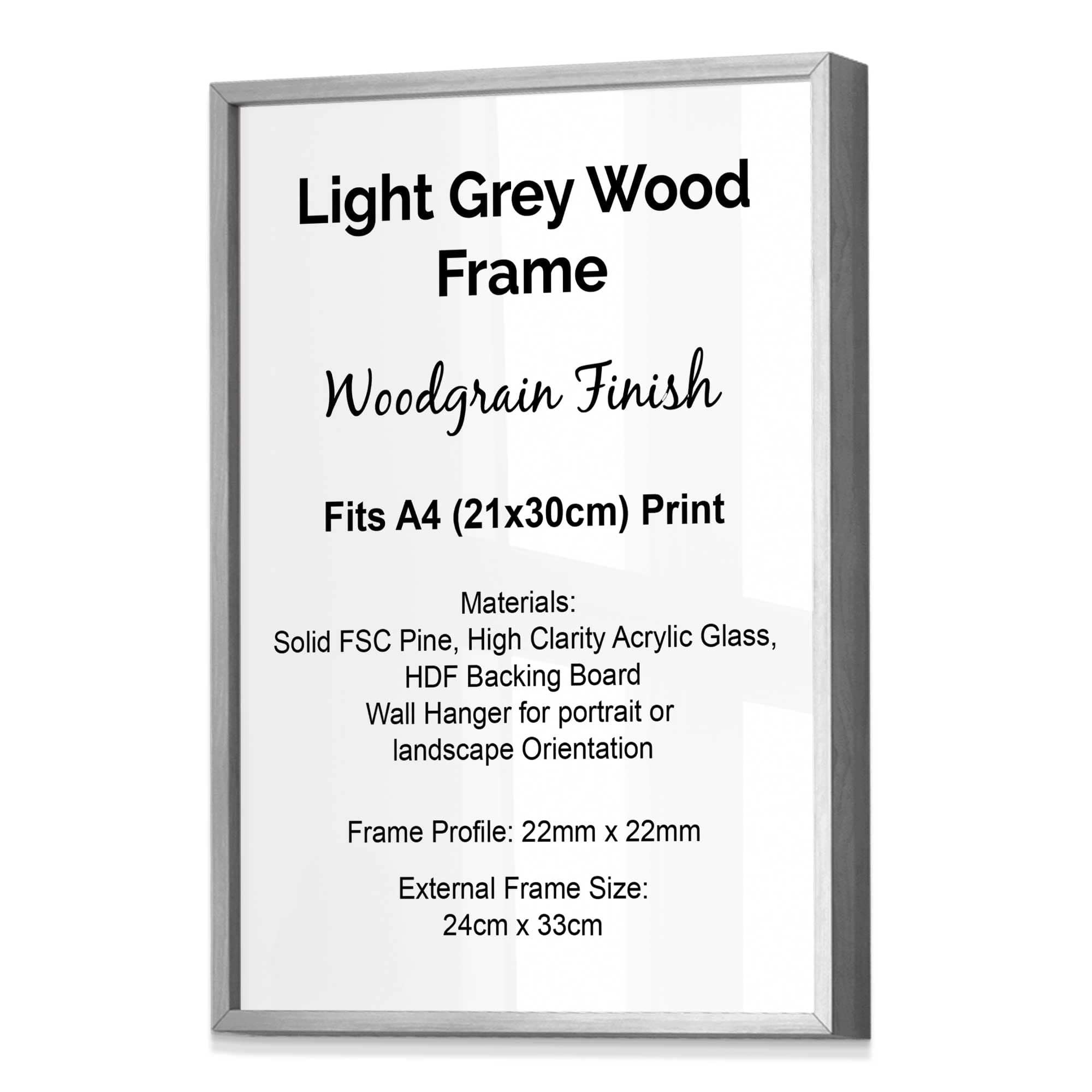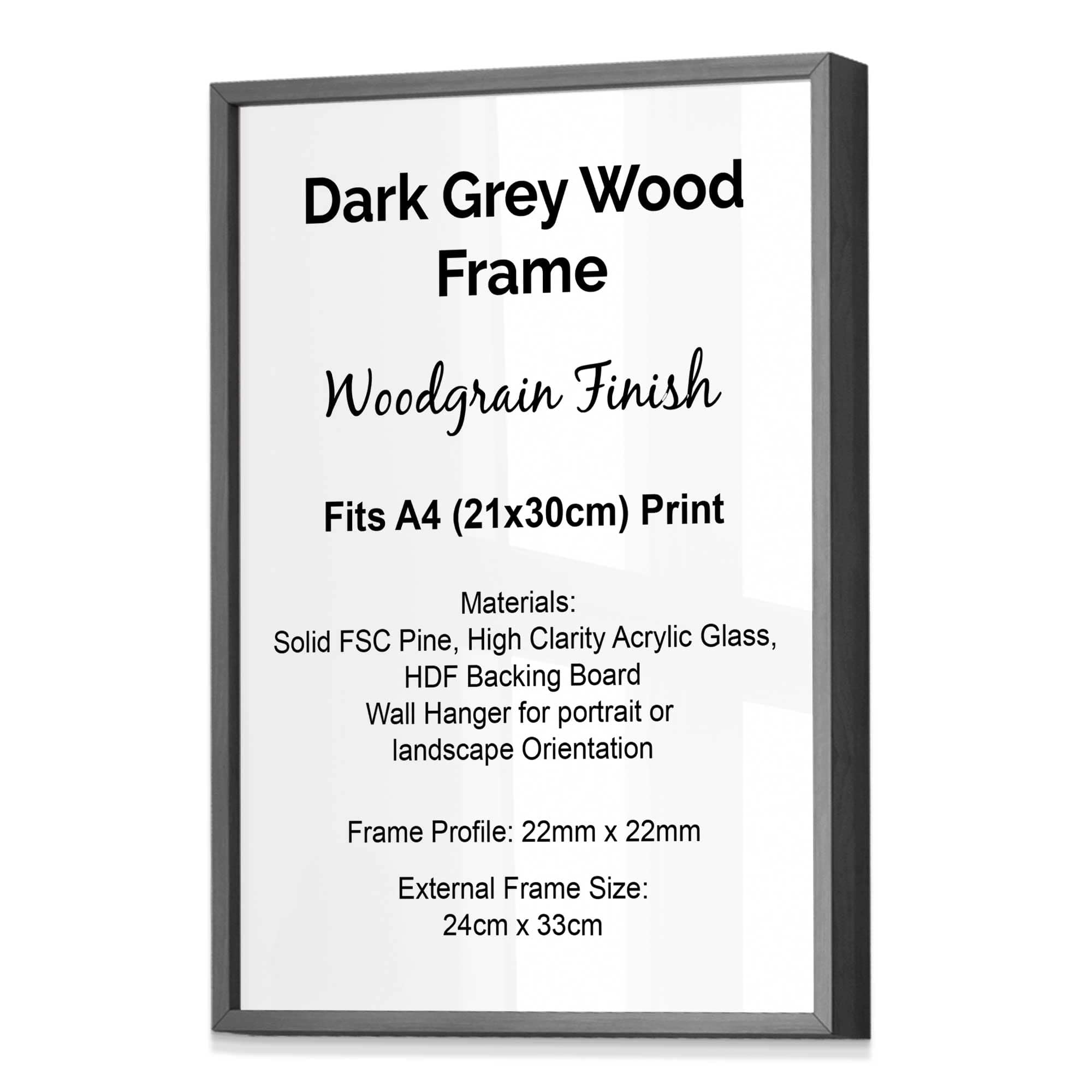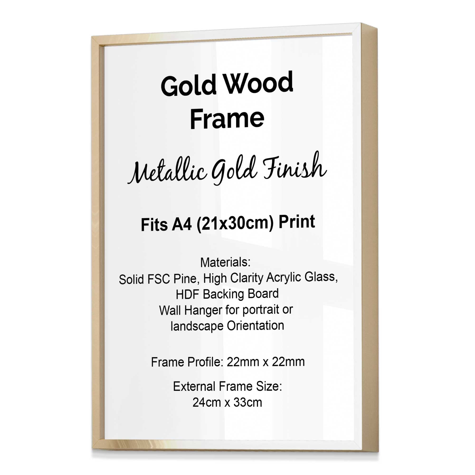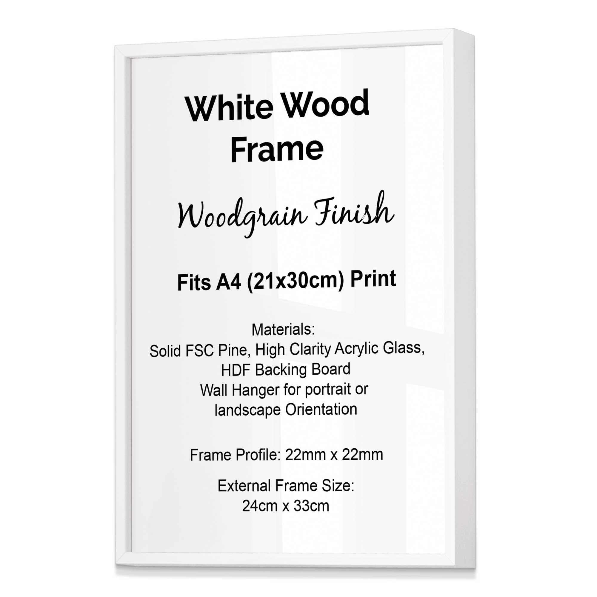 Artze Style Wood Frame fits A4 (21x30cm) Print, Available in Black, White, Dark Grey, Light Grey, Oak, Light Oak, Light Walnut, Dark Wood Metallic Gold and Brushed Silver.