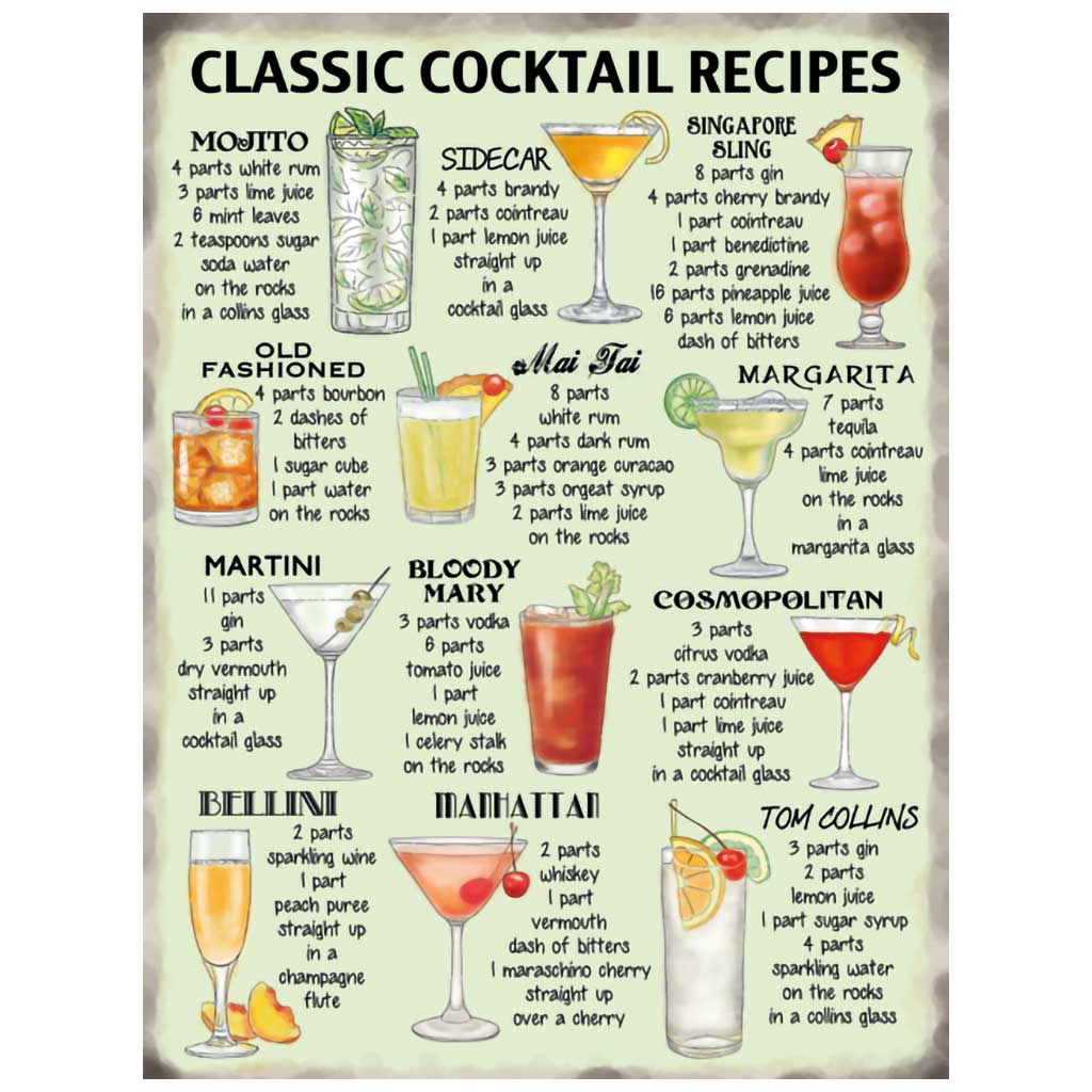 Covered with an array of delicious cocktails, this metal sign will be perfect in any bar!