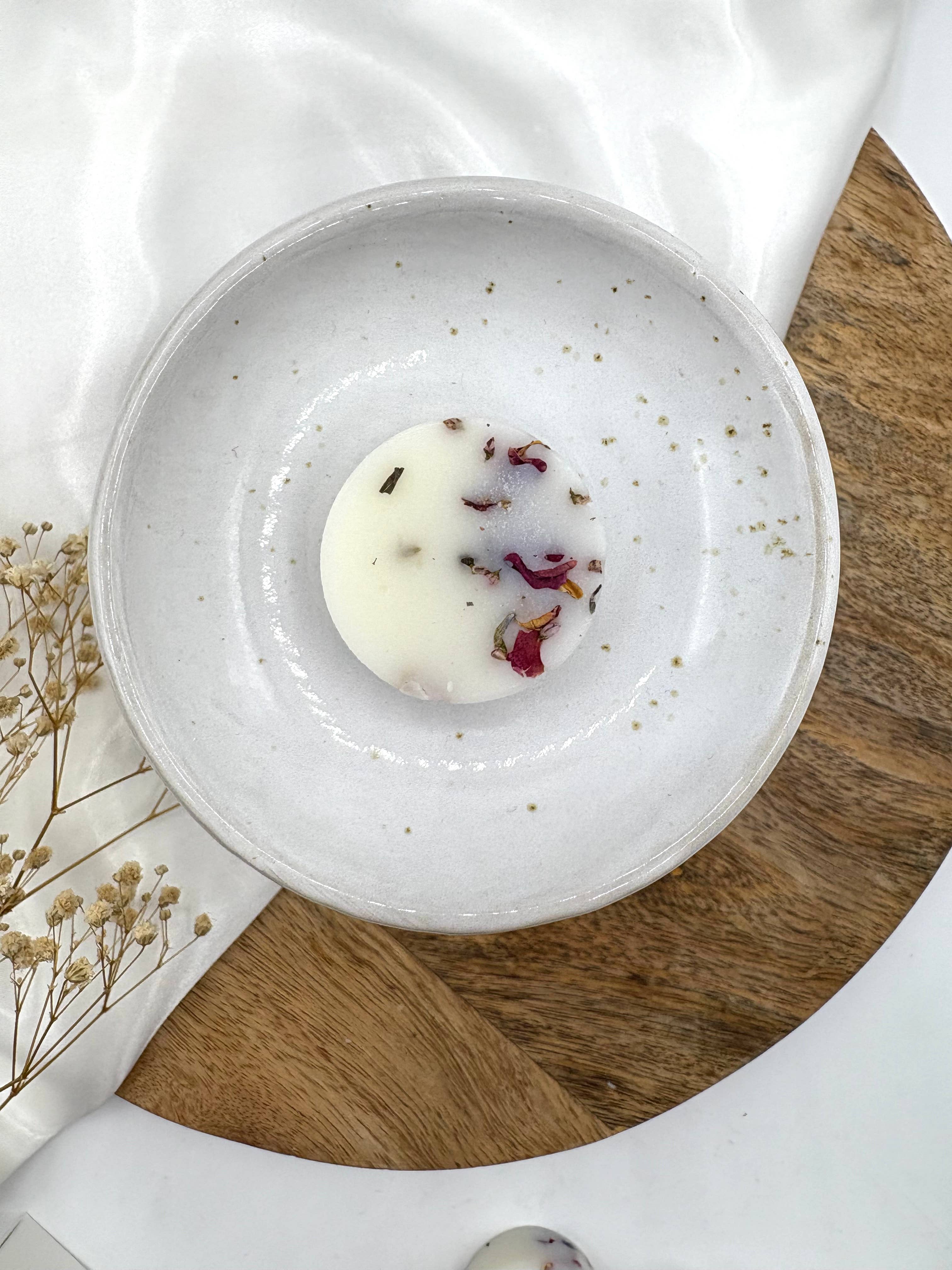 Step out of the cold and warm yourself up with our fabulous Fireside scented botanical wax melts! Crisp bergamot is warmed by floral spice on a comforting base of woods, creating the ultimate cosy fragrance. This fragrance is part of our Autumn/Winter collection. Our luxury match style boxes come nestled with 6 round shaped botanical wax melts. Each wax melt is perfectly handcrafted within our studio using natural coconut wax, high quality and long lasting fragrance oils and delicately decorated with dried botanicals. Perfect for gifting or a beautiful treat for yourself.
