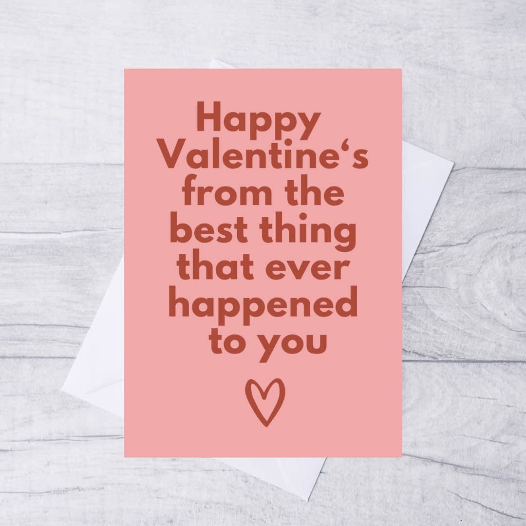 Show your love with this Happy Valentine's Day card, featuring a funny message from the best thing that ever happened to you!