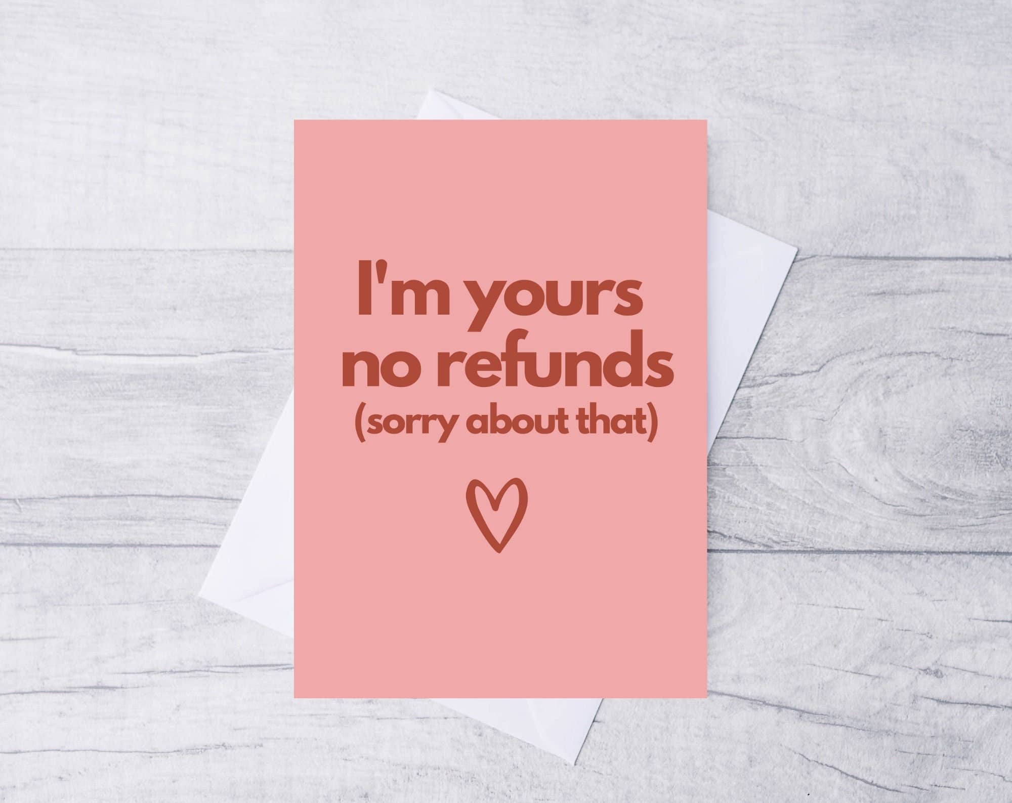 Surprise your loved one with the I'm Yours Funny Valentines / Anniversary Card! Show them your unwavering commitment with the playful message "I'm Yours, no refunds".