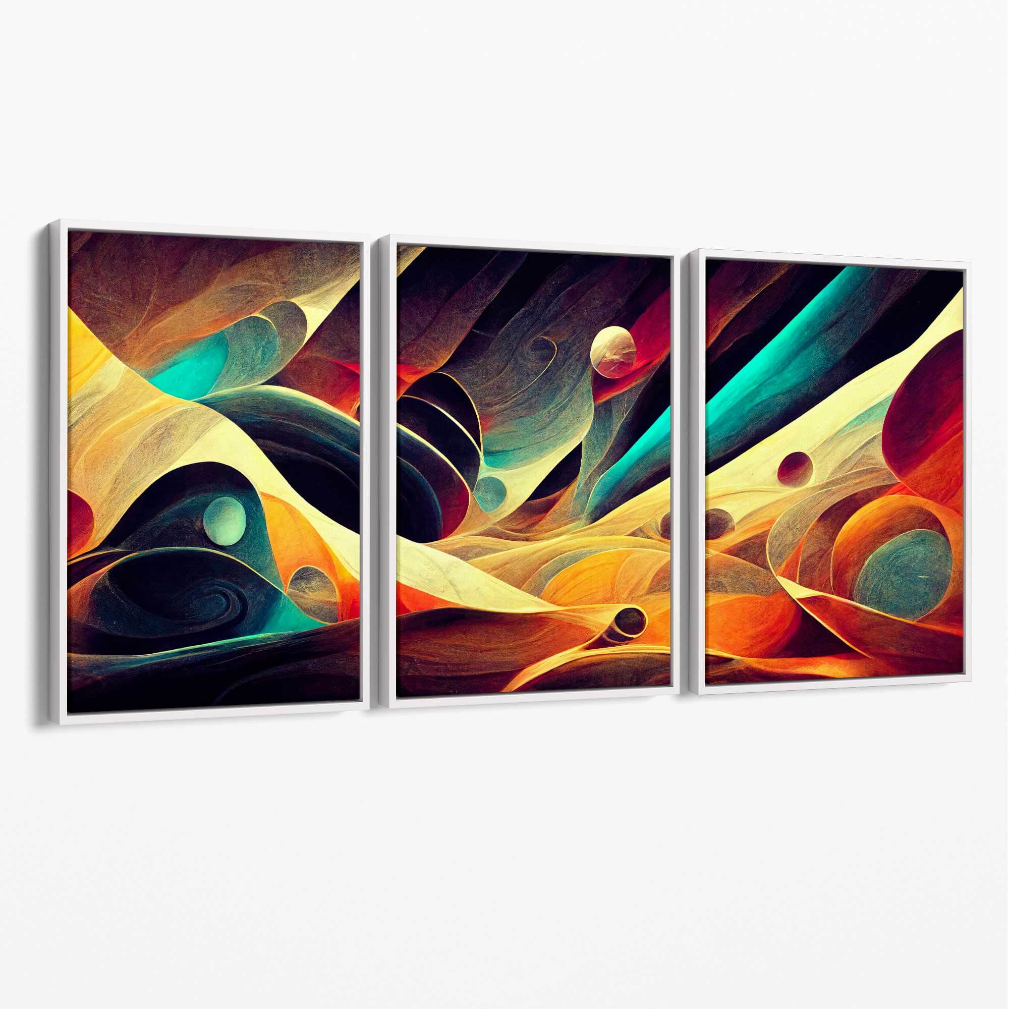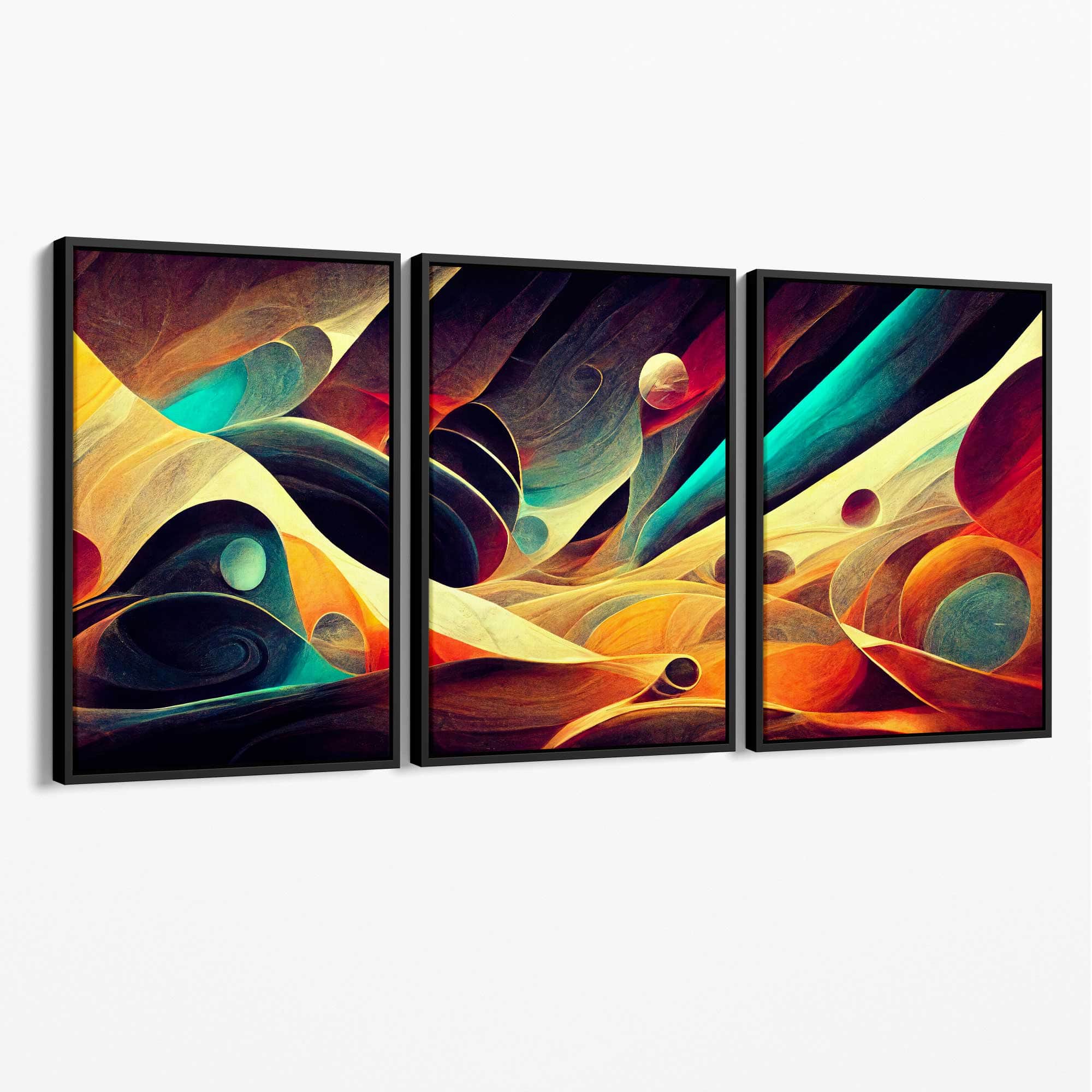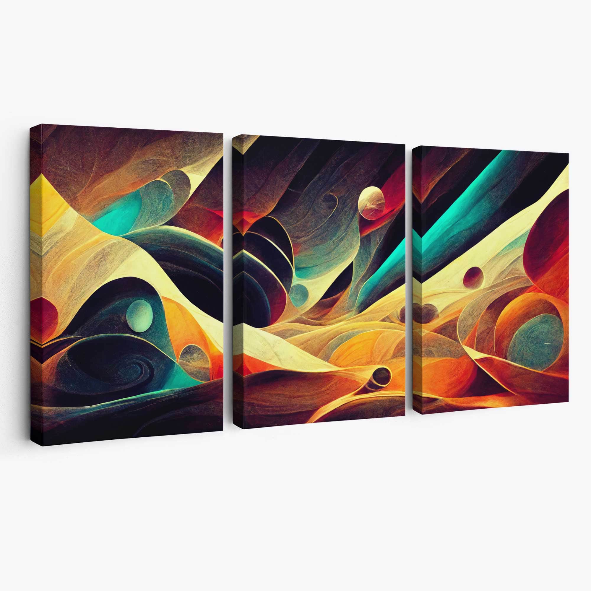 Set of 3 Geometric Orange Blue and Yellow Mars Canvas Wall Art
