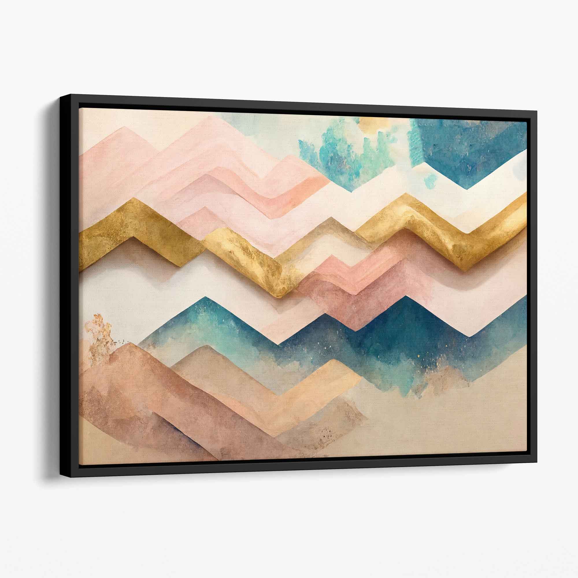 Transform your living space with our Herringbone Abstract Pink, Teal and Gold (Not Foil) Canvas Print! With its vibrant colors and unique herringbone pattern, this print will add a touch of elegance and energy to any room. Elevate your home decor and be inspired every day!