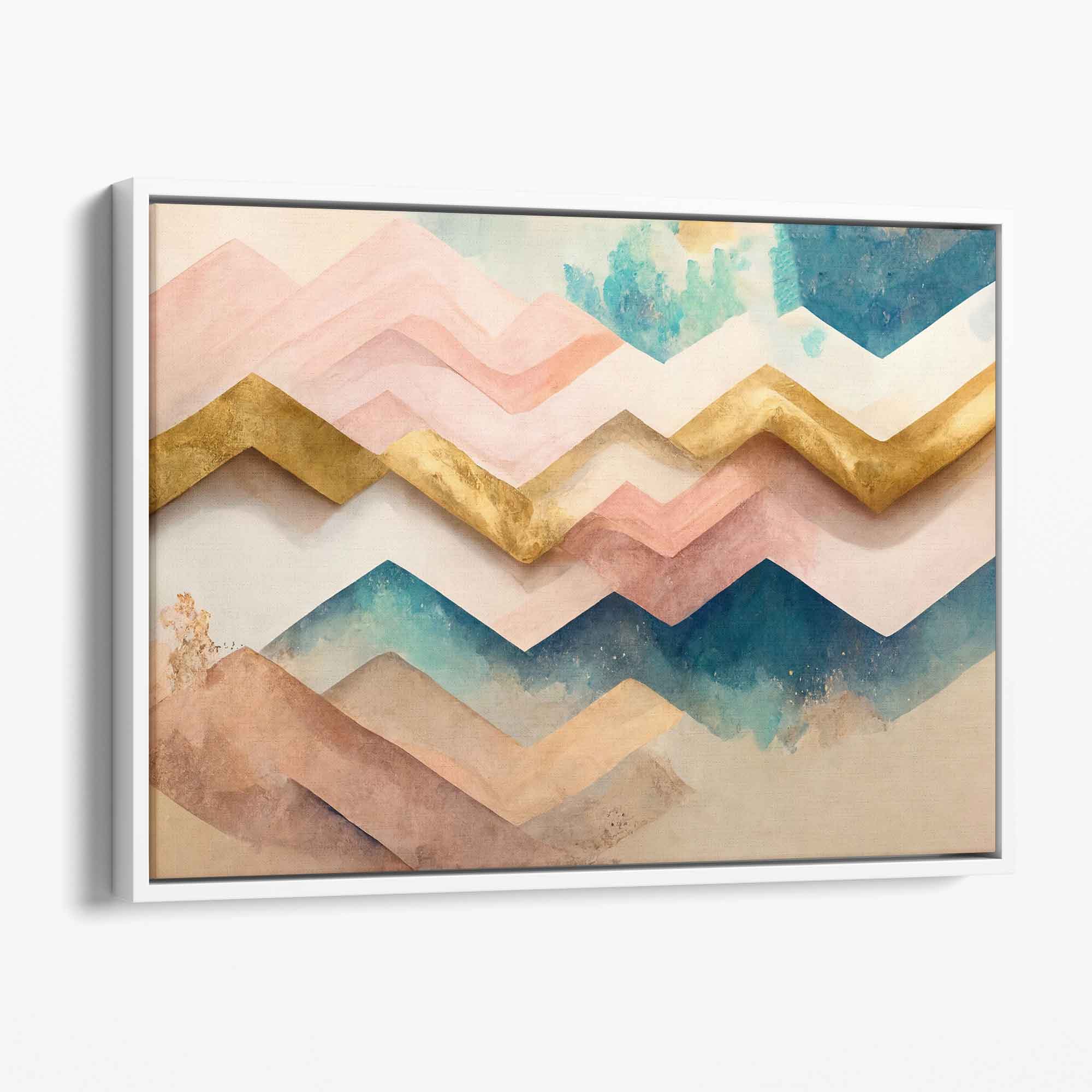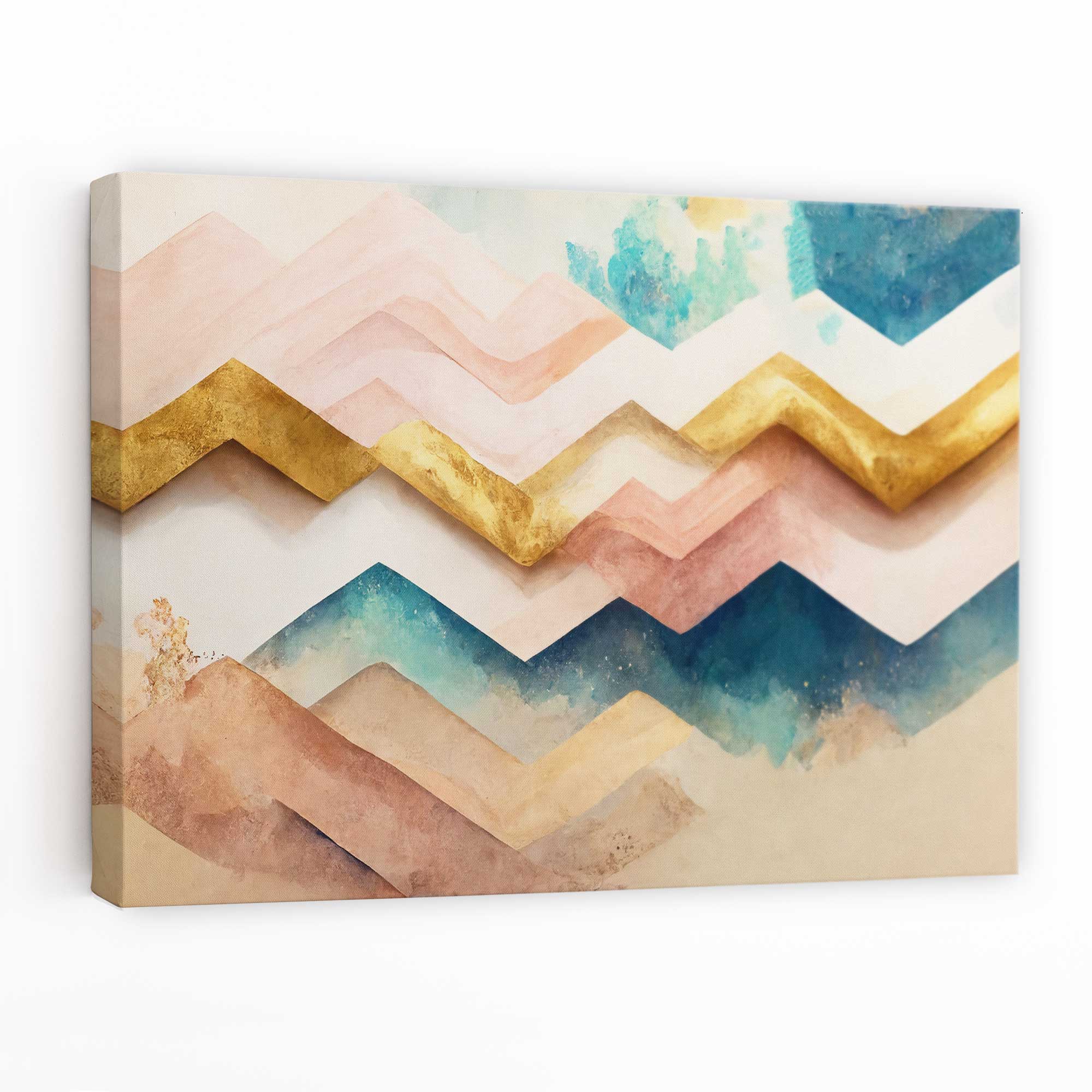 Herringbone Abstract Pink,Teal and Gold Canvas Print