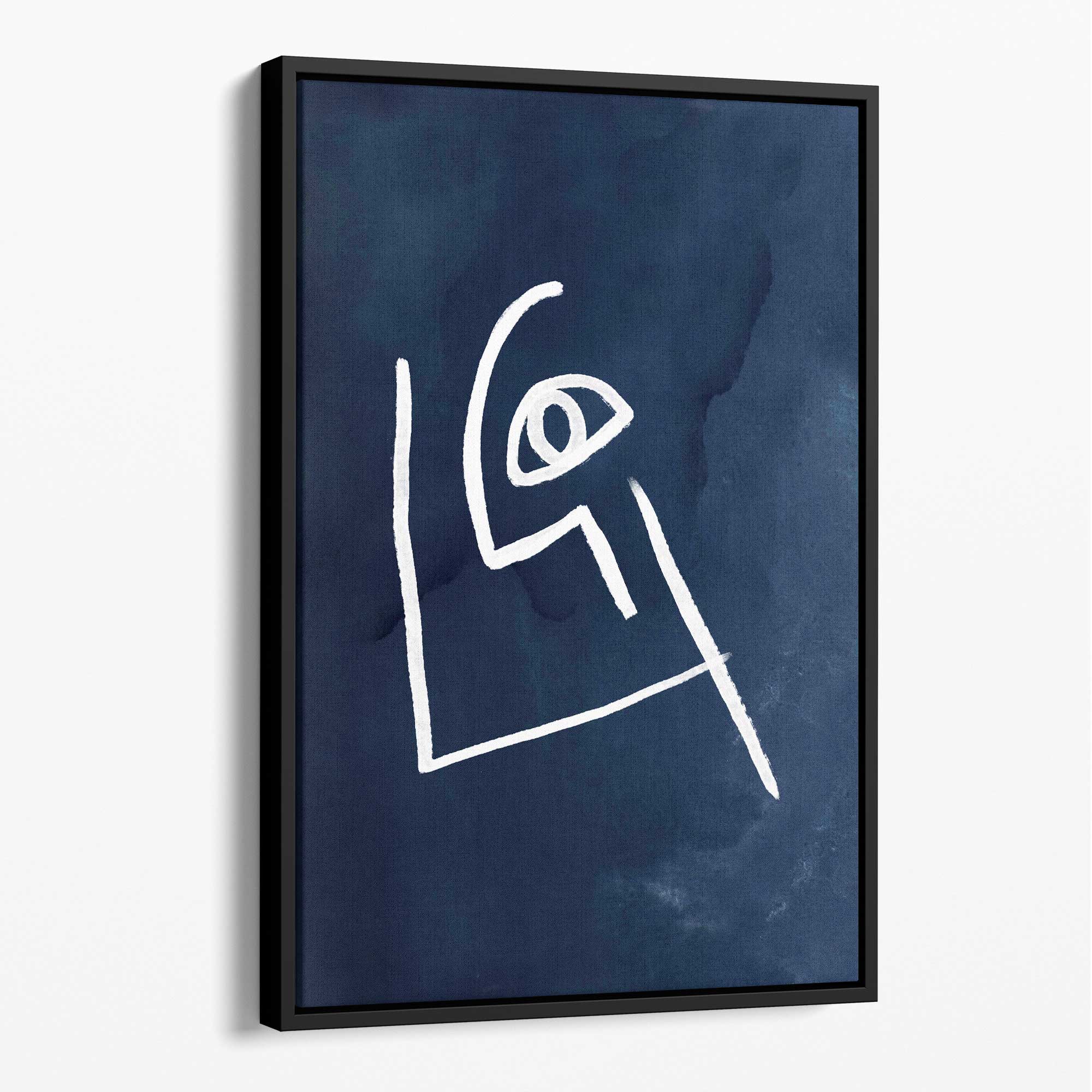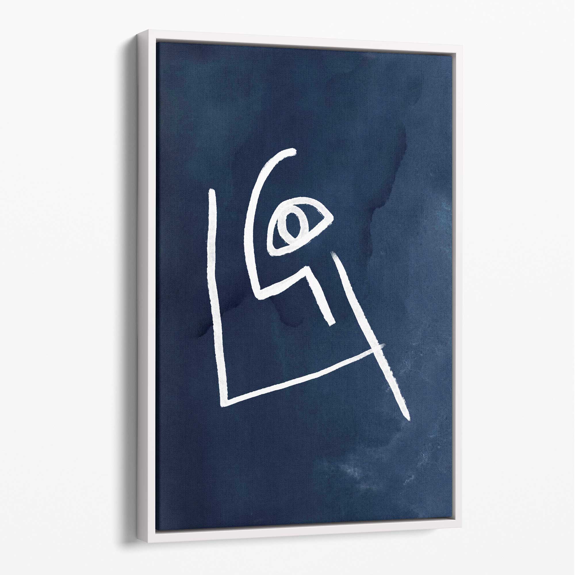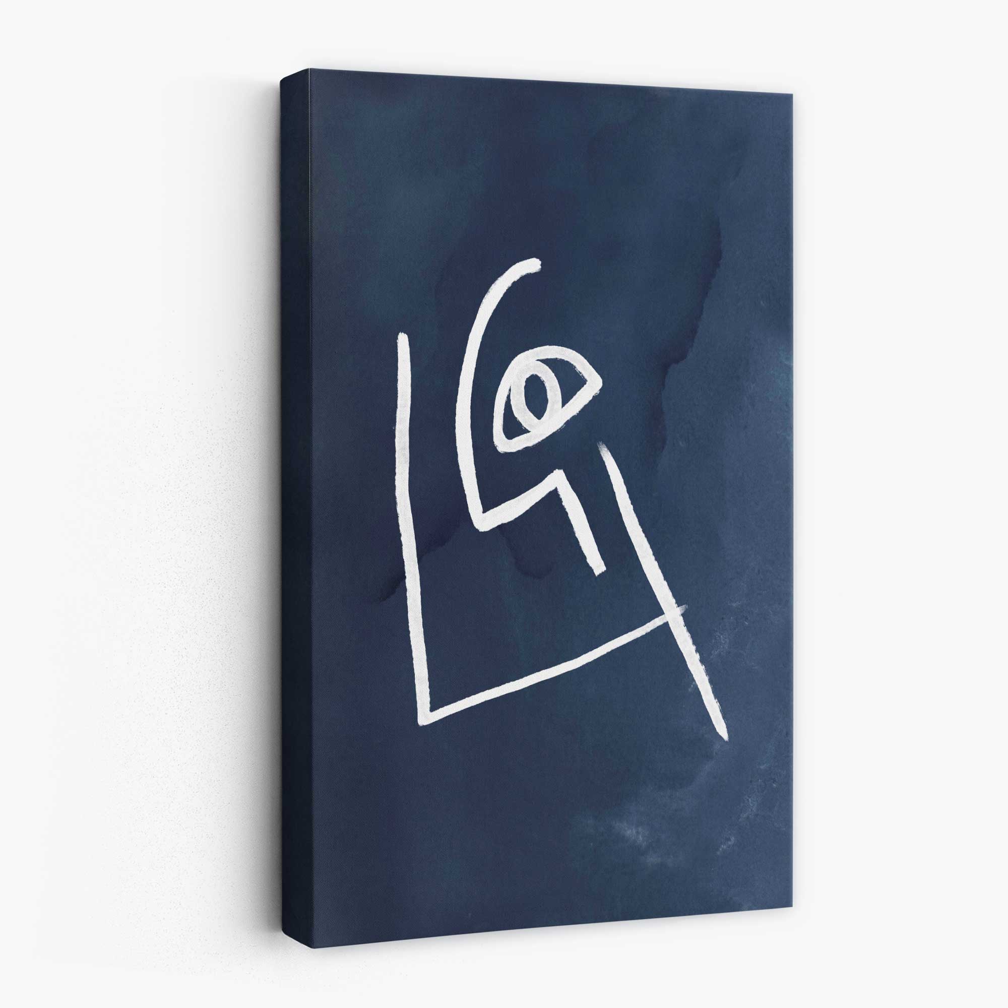 Navy Blue and White Abstract Line Art Face Canvas No 3