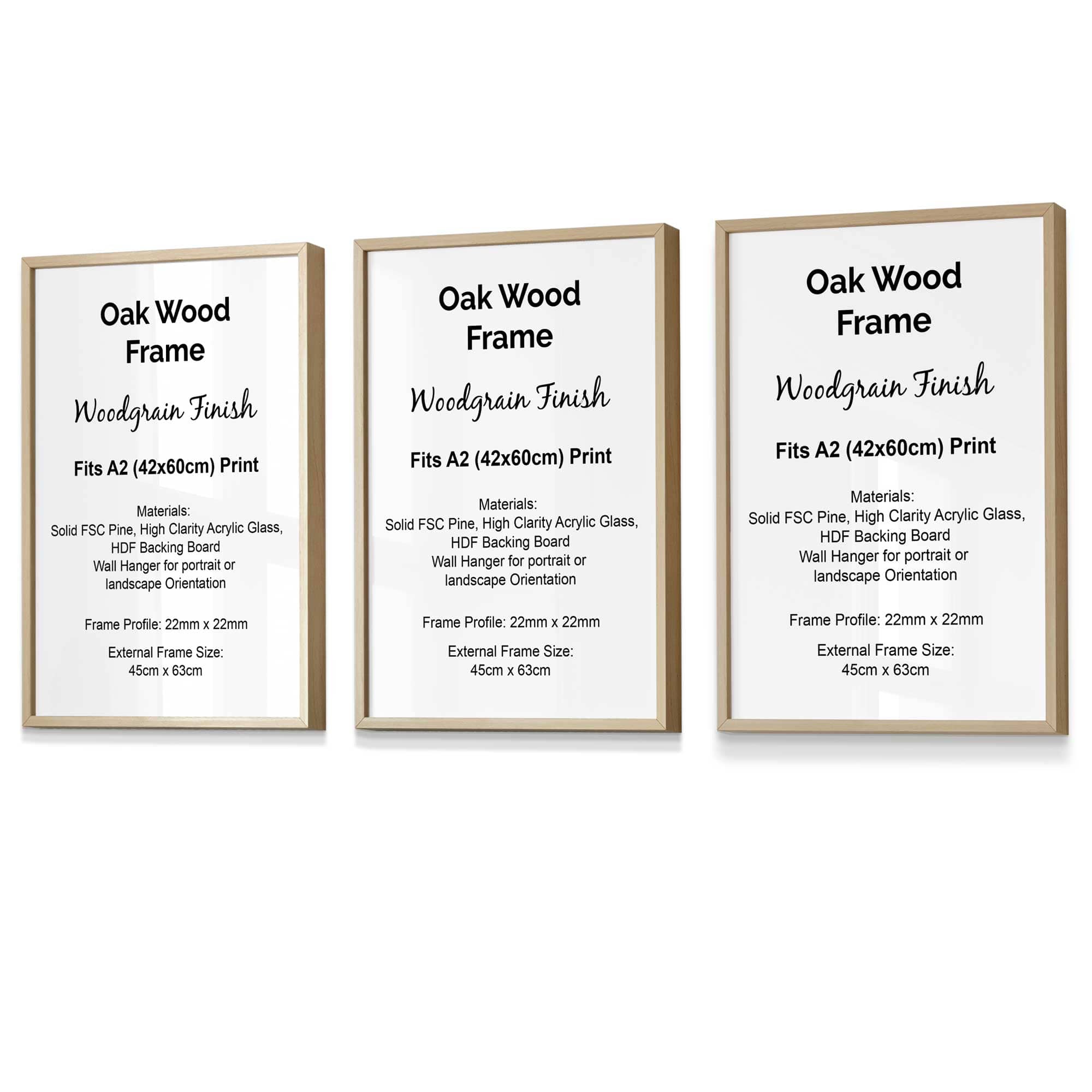 Set of 3 Style Wood Frame Size A2