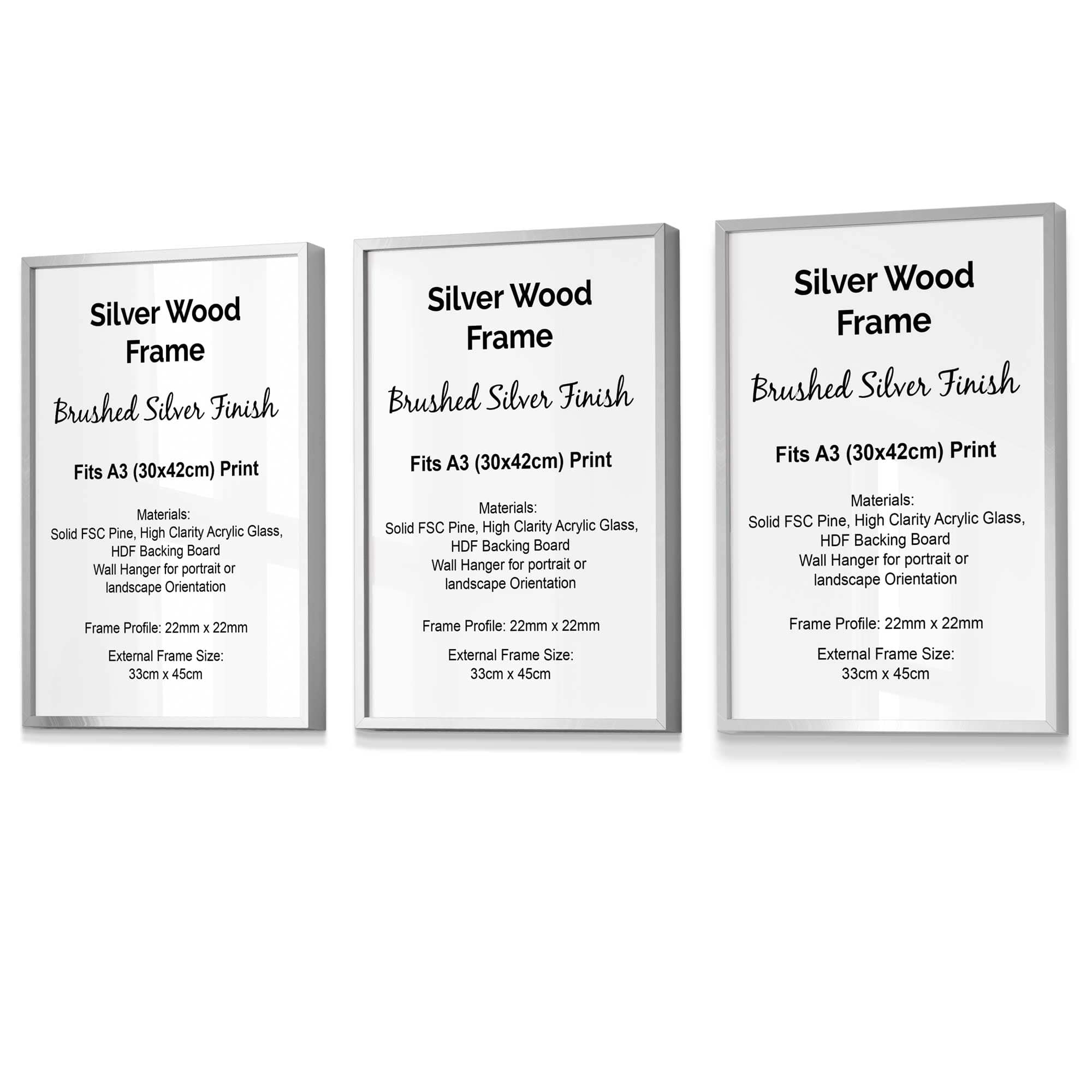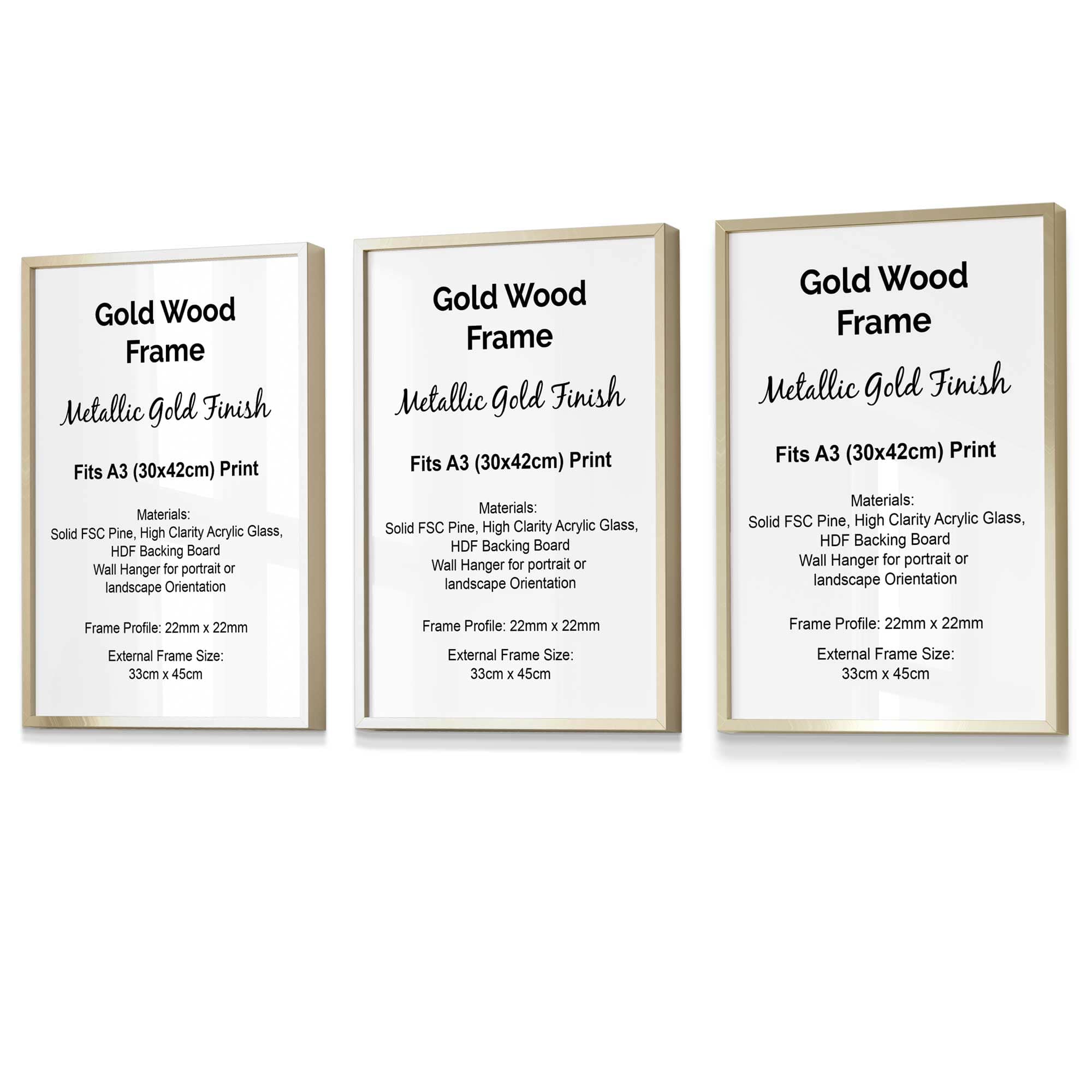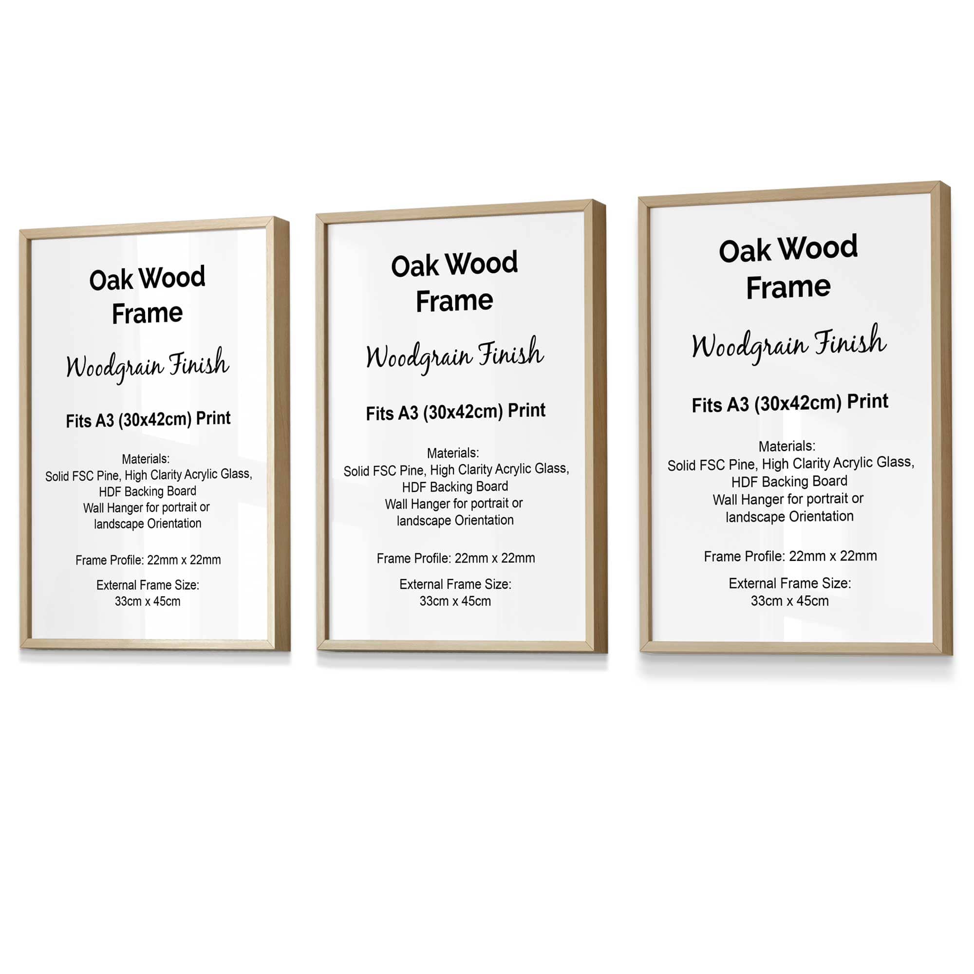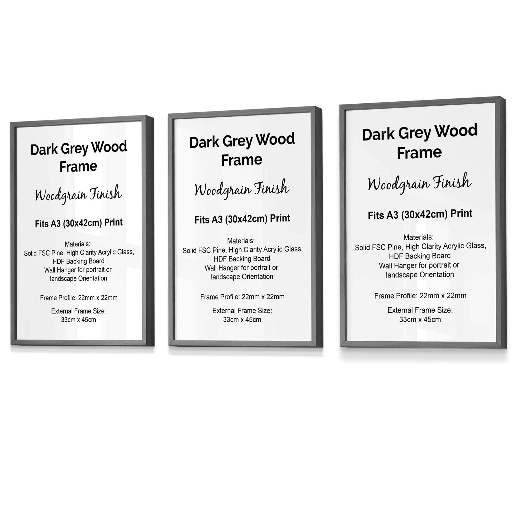 Artze Style Wood Frame fits, A3 (30x42cm) Print, Available in Black, White, Dark Grey, Light Grey, Oak Effect, Metallic Gold and Brushed Silver.