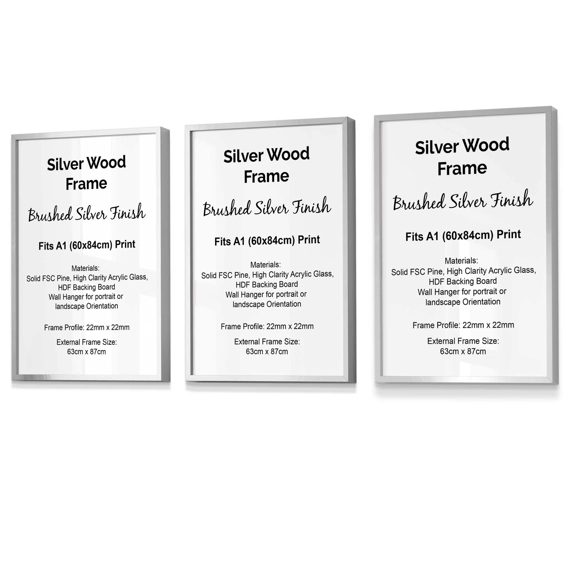 Set of 3 Style Wood Frame Size A1