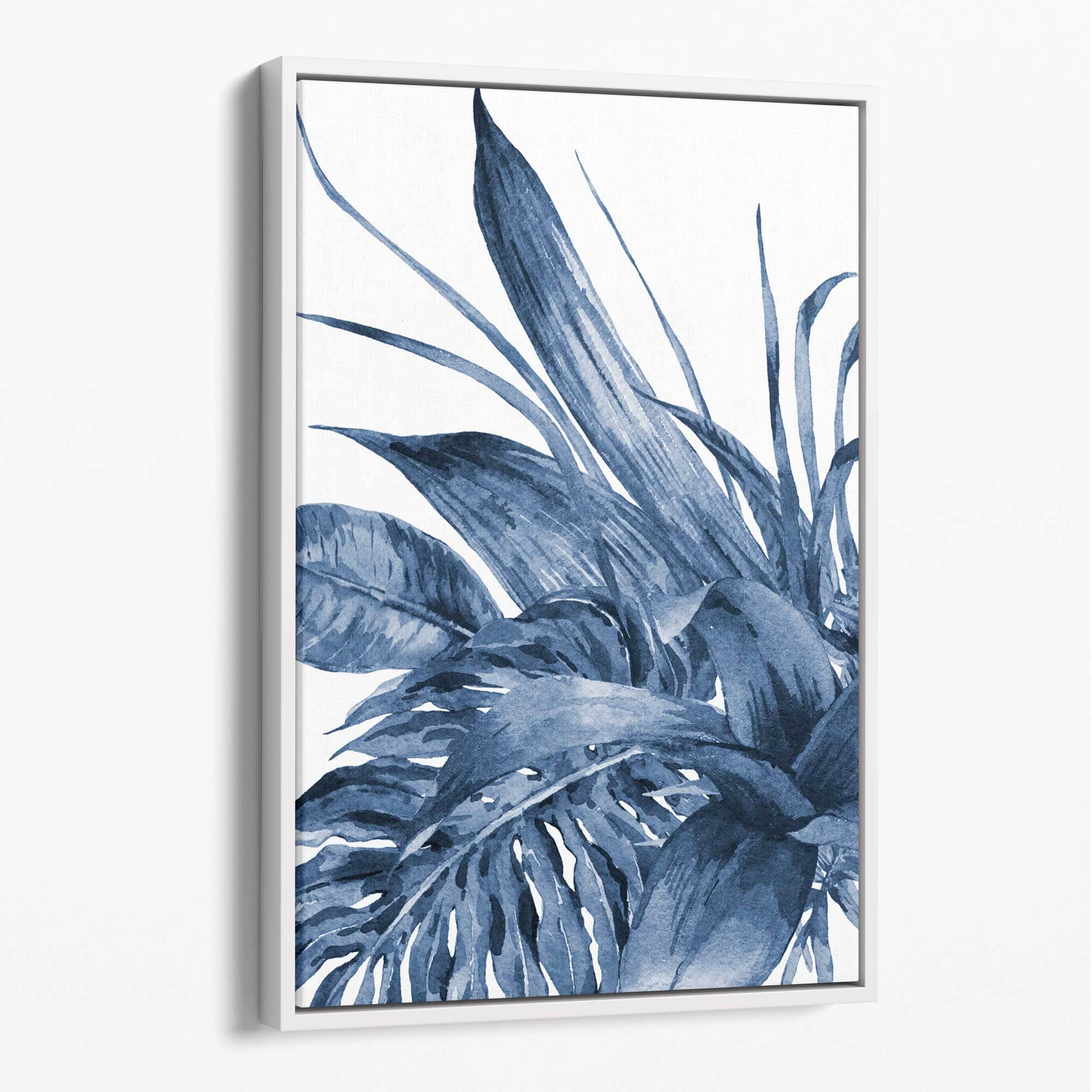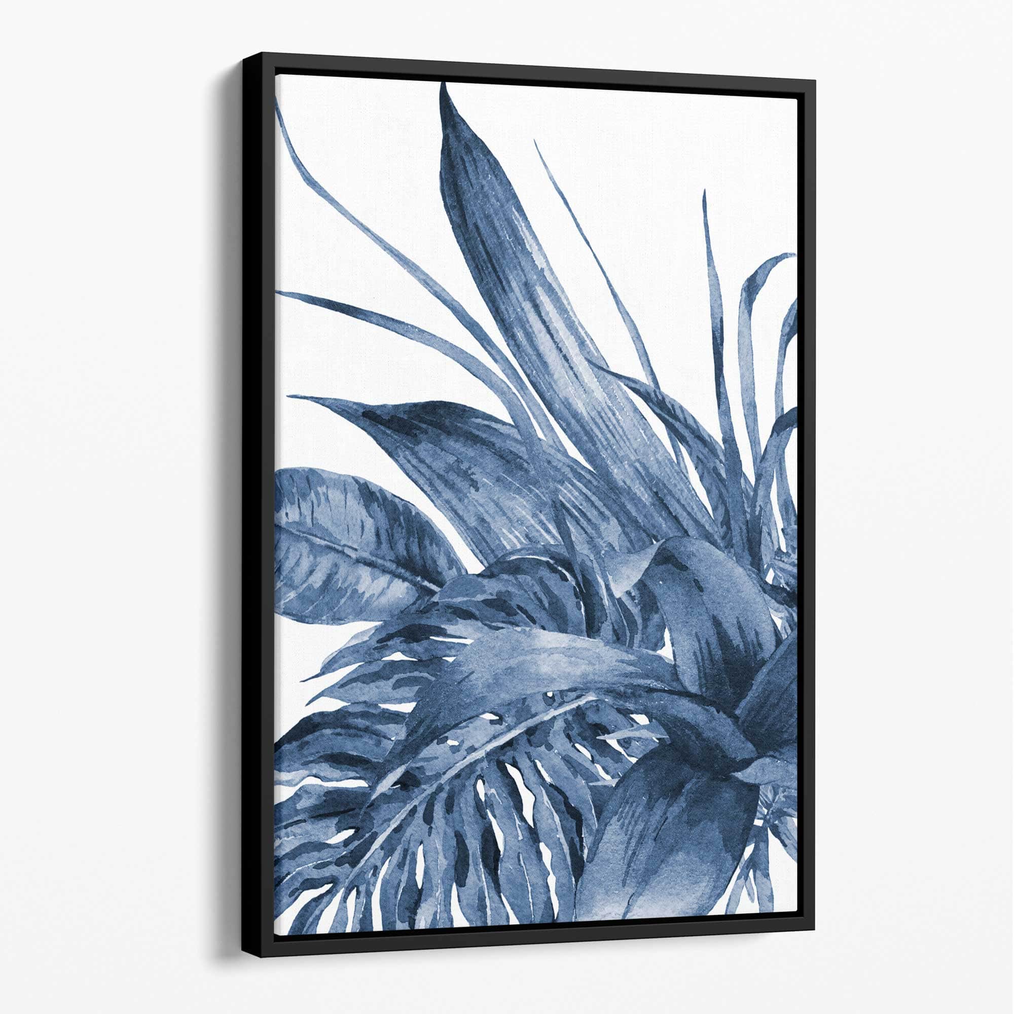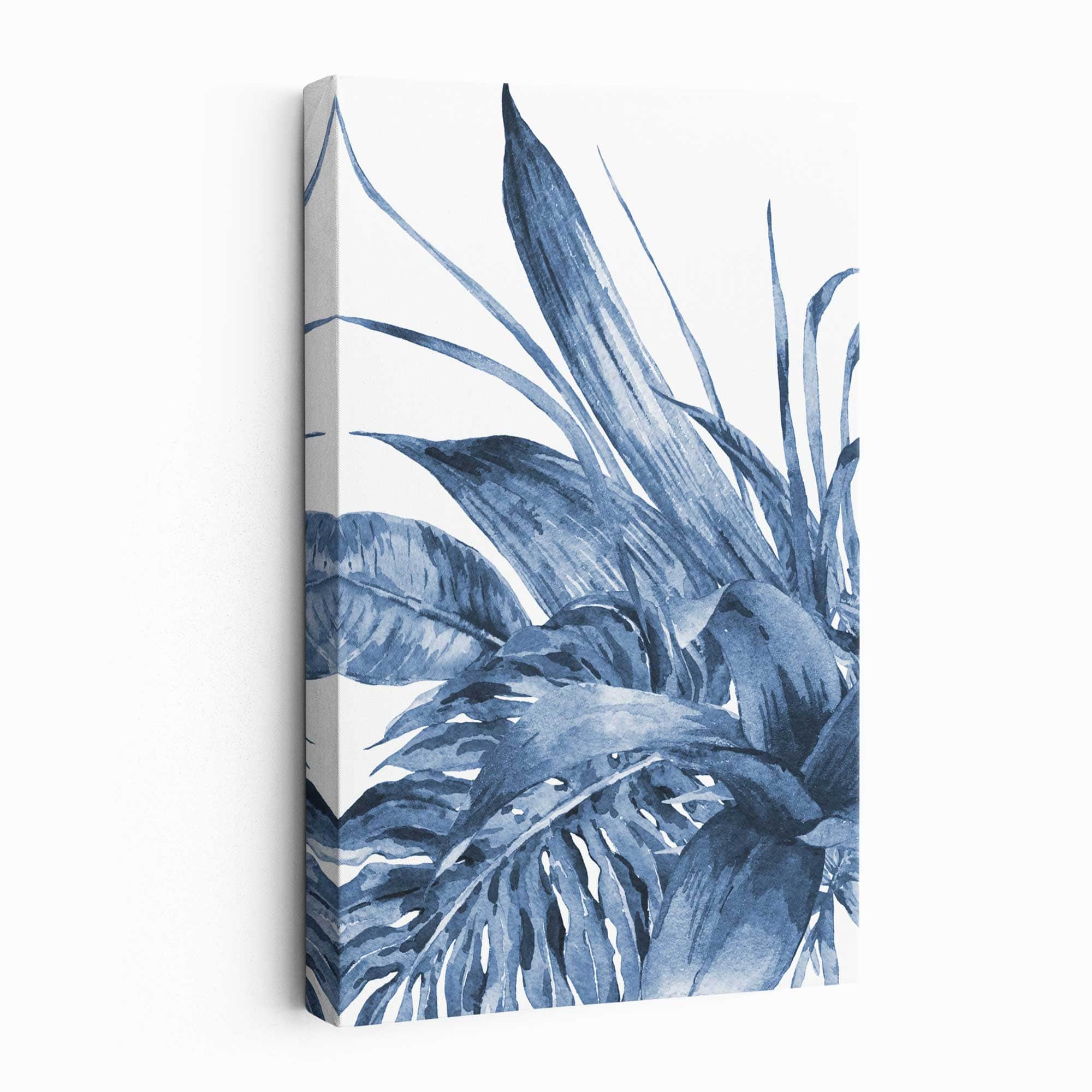 Navy Blue Tropical Leaves Abstract Canvas Print
