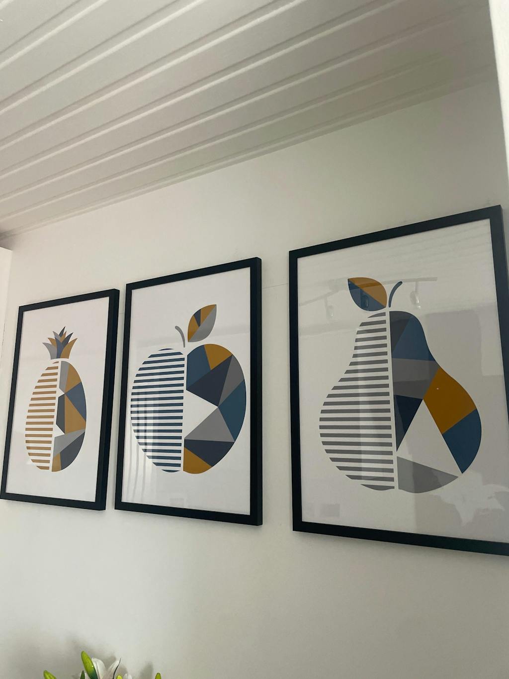 Set of 3 Blue & Yellow Geometric Fruit Framed Prints
