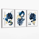Part of our Abstract Botanical & Floral Collection, this Set of 3 Canvas Wall Art Prints boasts graceful navy Watercolour Floral and Botanical Elements set against grey, blue and gold (non-foil) textured backgrounds. It's the perfect way to infuse your interior with Boho, Modern or Minimalist style.