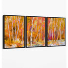 Part of our Abstract Triptych Collection, this Set of 3 Canvas Wall Art features three panels from an original mixed media painting titled " Autumn Trees" in shades of Orange, Yellow and Pink.