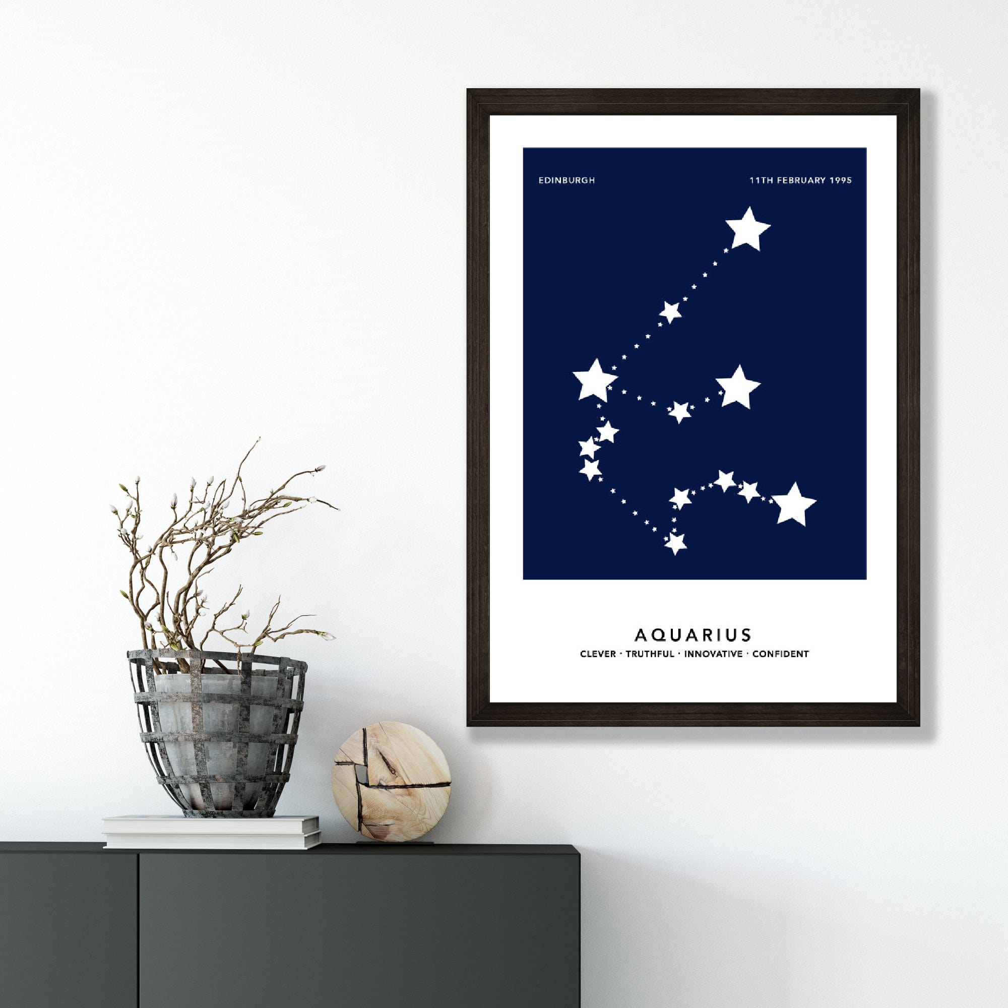 Bring your star sign to life with a stunning Aquarius print! Immerse yourself in a star-studded paradise and create a magical aura with this personalised Print. Transform any space into a captivating celestial dream!
