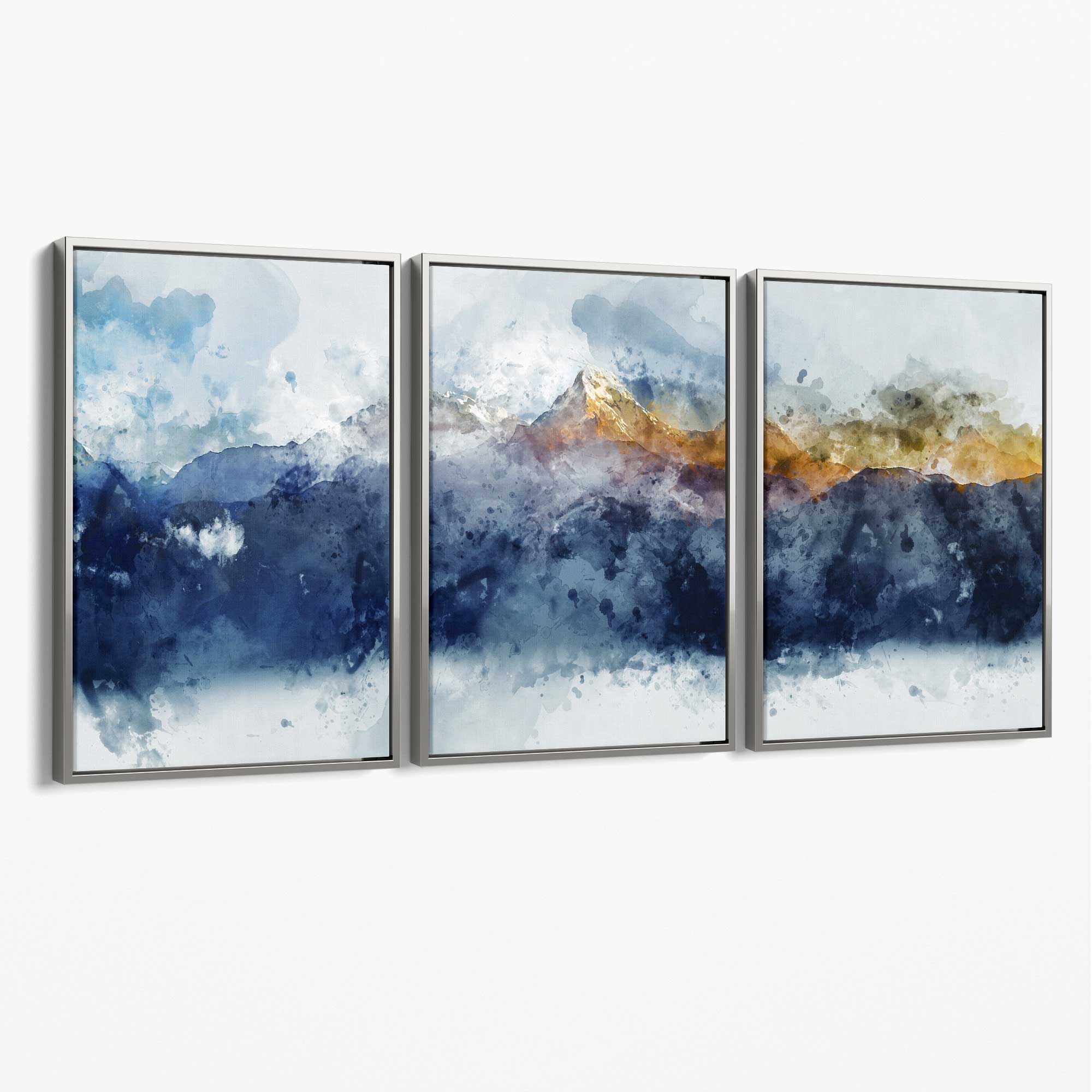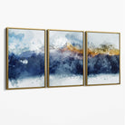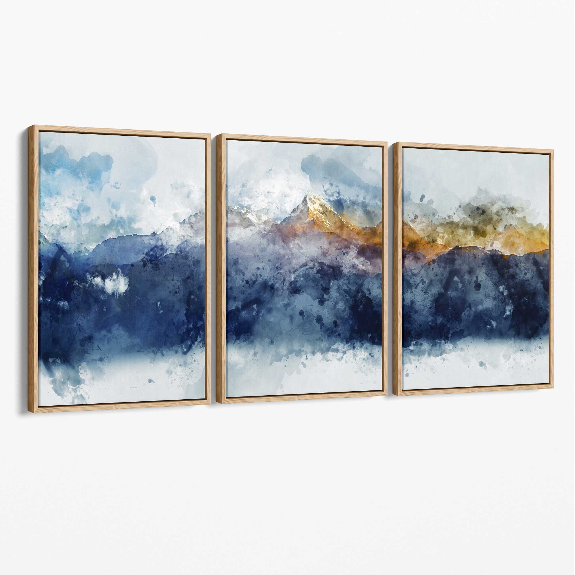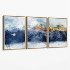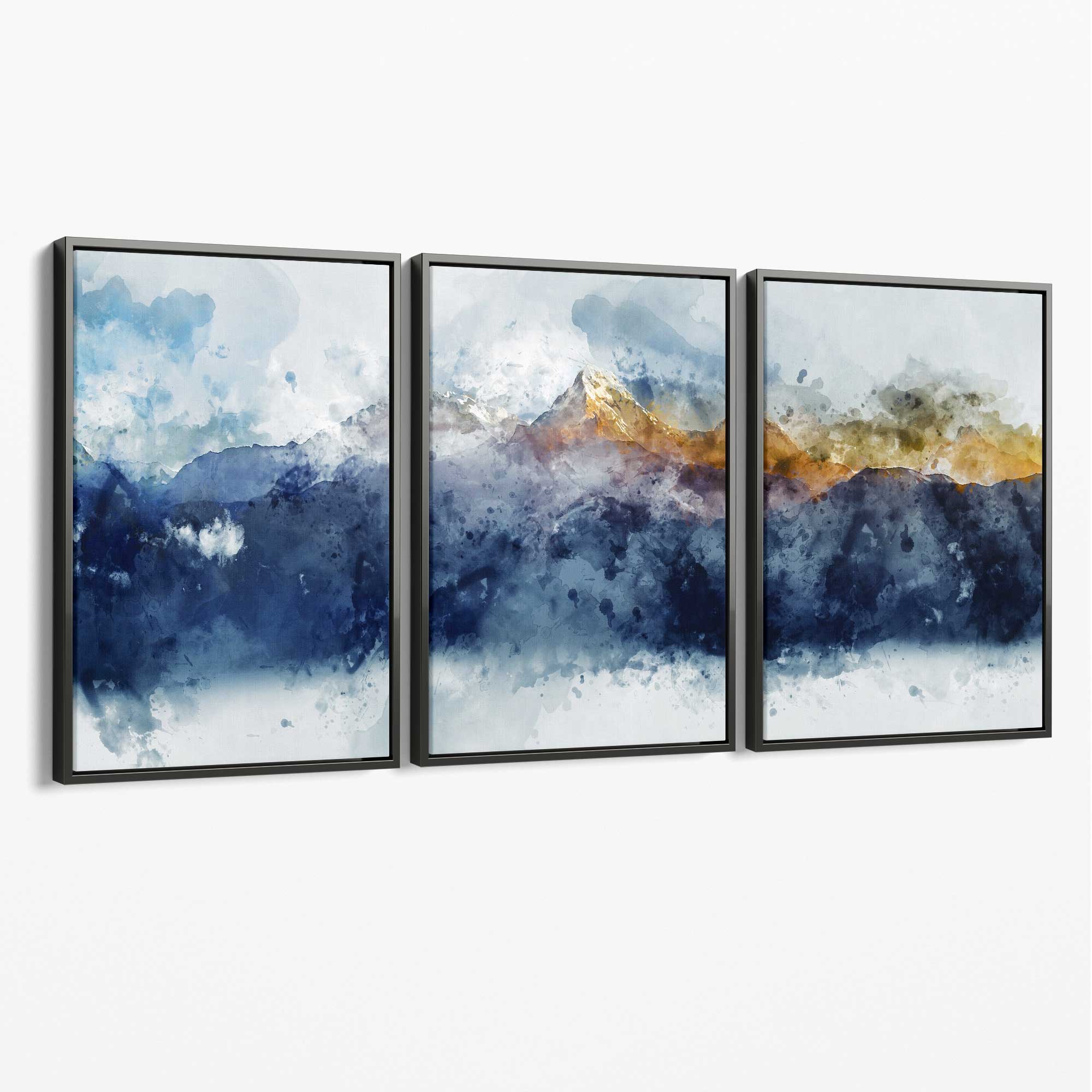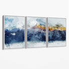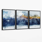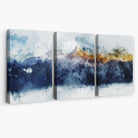 Part of our Abstract Watercolour Nature Series, this set of 3 Canvas Wall Art features Shades of Navy Blue and Yellow Alpine Mountains.
