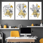 Add a touch of geometric charm to your walls with this set of 3 canvas wall art featuring a lion, giraffe, and elephant. The ochre yellow and grey color scheme, paired with black geometric animal heads, will add a modern and stylish touch to any room. Elevate your decor with this unique and eye-catching set!