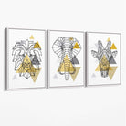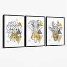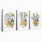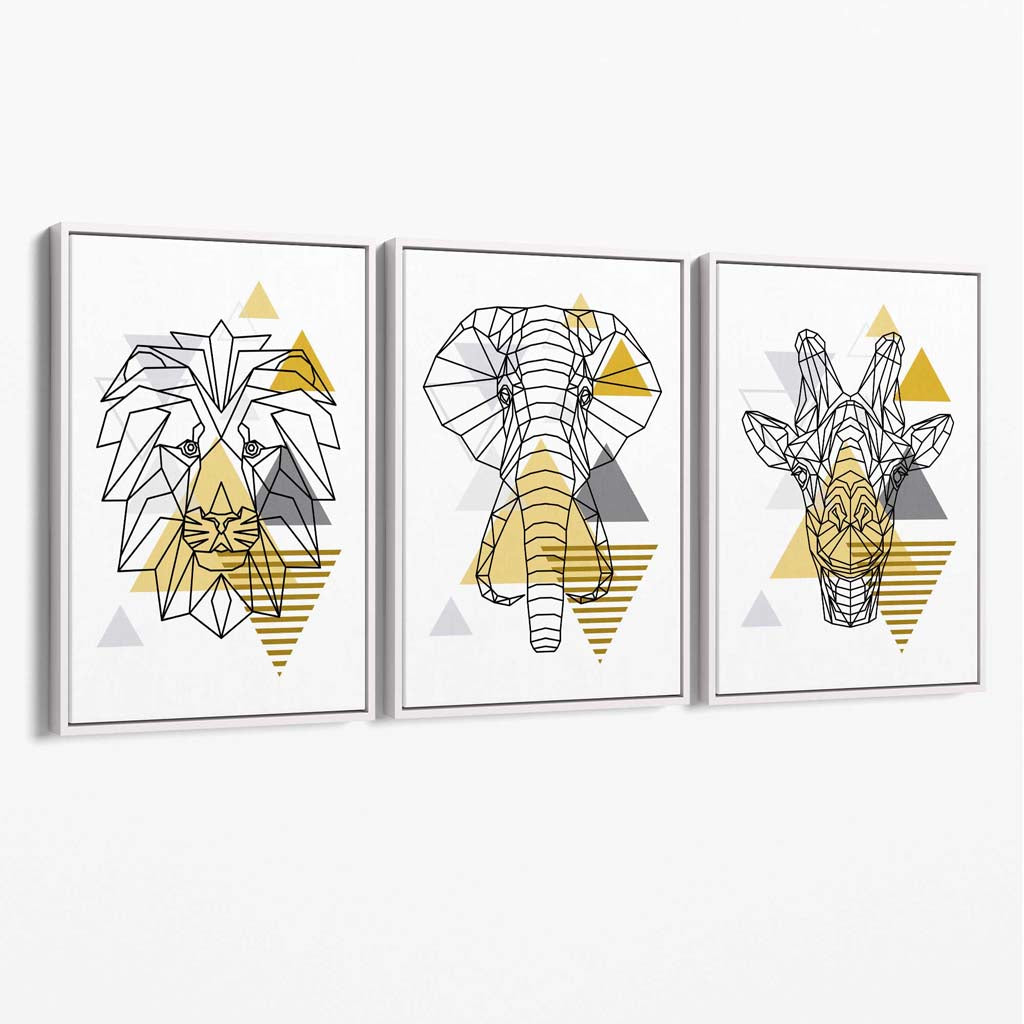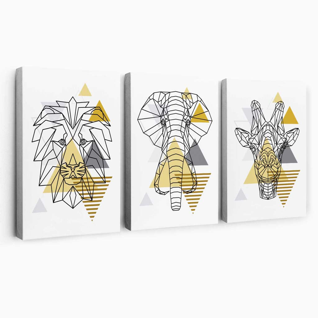 Geometric Lion Giraffe Elephant Set of 3 Canvas Wall Art