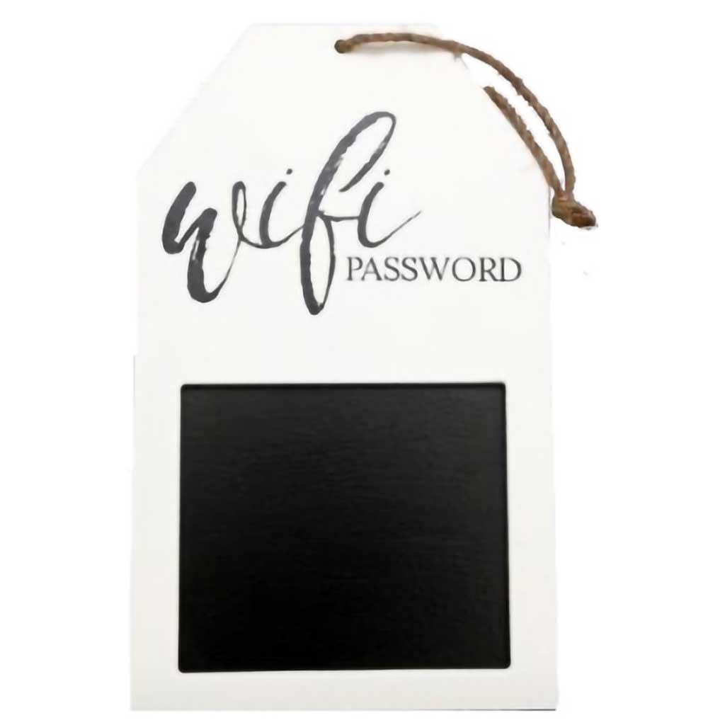 Set with a chunky rope hanger, script 'Wifi Password' text and fitted blackboard, this wooden hanger will place perfectly in any home space!