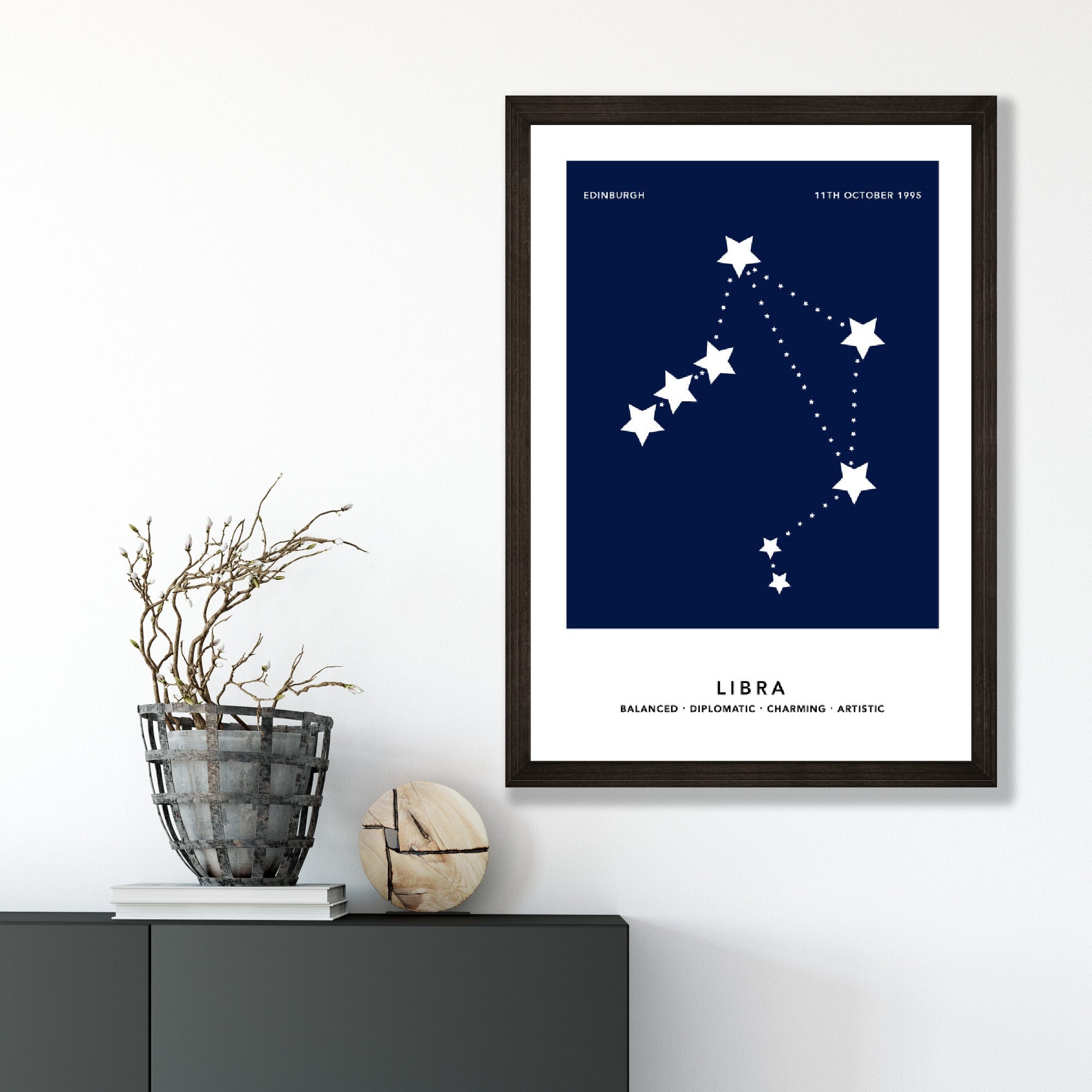 Transform any room into a star-speckled paradise with a gorgeous Libra art print! Celebrate your zodiac sign with vibrant colors and create a captivating, celestial atmosphere in your home.