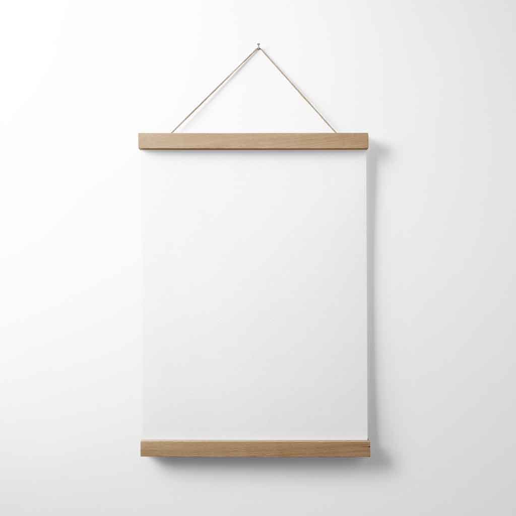 SOLID OAK POSTER HANGER WITH MAGNET FASTENING, 53 cm . This poster hanger has a smart magnetic design, which holds the poster firmly without damaging it.