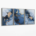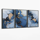 Set of 3 Abstract Art Prints of Paintings Navy Blue and Gold on Canvas