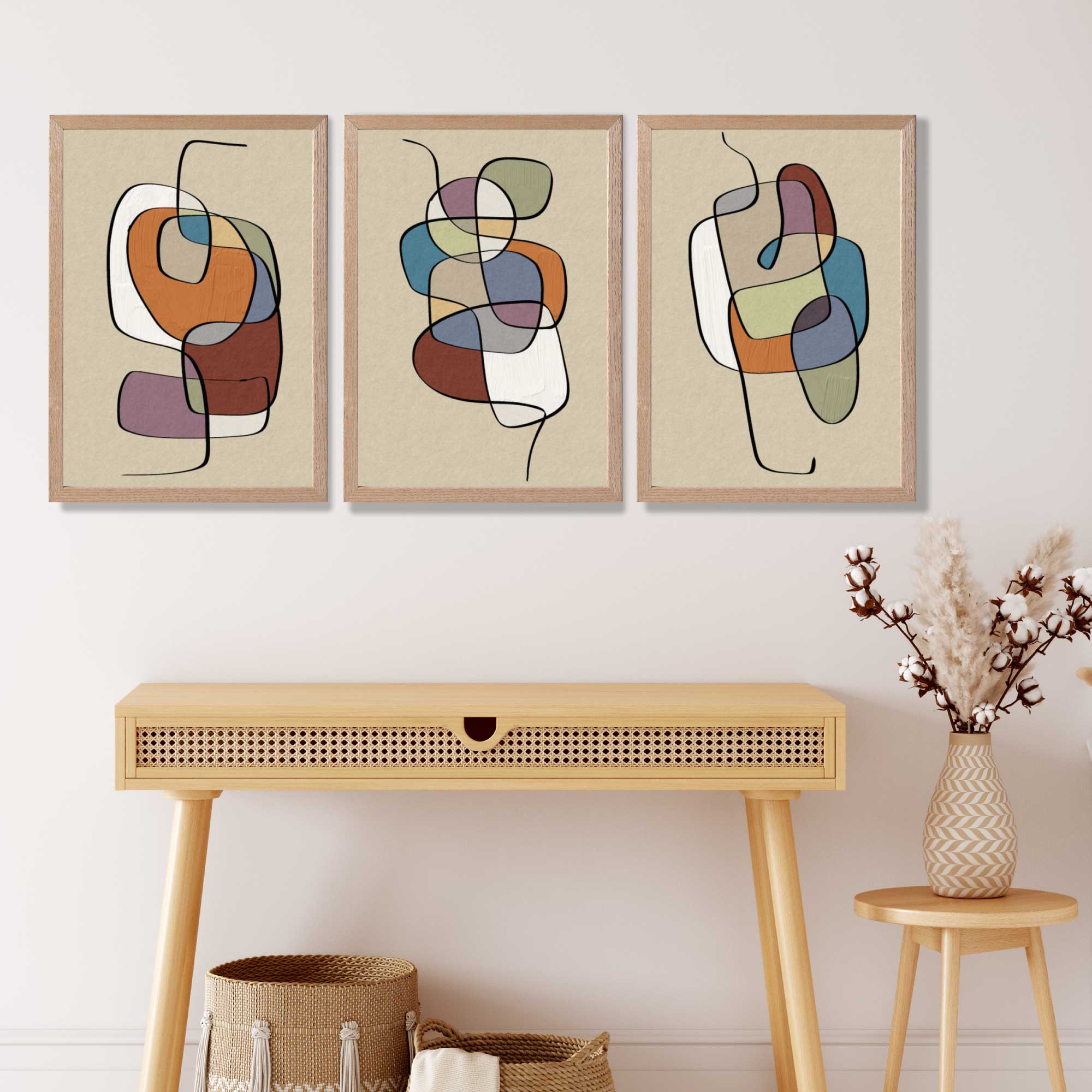 Infuse your space with dynamic energy through this striking set of three abstract art prints. Each piece features a captivating blend of warm beige and vibrant orange tones, creating visual movement that draws the eye and sparks conversation. Perfect for modern living rooms, home offices, or creative studios, these prints work beautifully as a cohesive gallery wall or displayed individually. The complementary colour palette brings warmth and sophistication to any interior, while the abstract design offers versatility to suit contemporary and eclectic décor styles. Transform your walls into a statement of artistic expression with this essential trio.