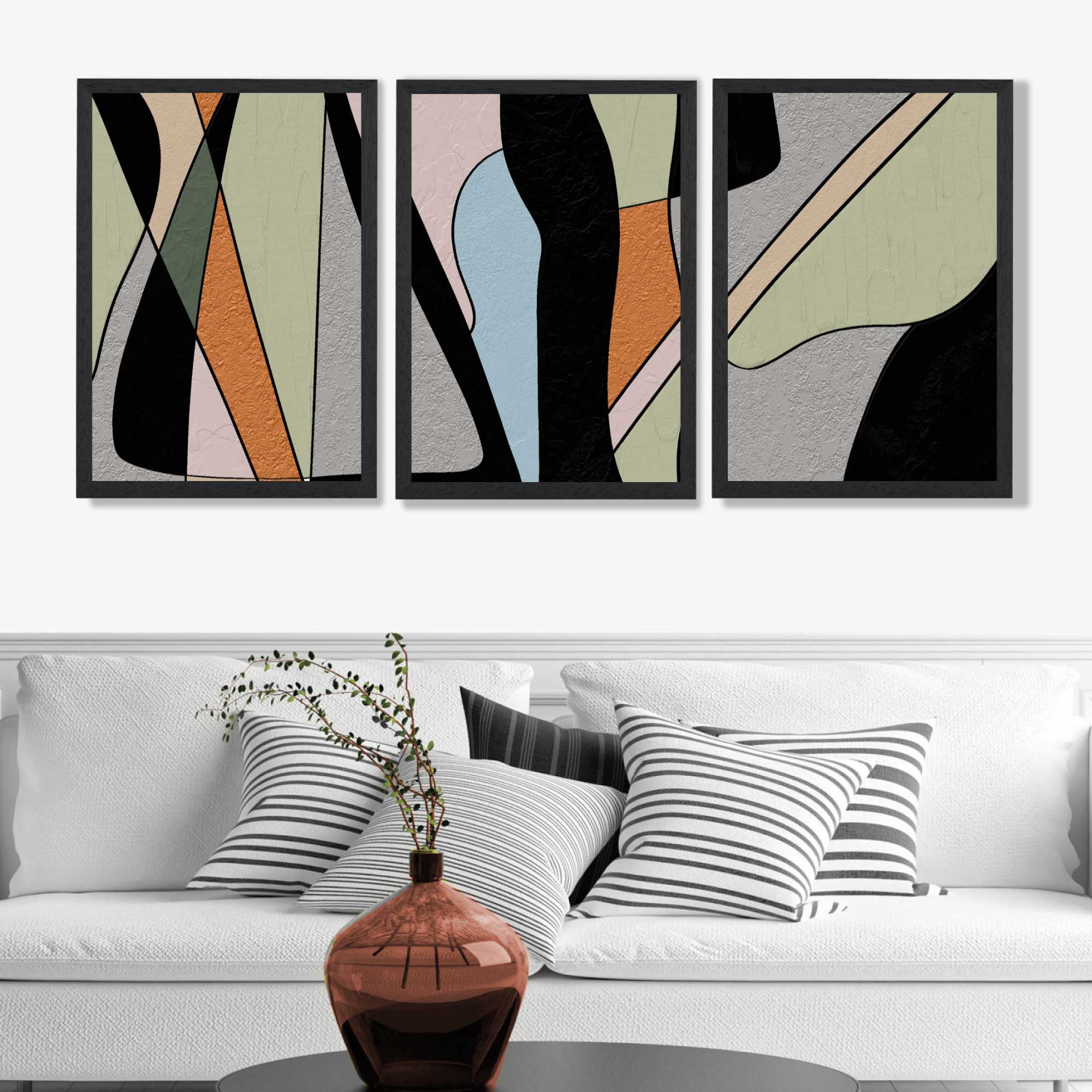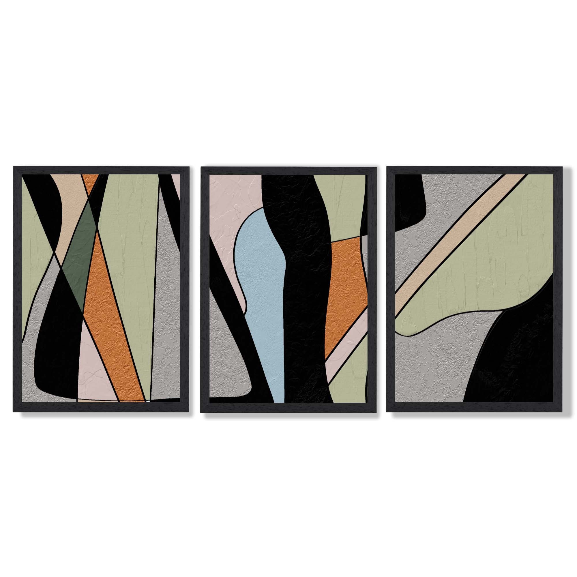 Set of 3 Abstract Black and Green Geometry Framed Art Prints