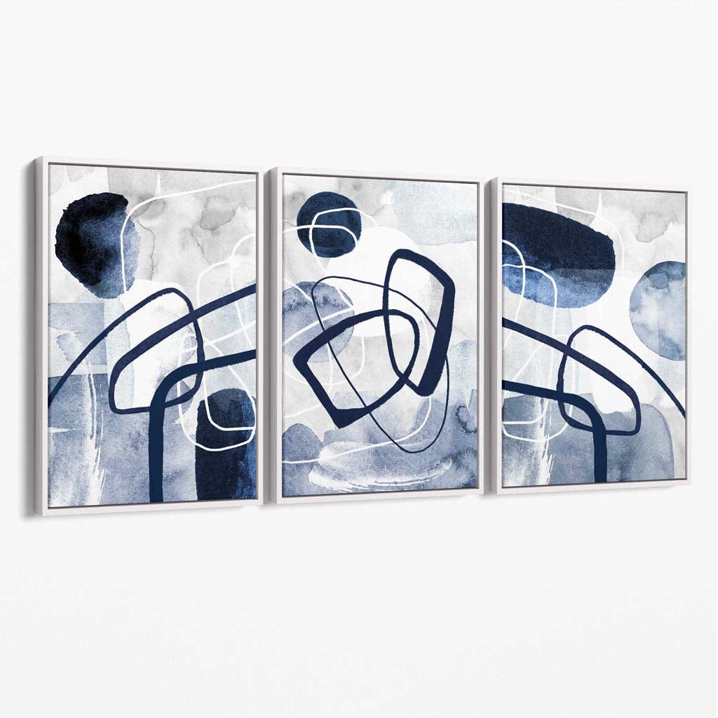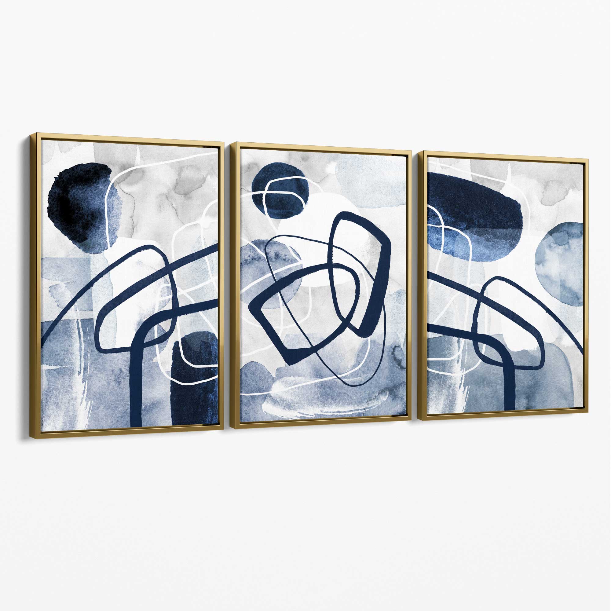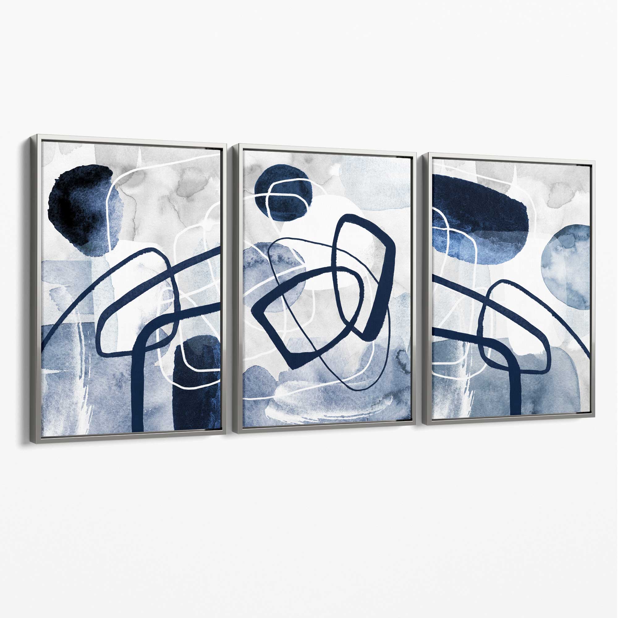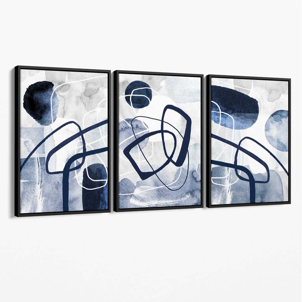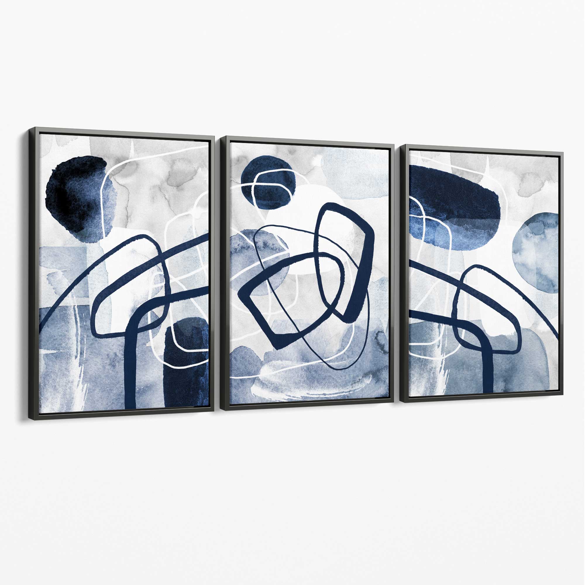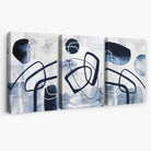 Set of 3 Abstract Navy Blue and Grey Watercolour Canvas