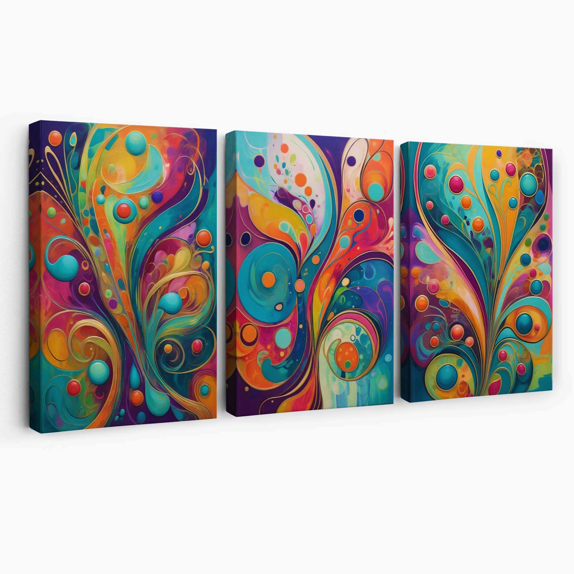 Set of 3 Art Deco Swirls in Bright Colours Canvas Art Prints