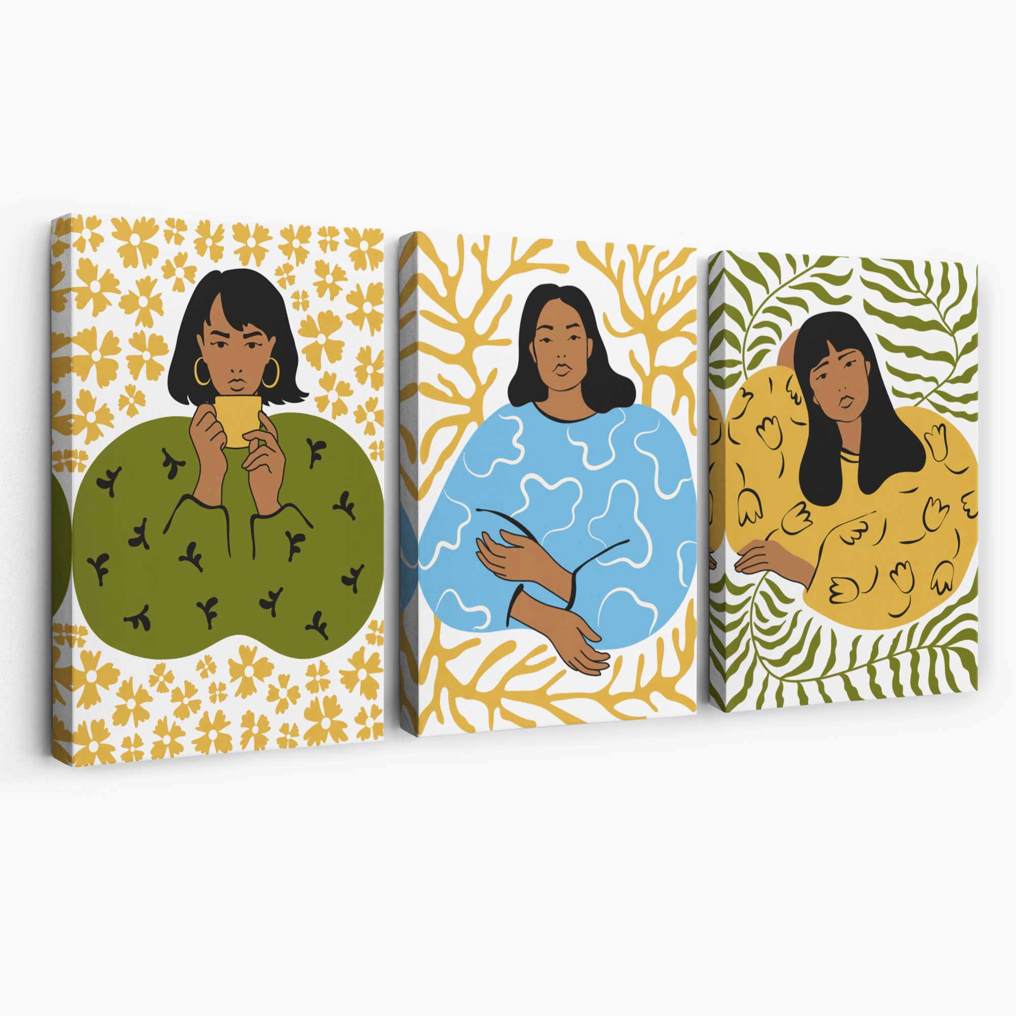 Set of 3 Boho Fashion in Green and Yellow Canvas Art Prints