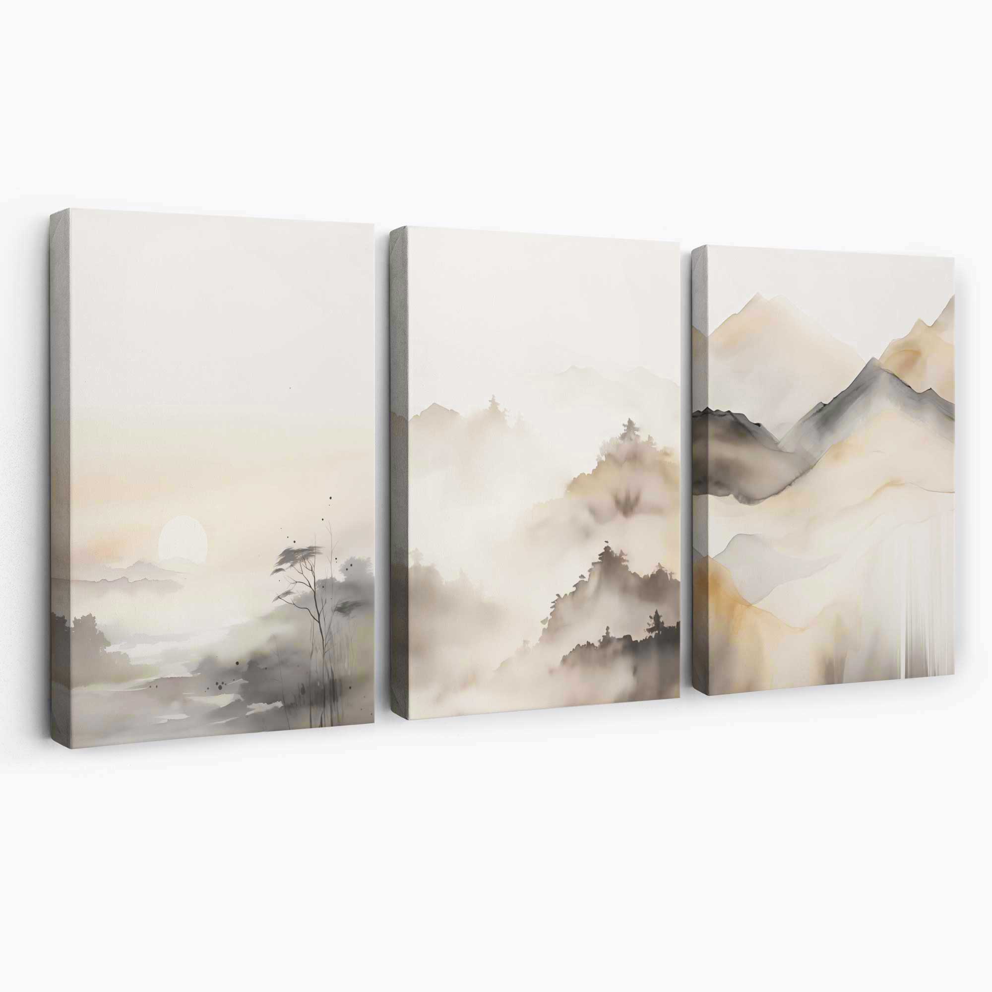 Set of 3 Neutral Forest and Mountains Canvas Art Prints